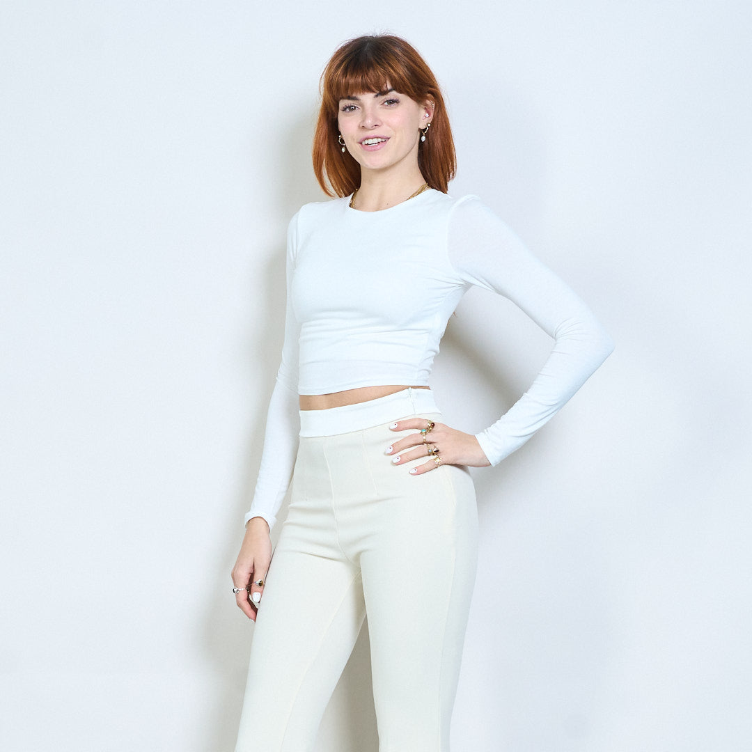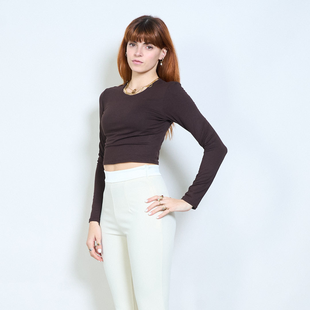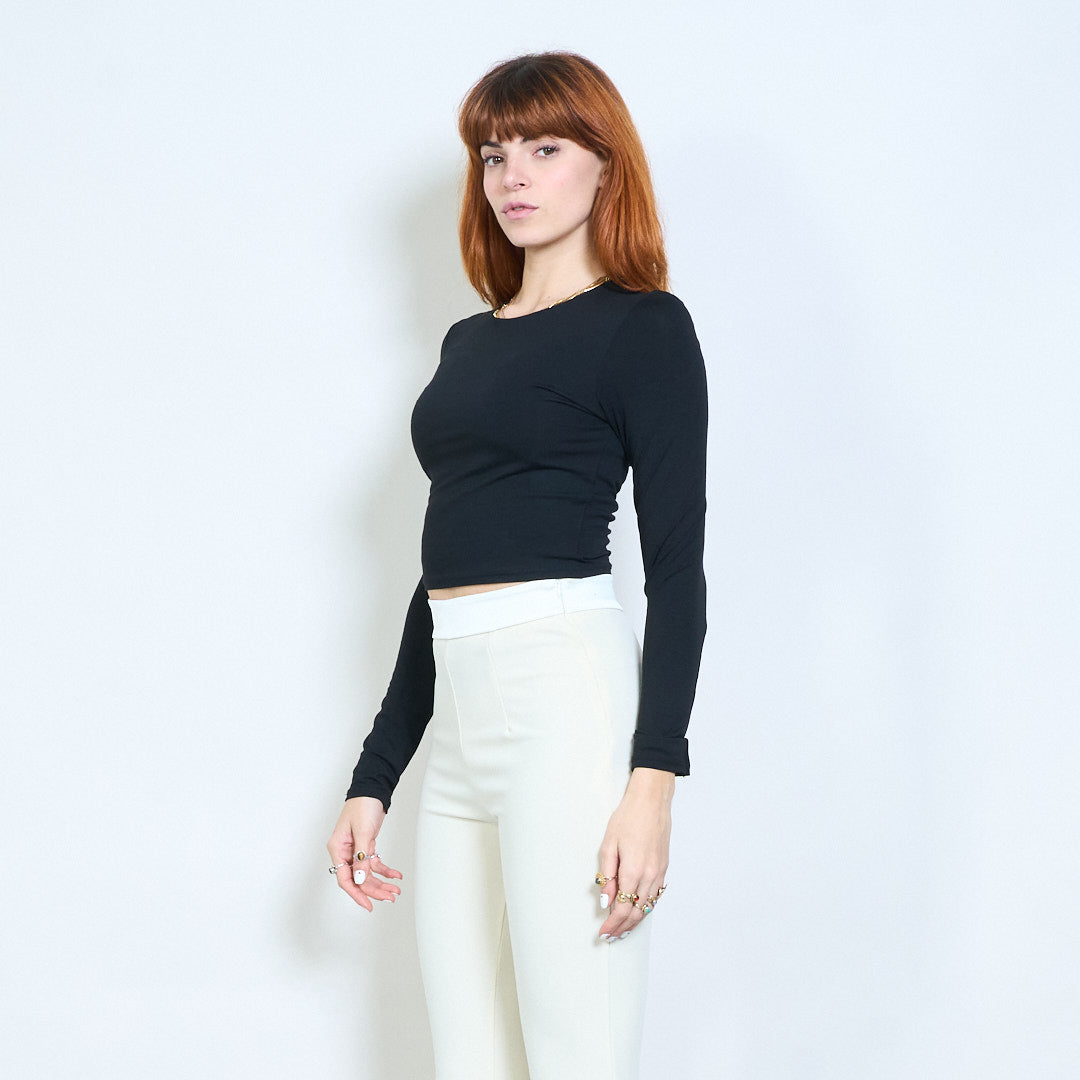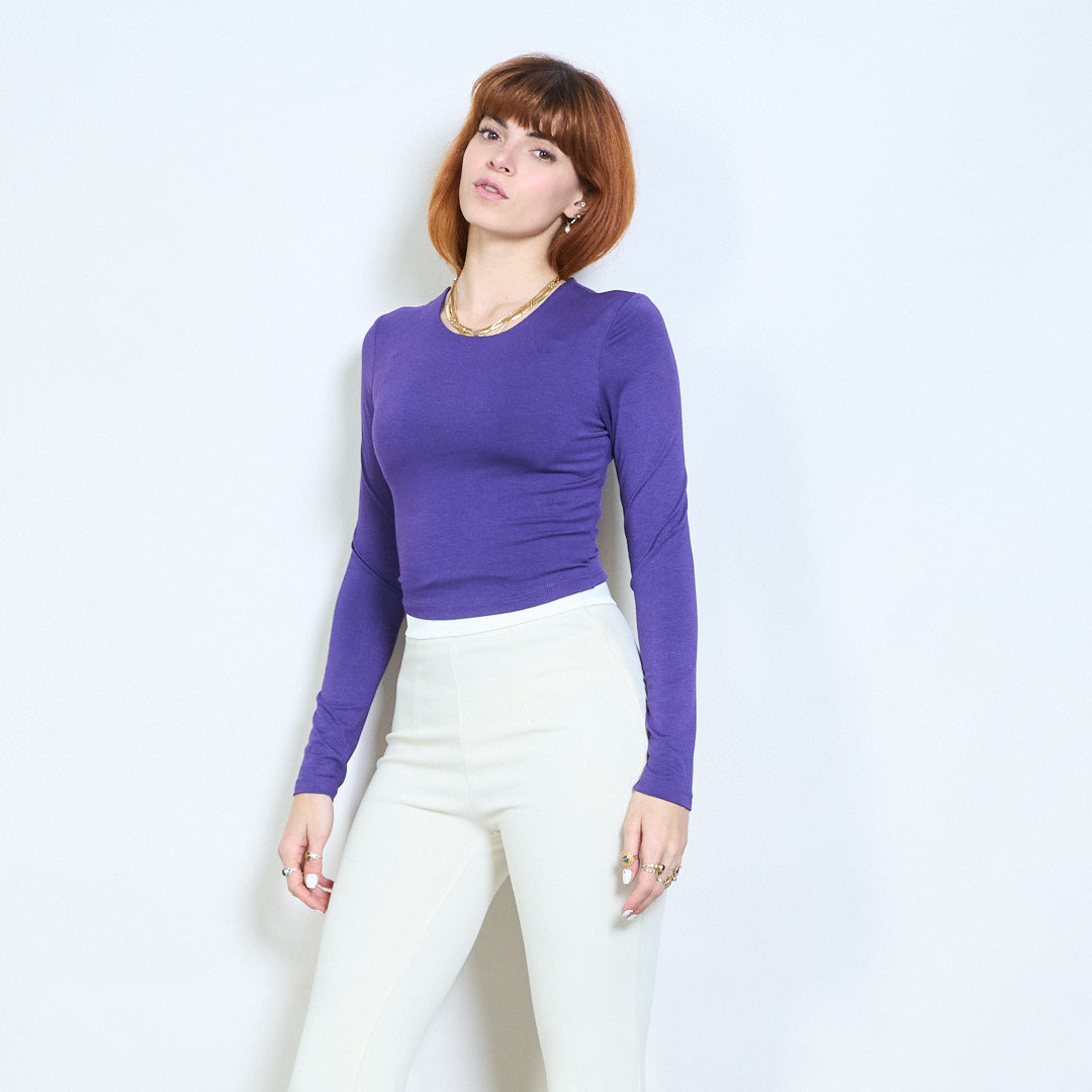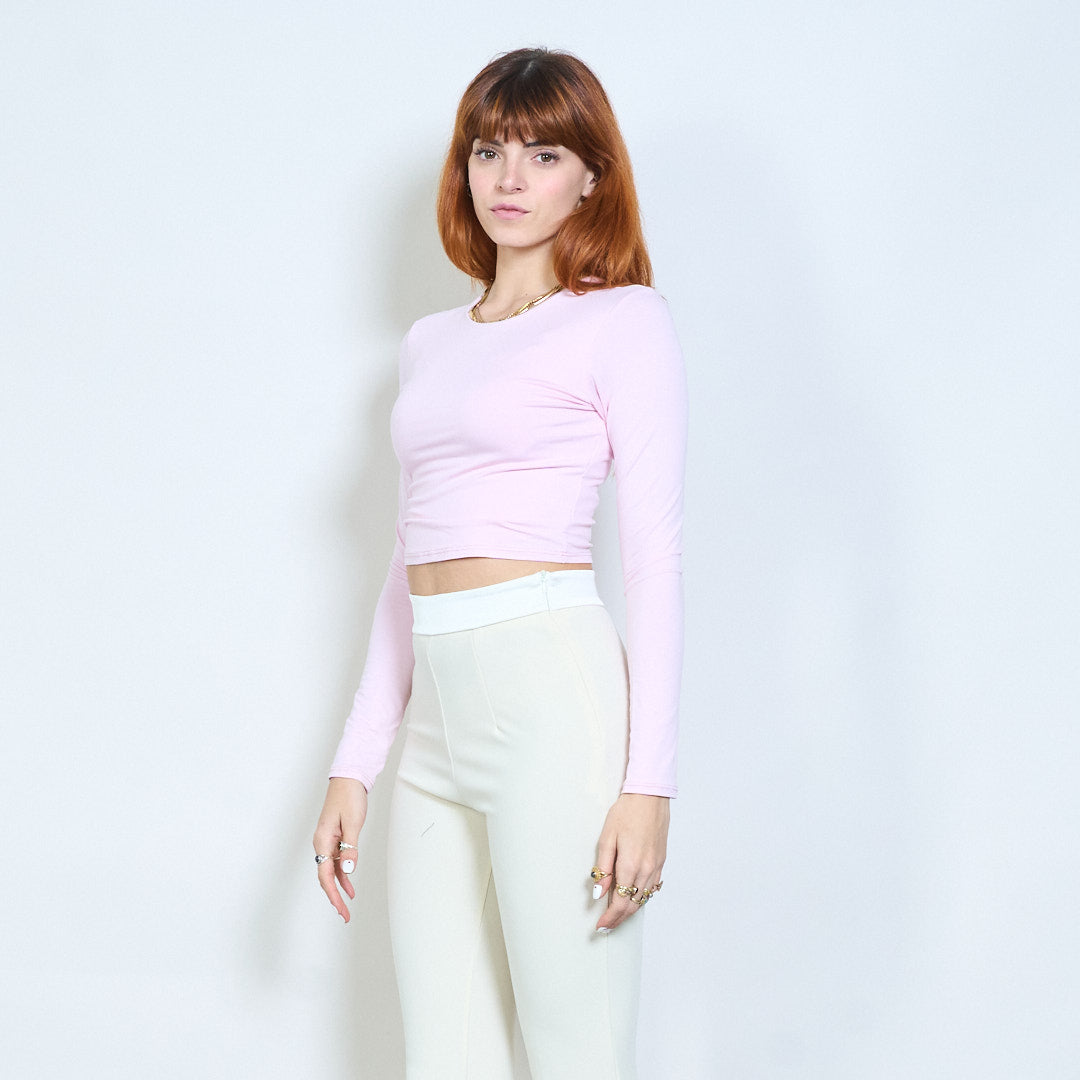 Minimal crew neck monterad långärmad cropped top grossist