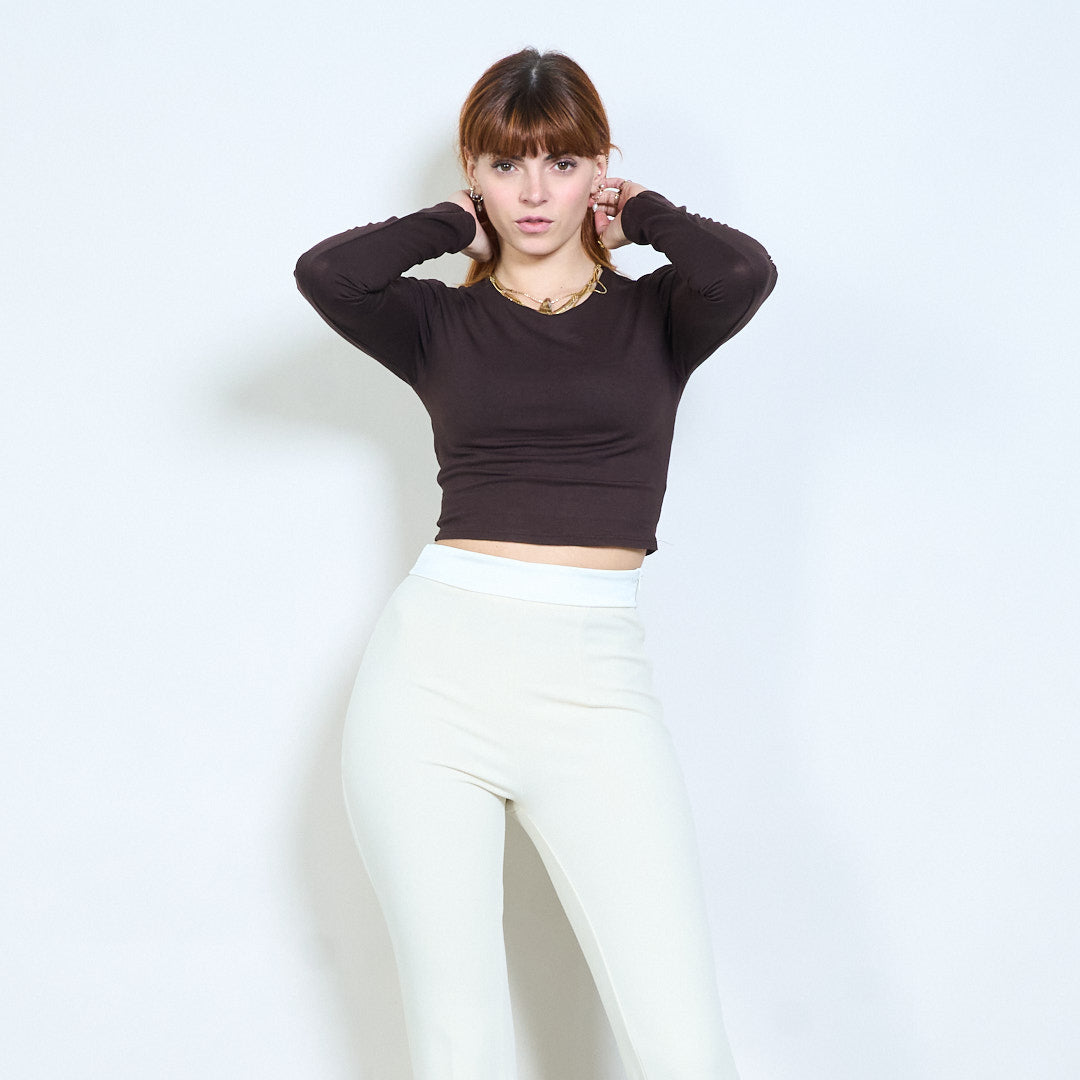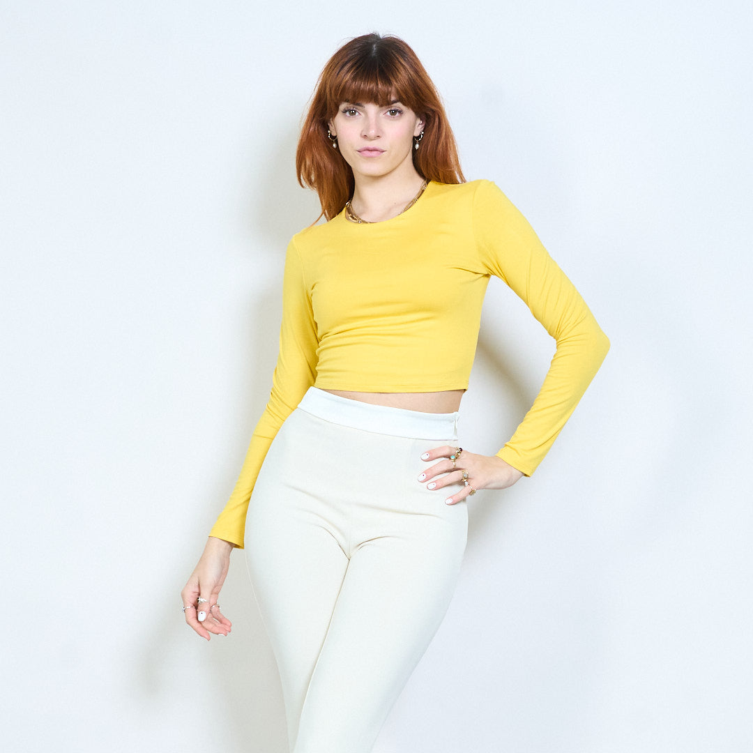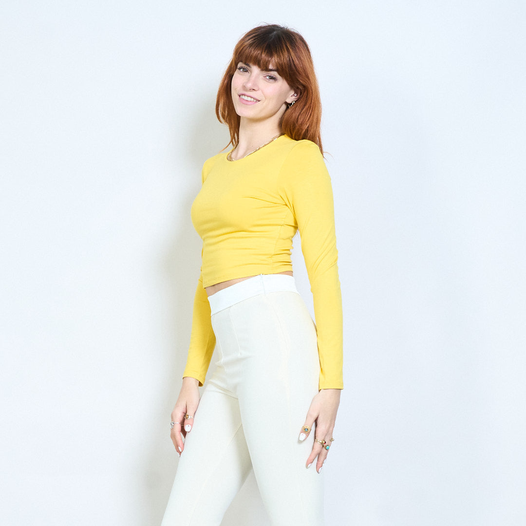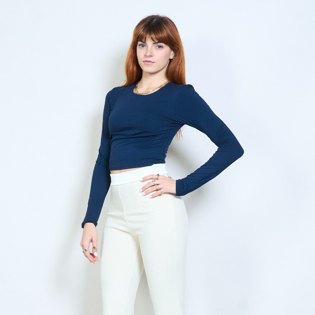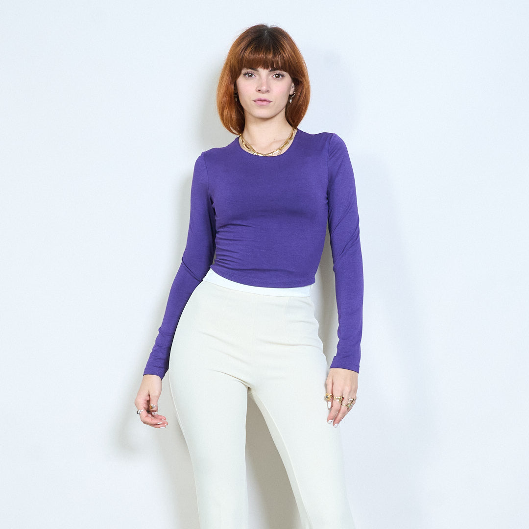 Minimal crew neck monterad långärmad cropped top grossist