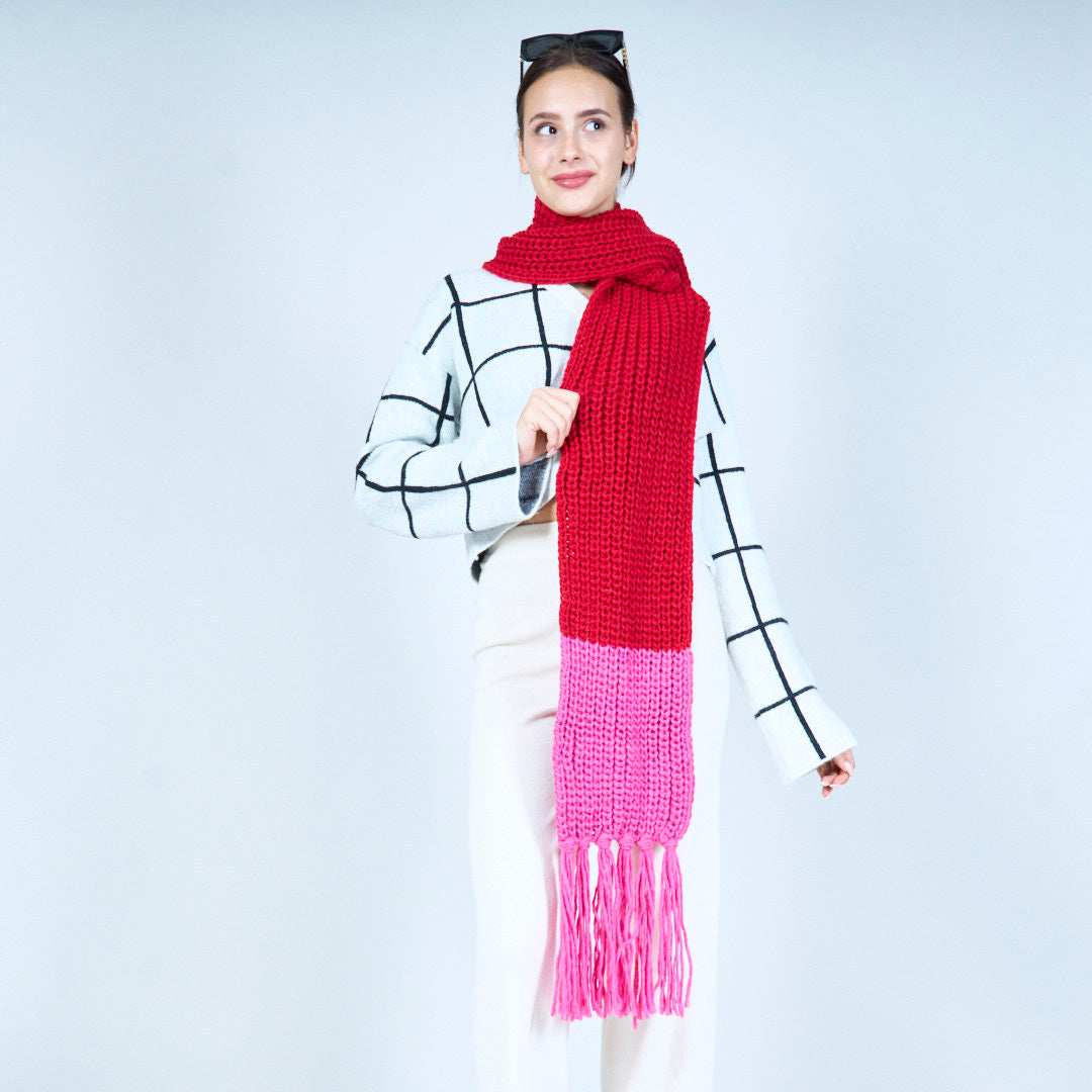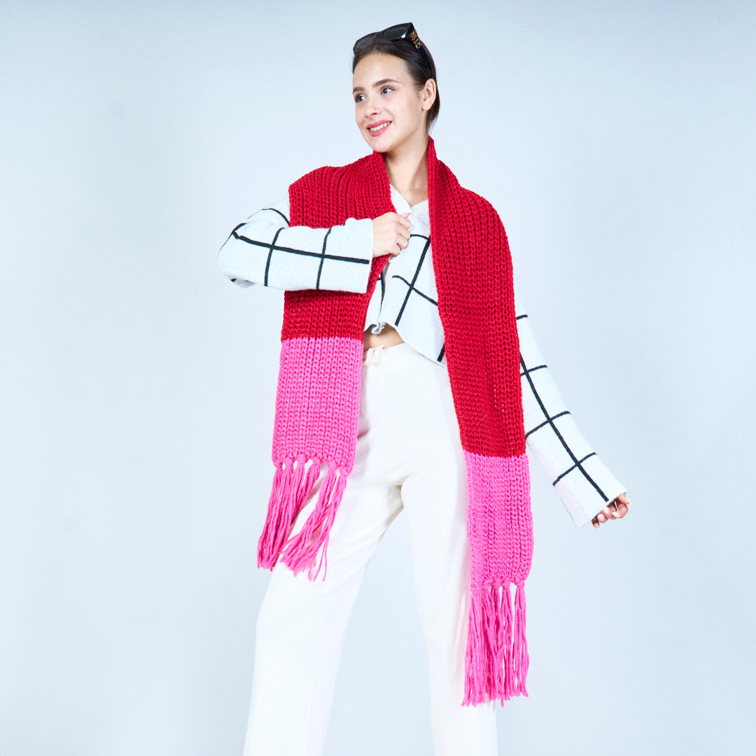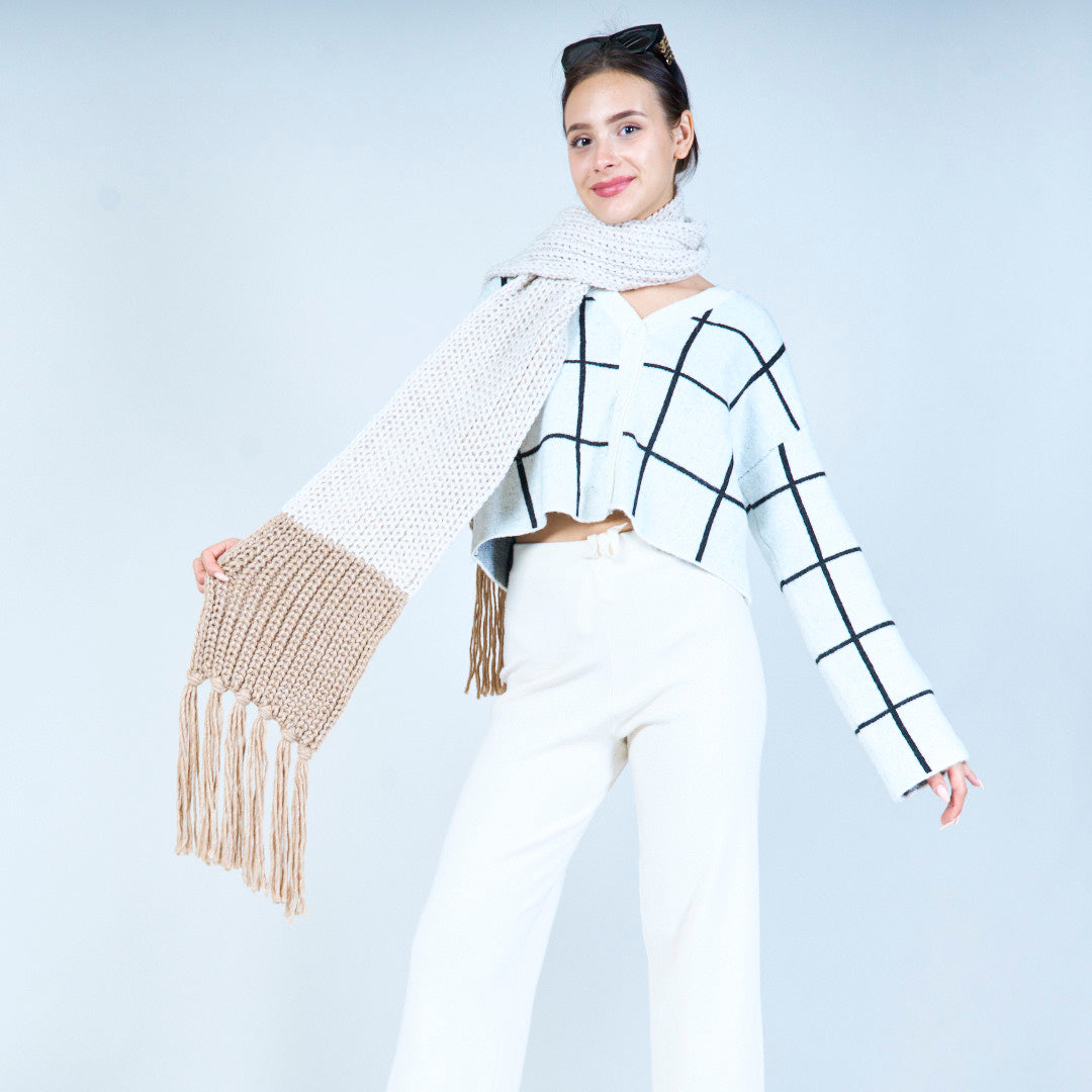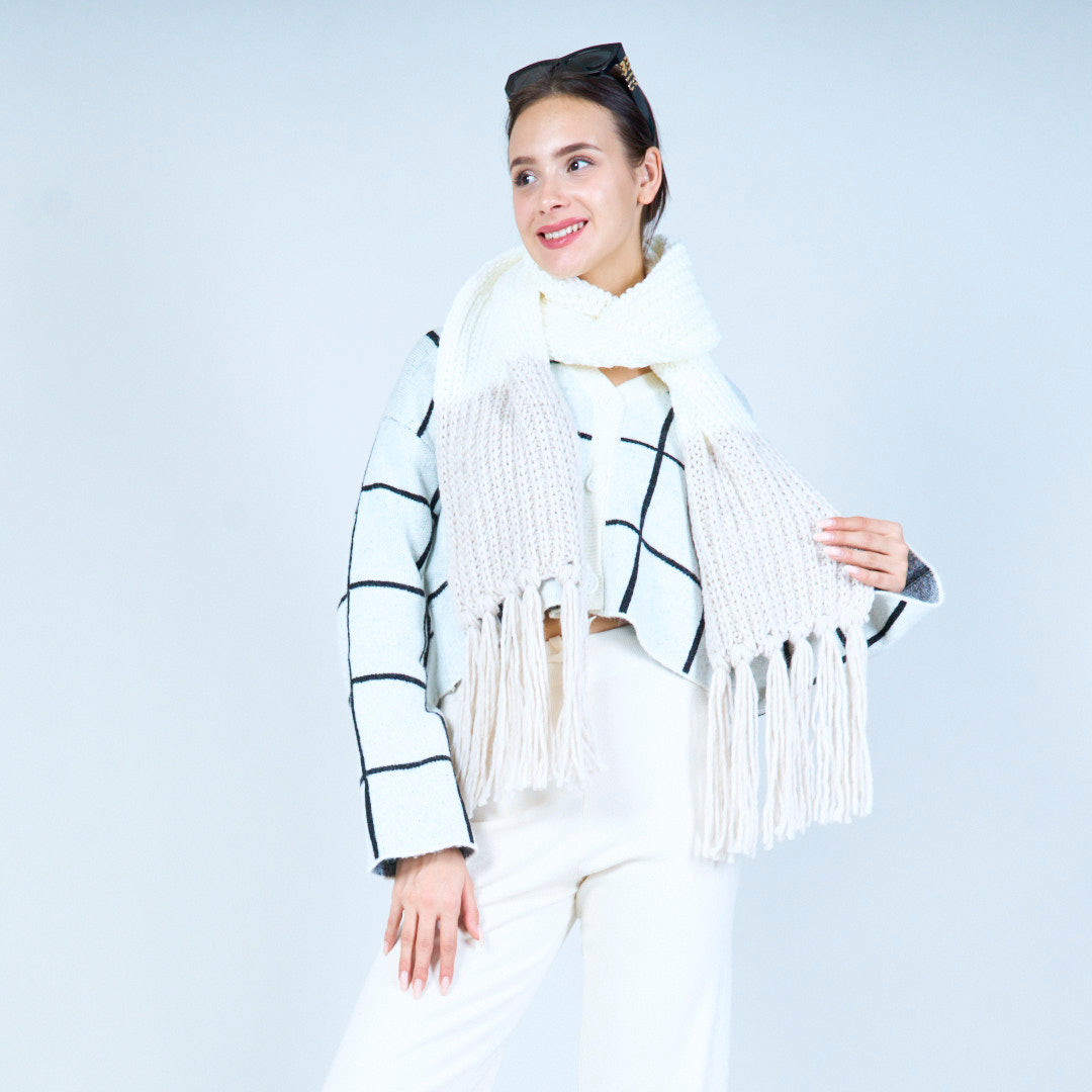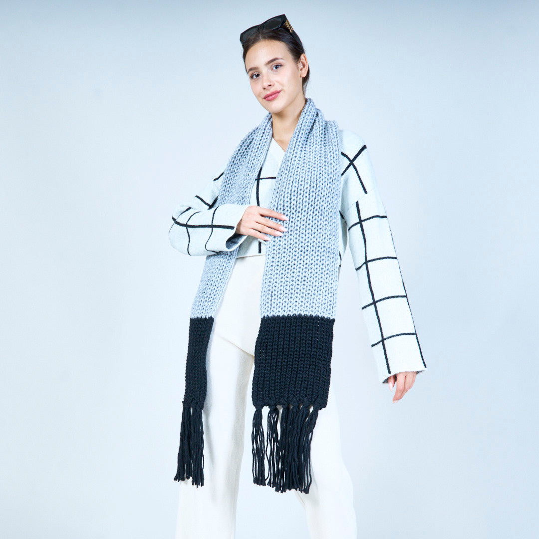 Mysig stickad halsduk med frans grossist