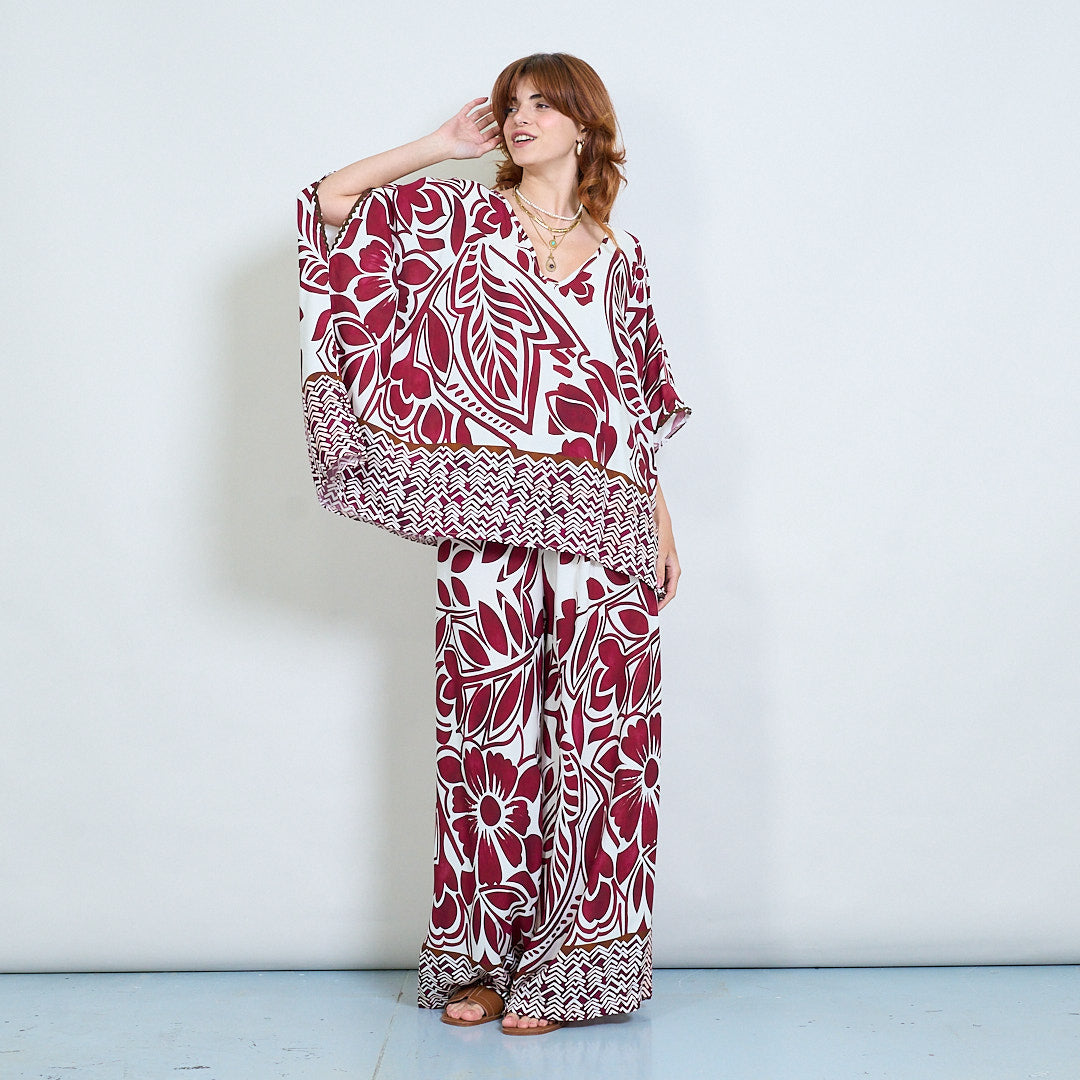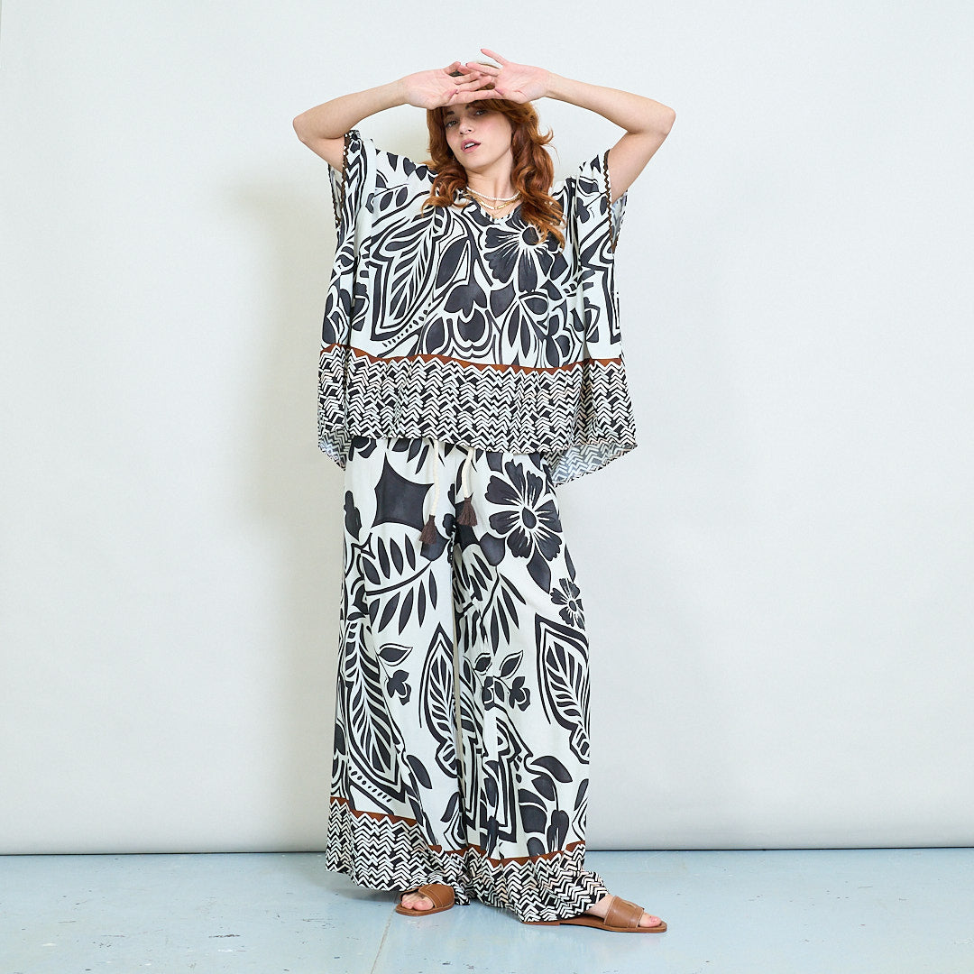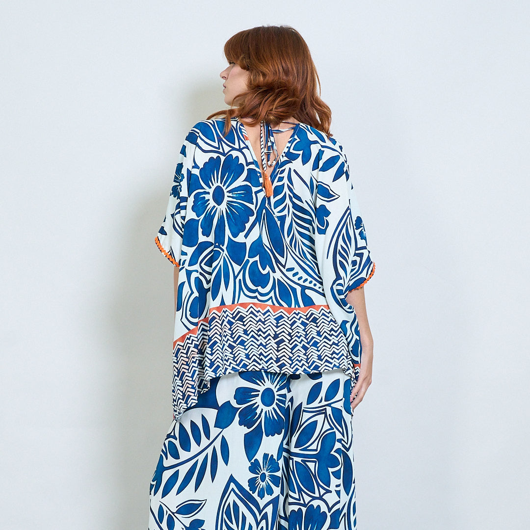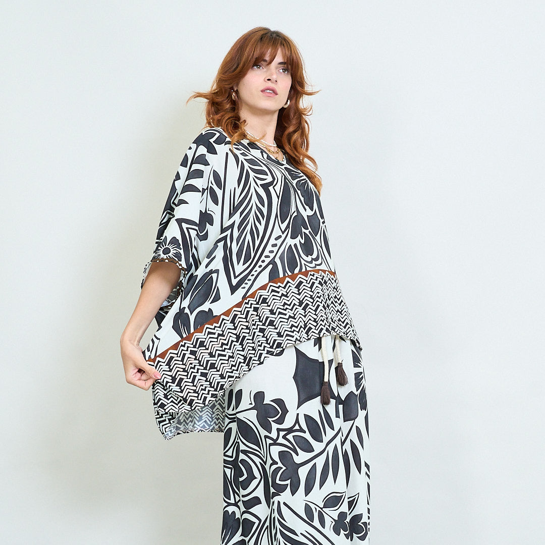 Överdimensionerad blommig poncho -topp med Chevron Border Print grossist