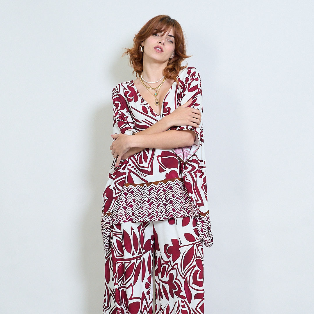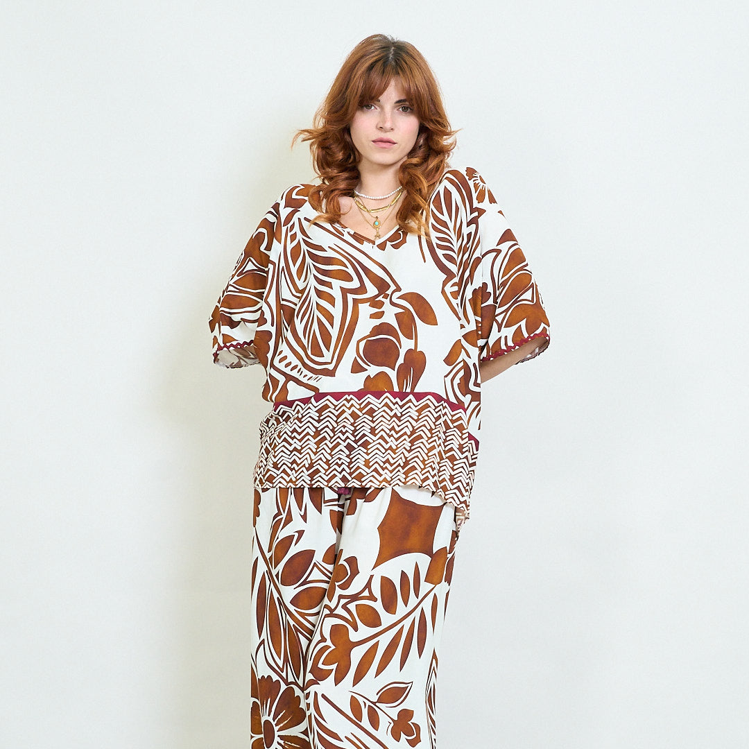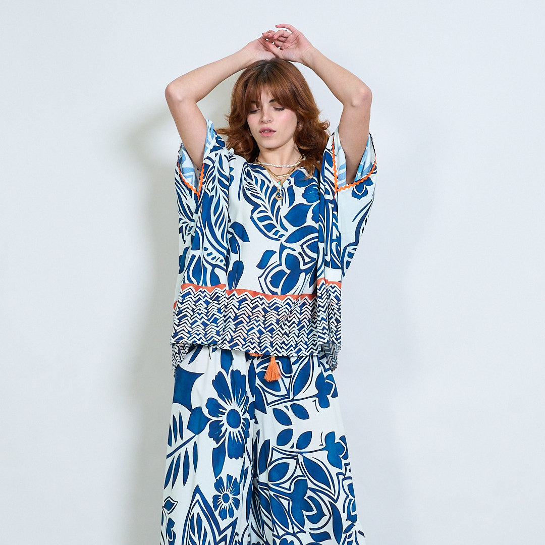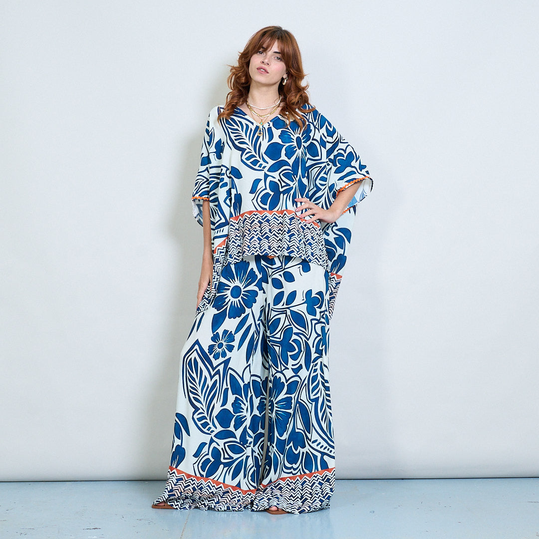 Överdimensionerad blommig poncho -topp med Chevron Border Print grossist