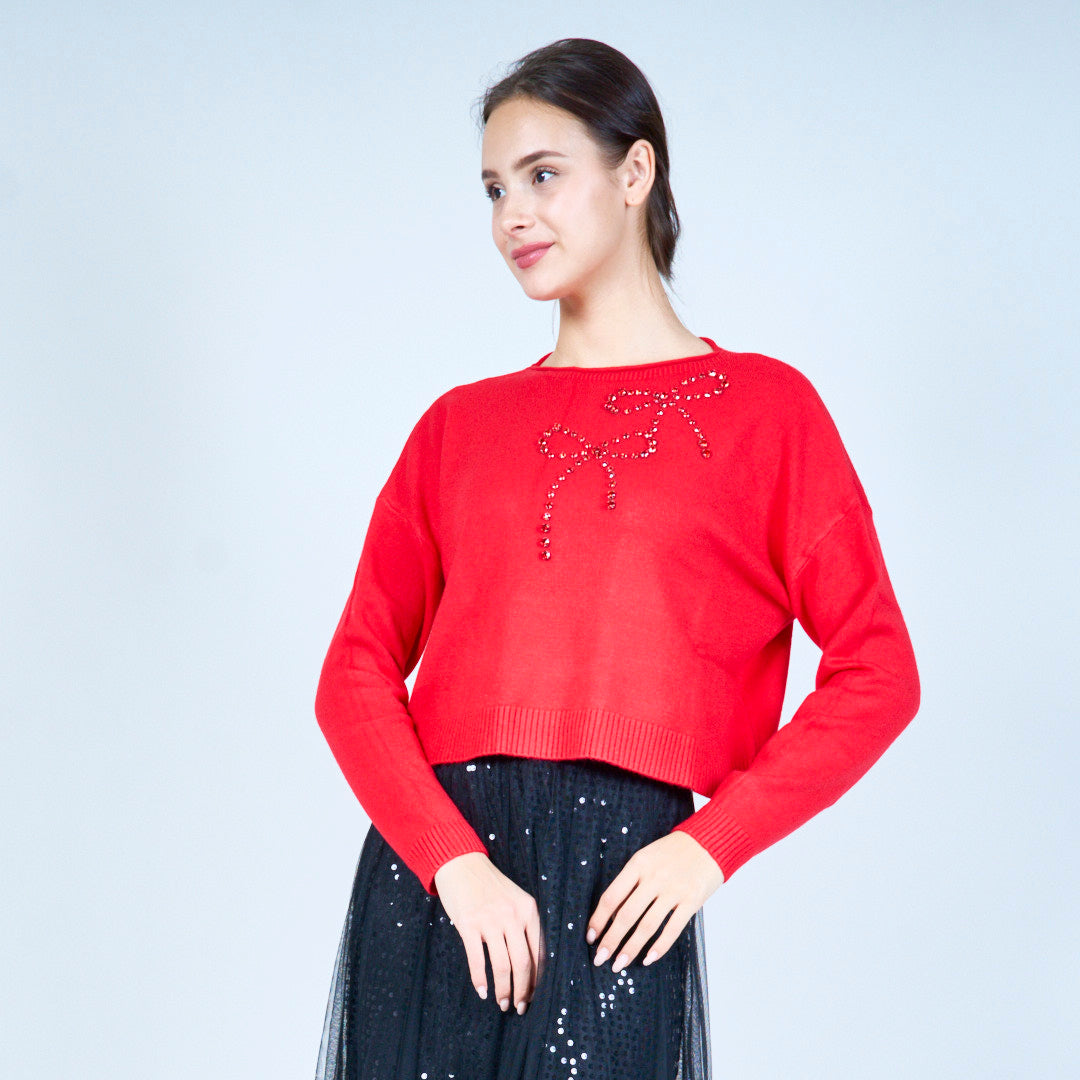 Pärlbåge accent tröja grossist