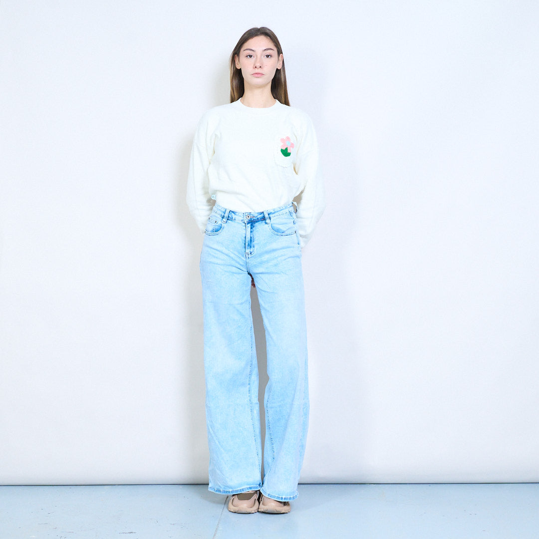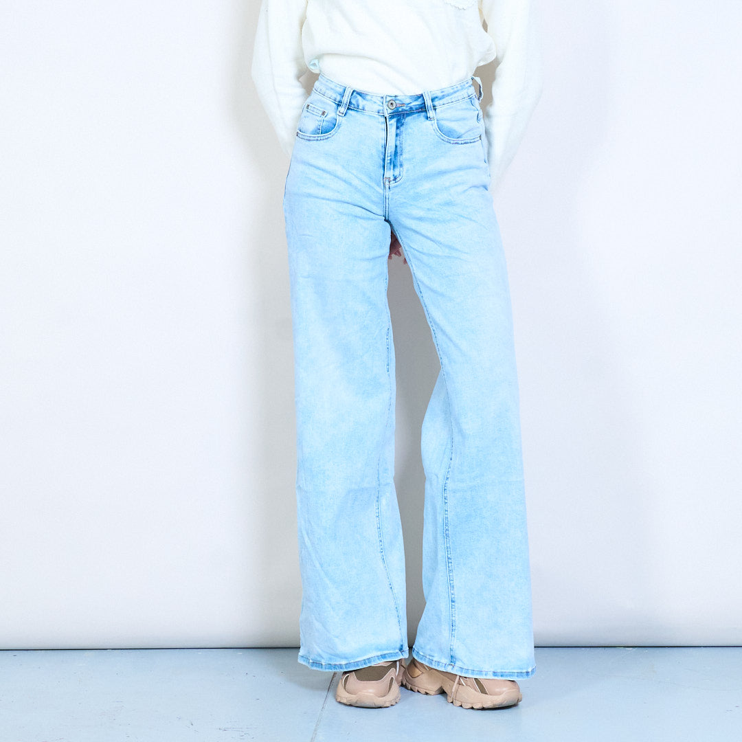 Raka utsvängda ben fullängd klassiska jeans i grossistledet