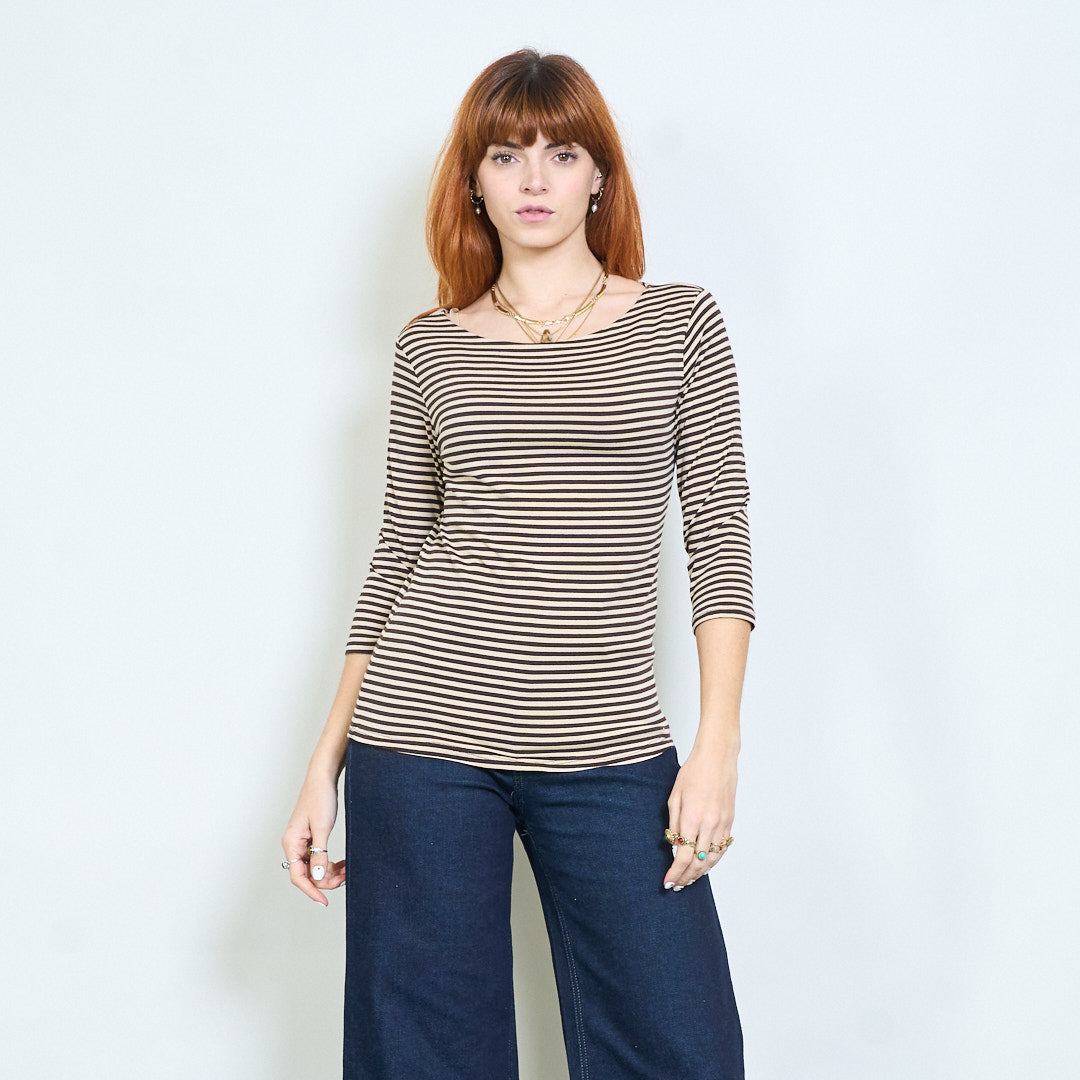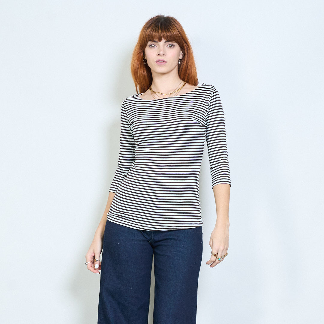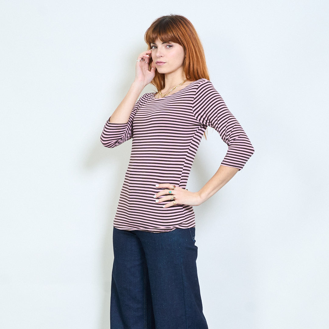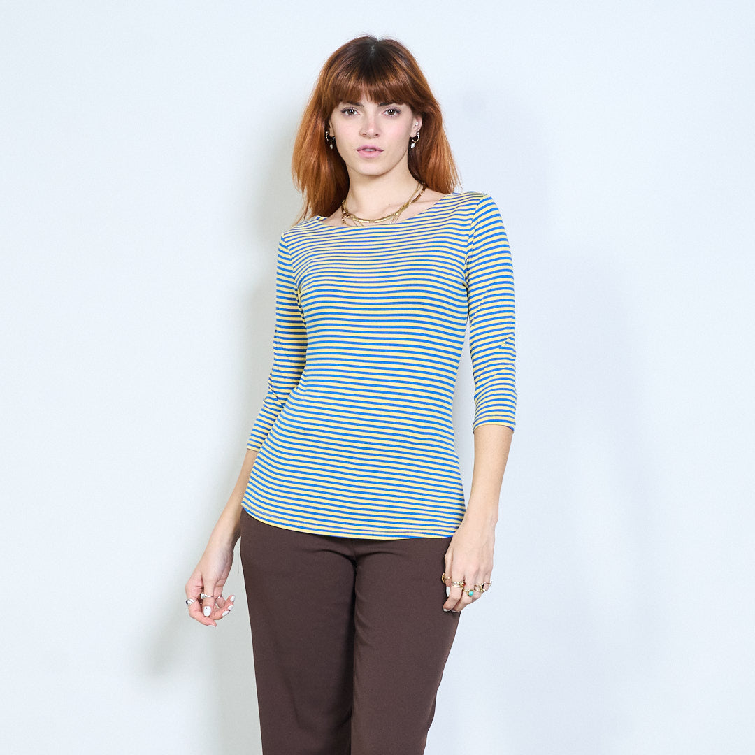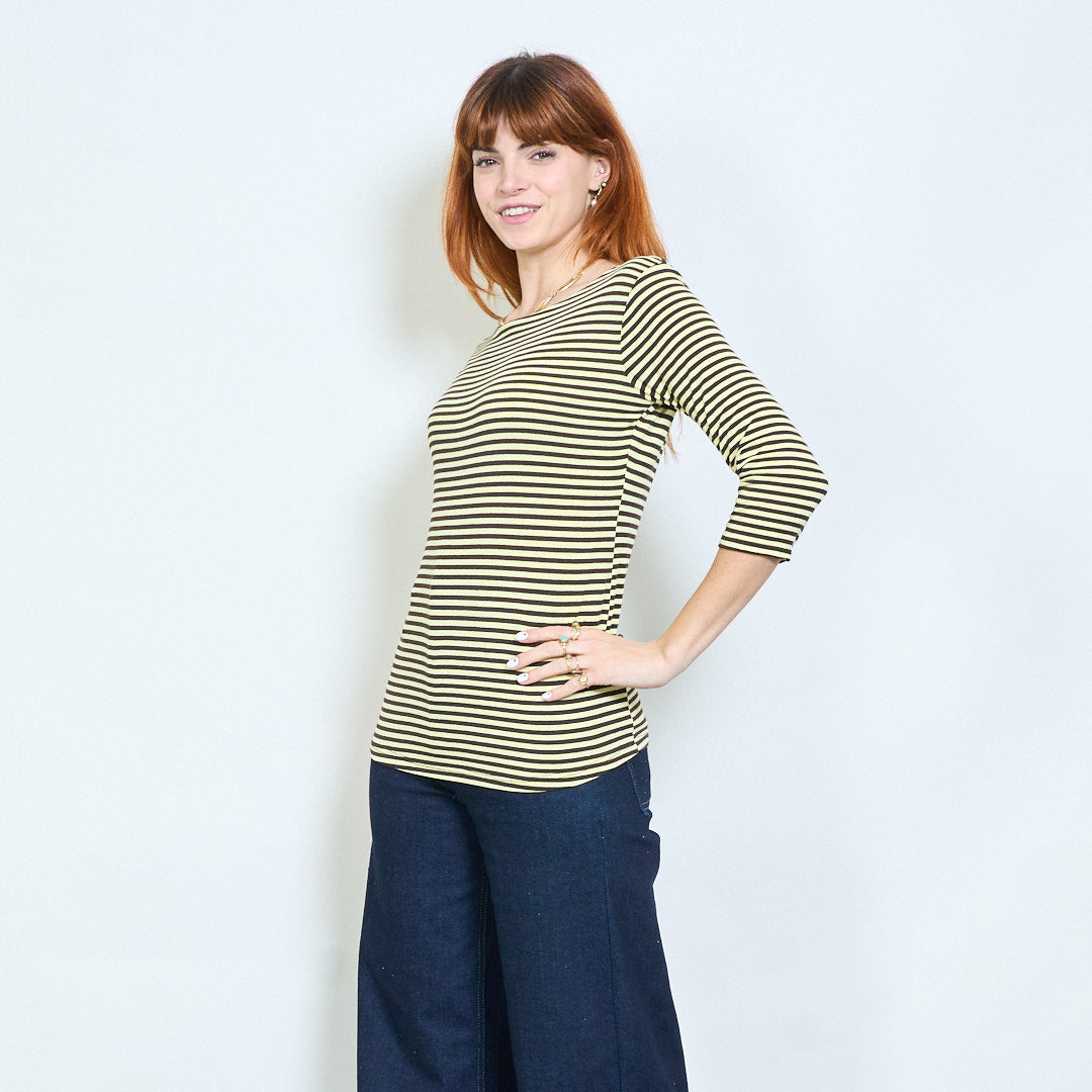 Randig båthals monterad tre fjärdedels ärm topp grossist
