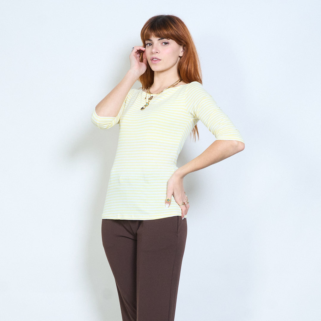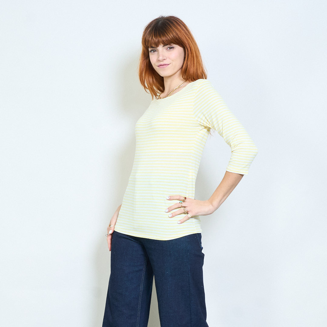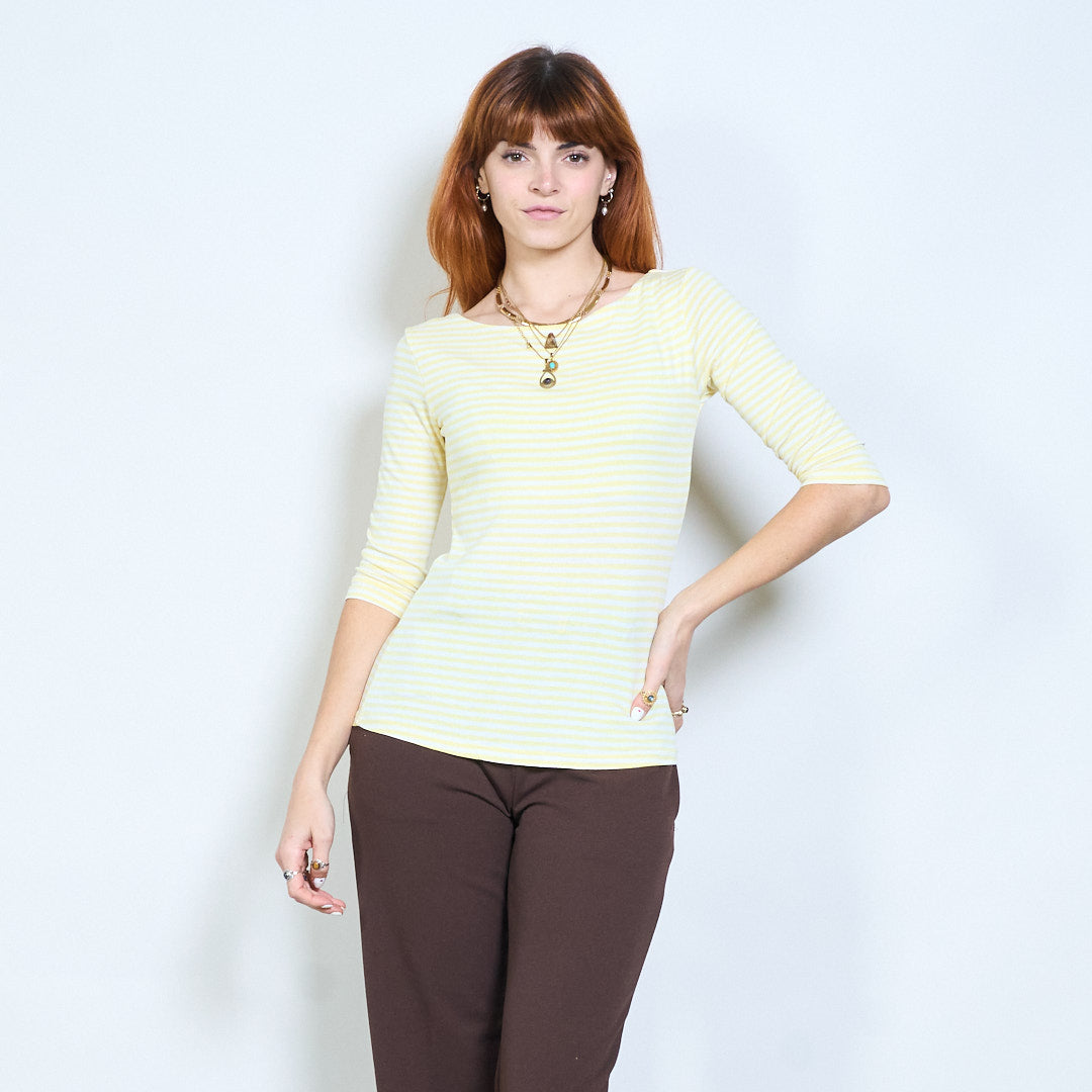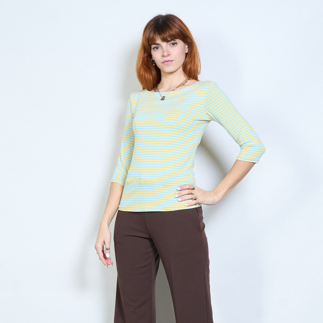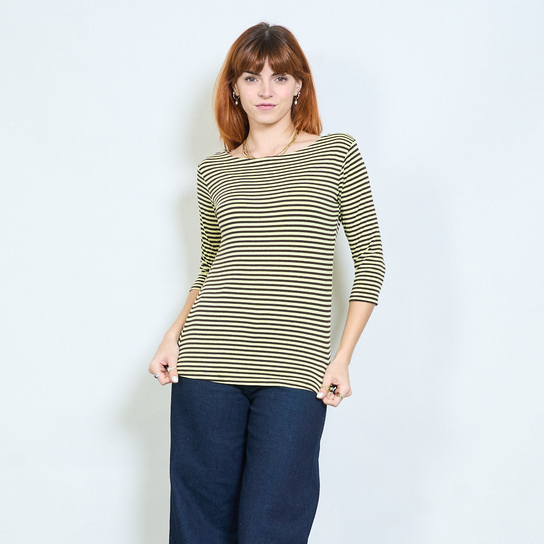 Randig båthals monterad tre fjärdedels ärm topp grossist