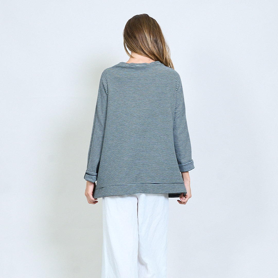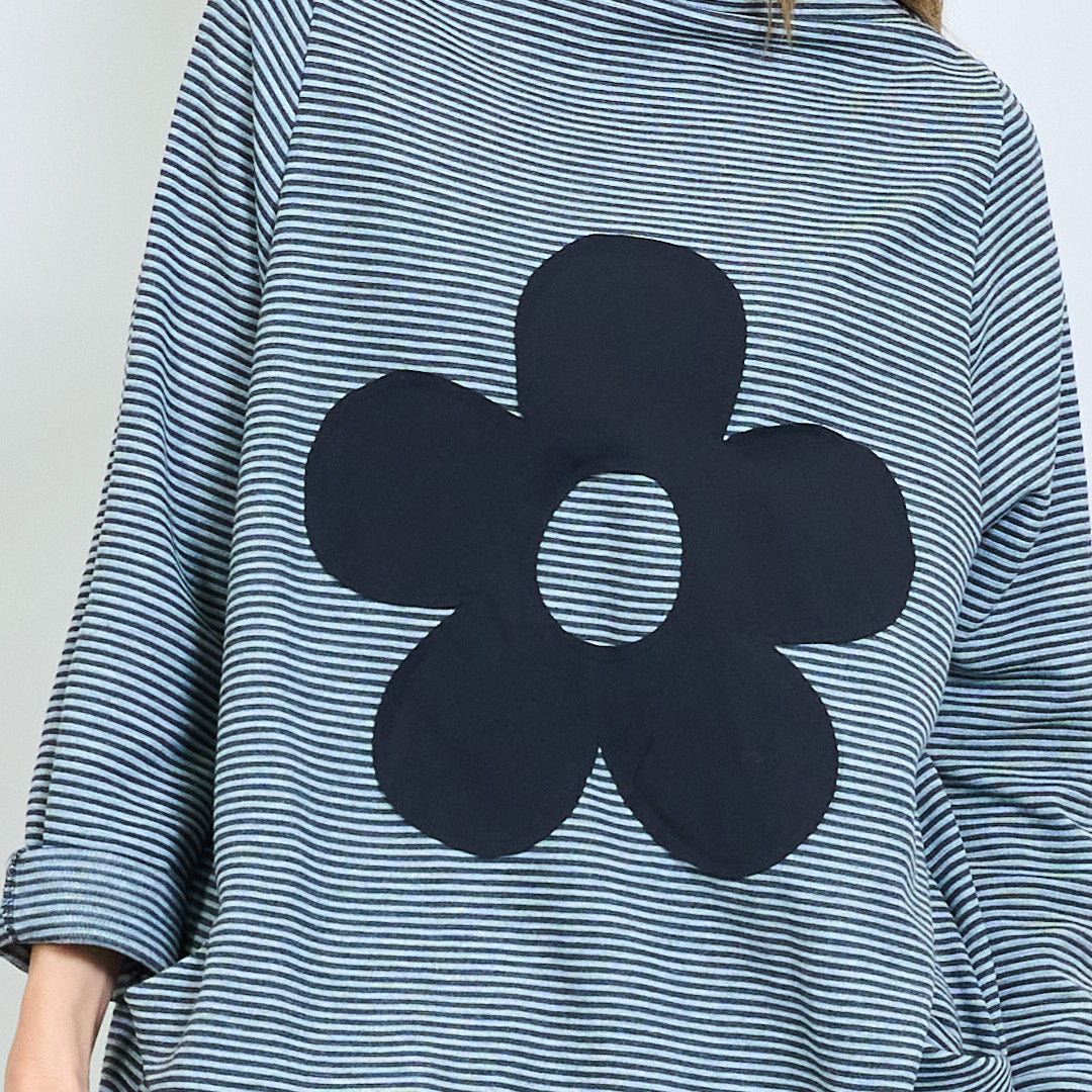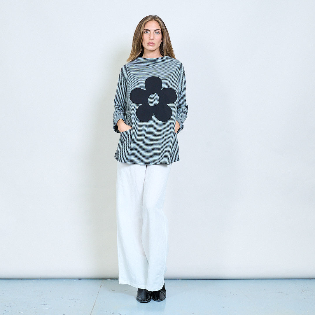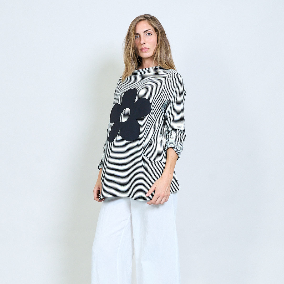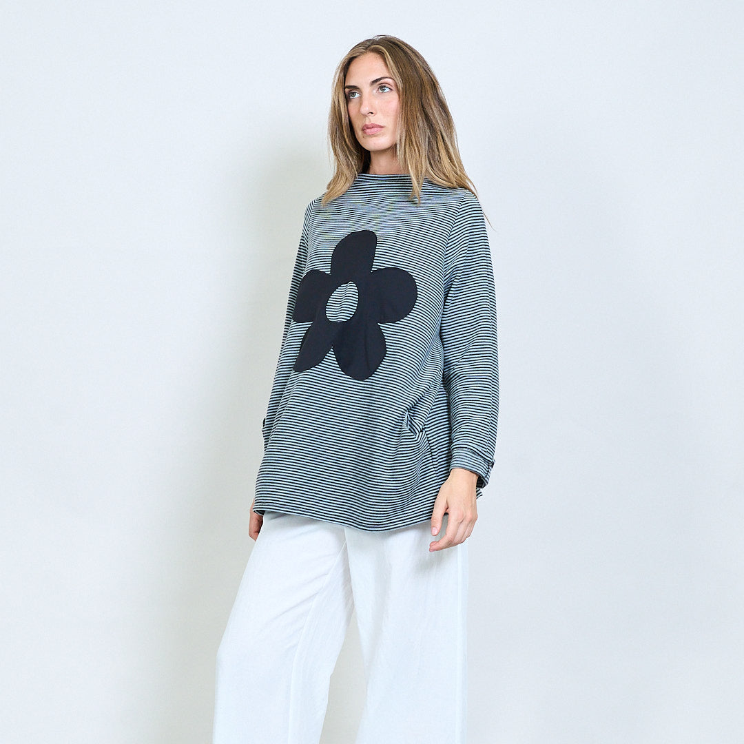 Randig överdimensionerad topp med blomma bakre lapp grossist