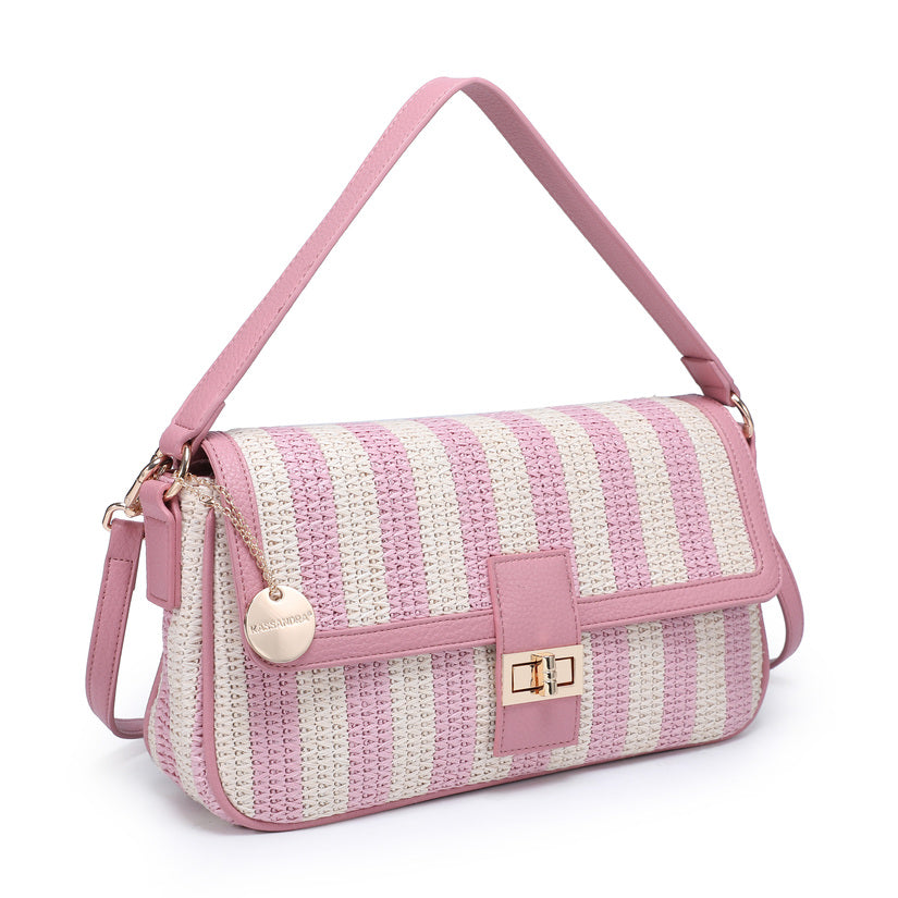 Randig vävd axelväska med klaffstängning och guldvridlås grossist