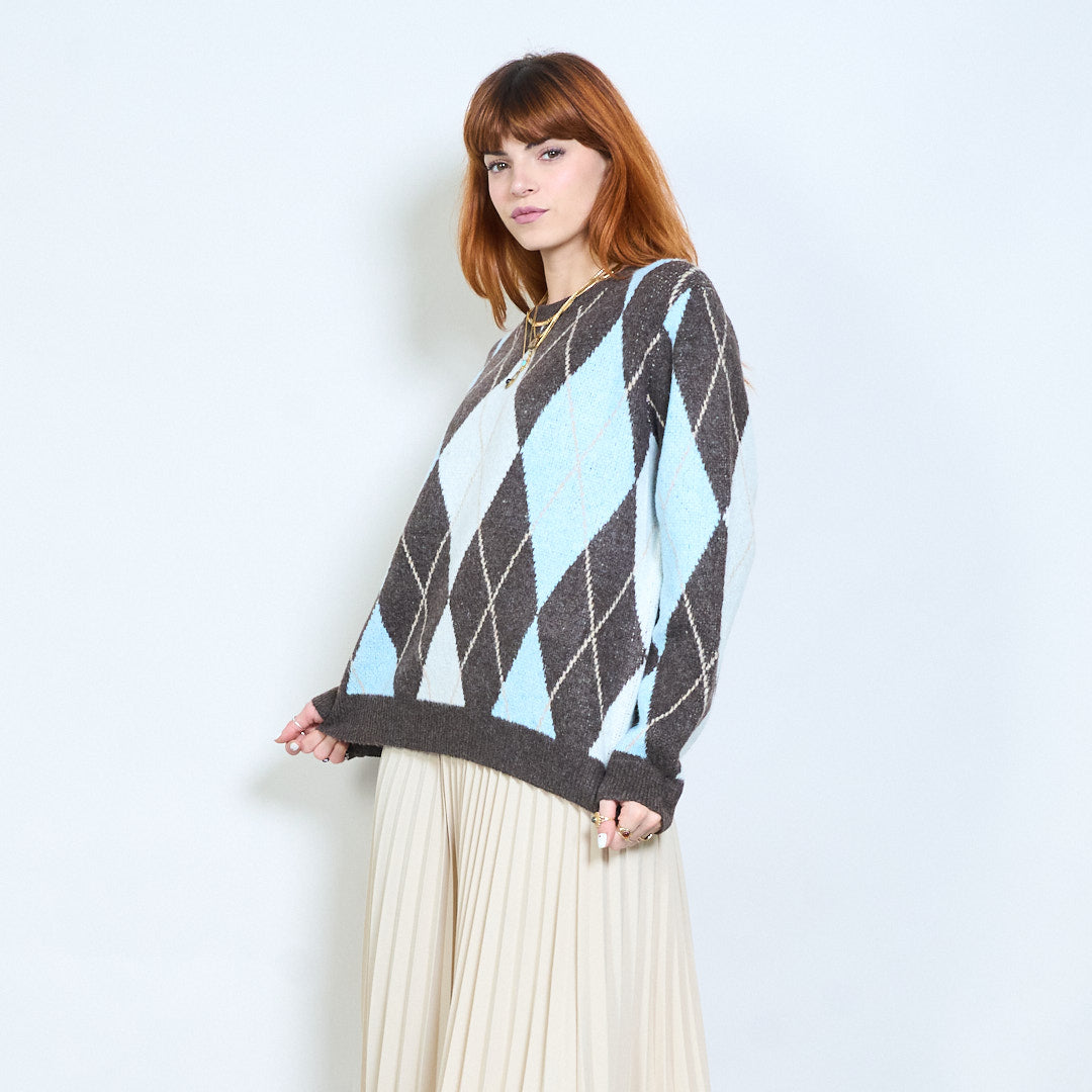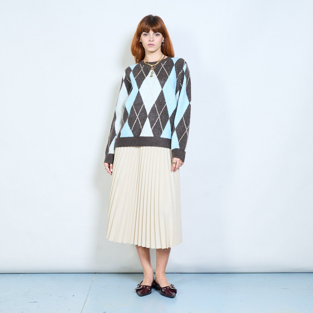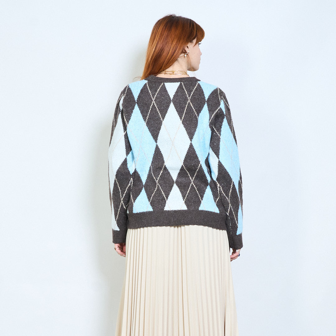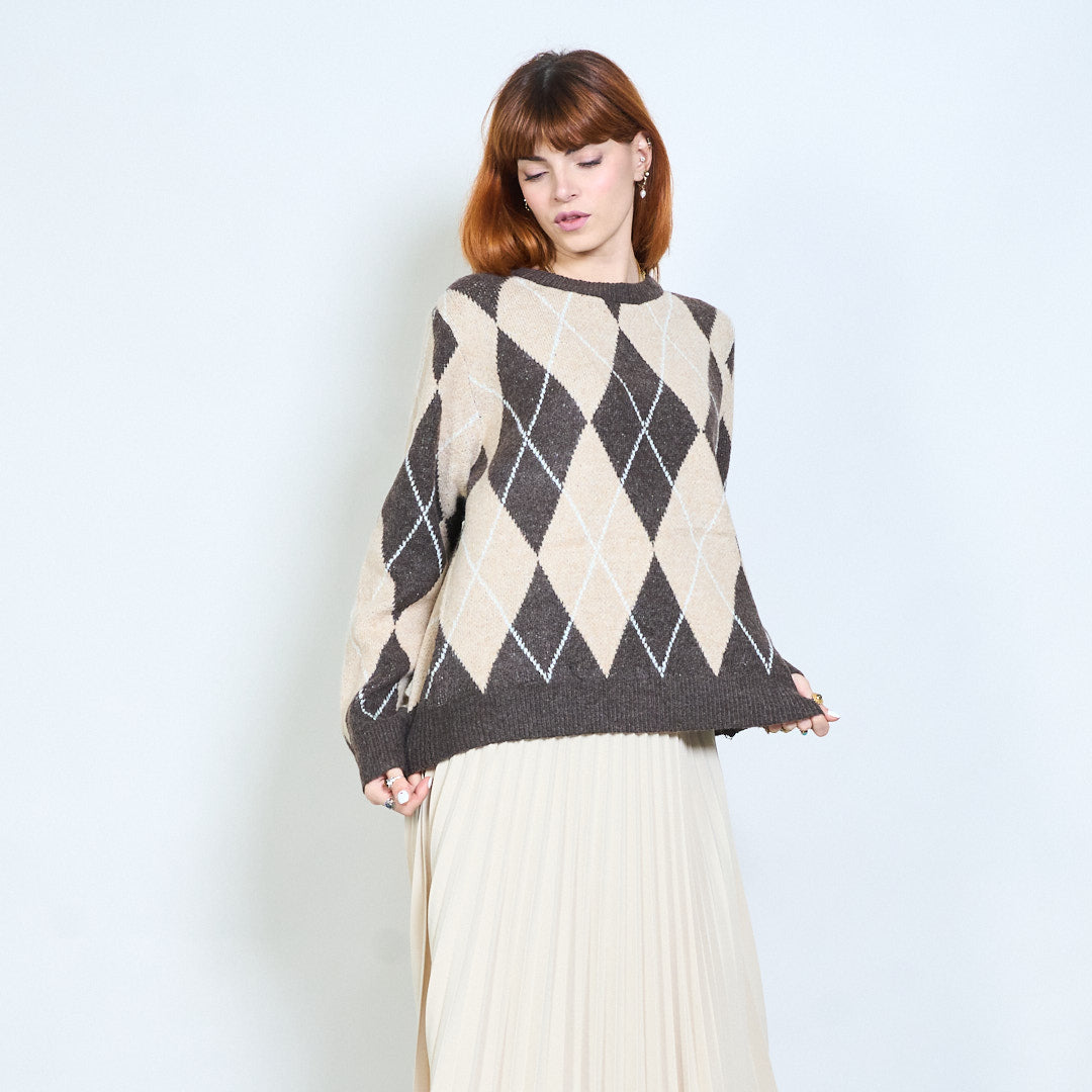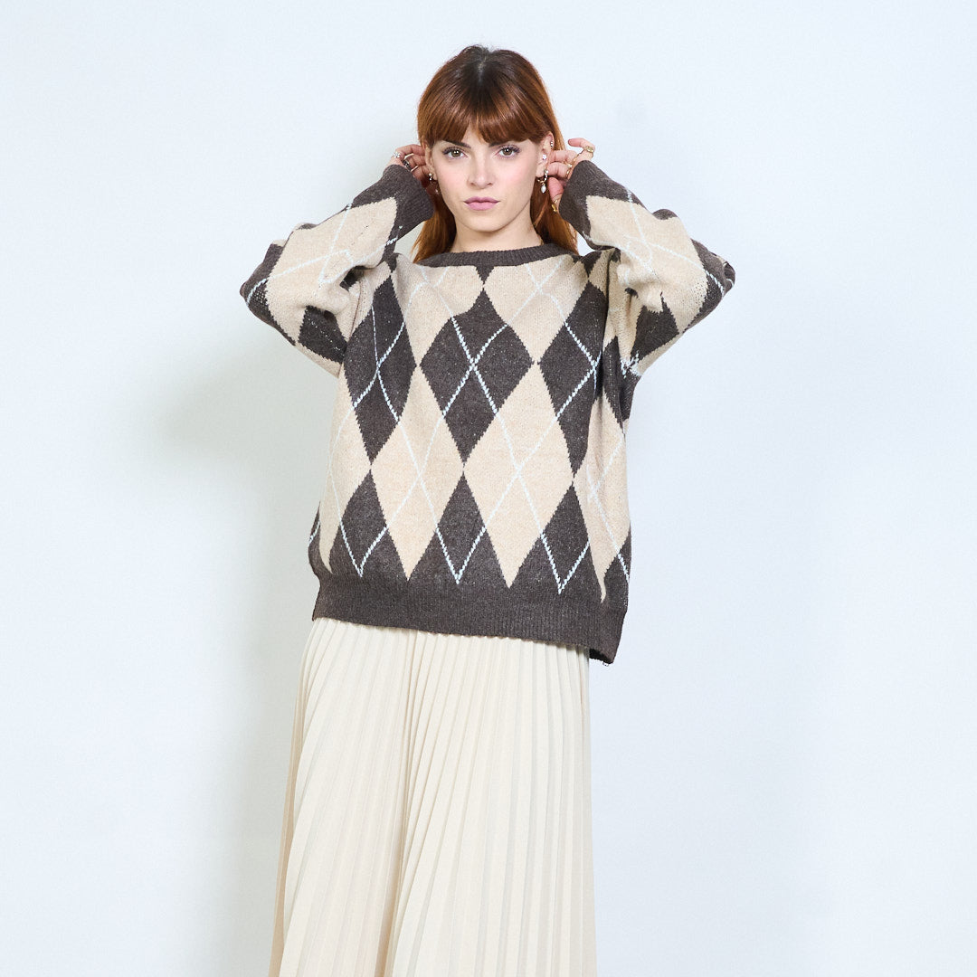 Rutig mönsterstickad tröja med relaxed fit grossist
