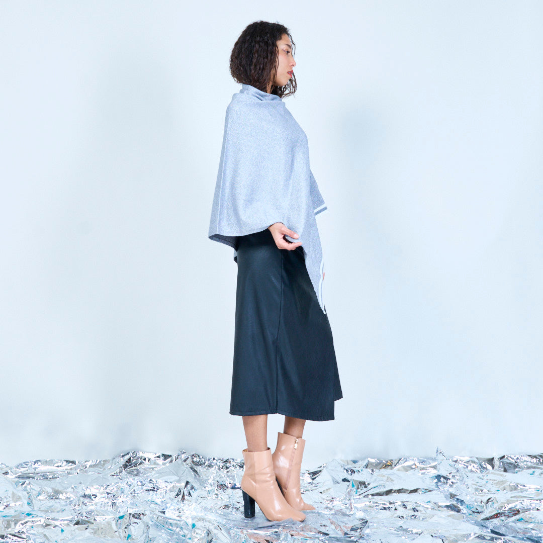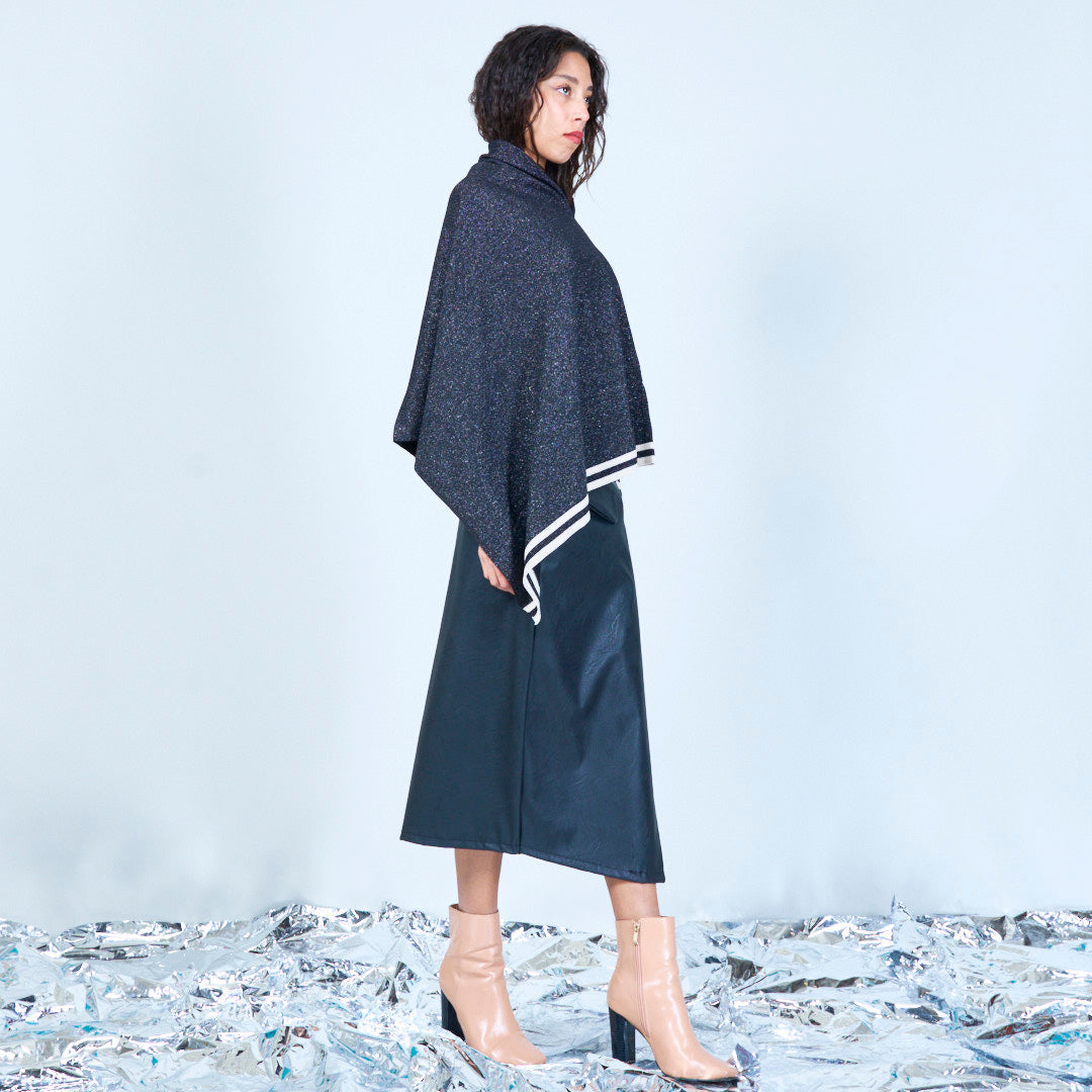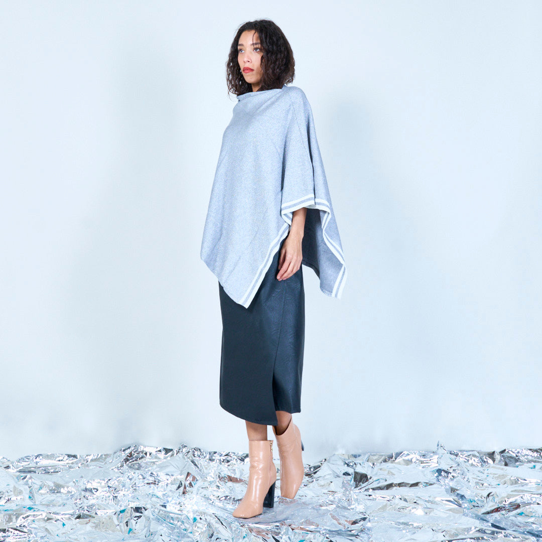 Skimmer stickad poncho med asymmetrisk grossist