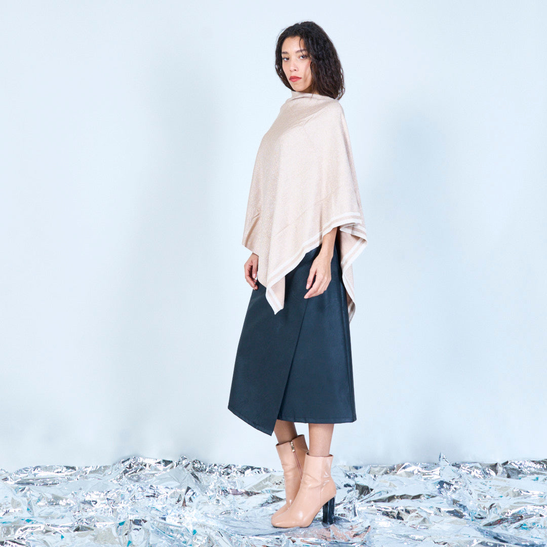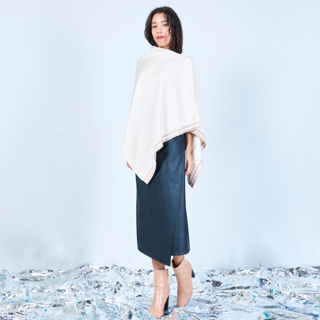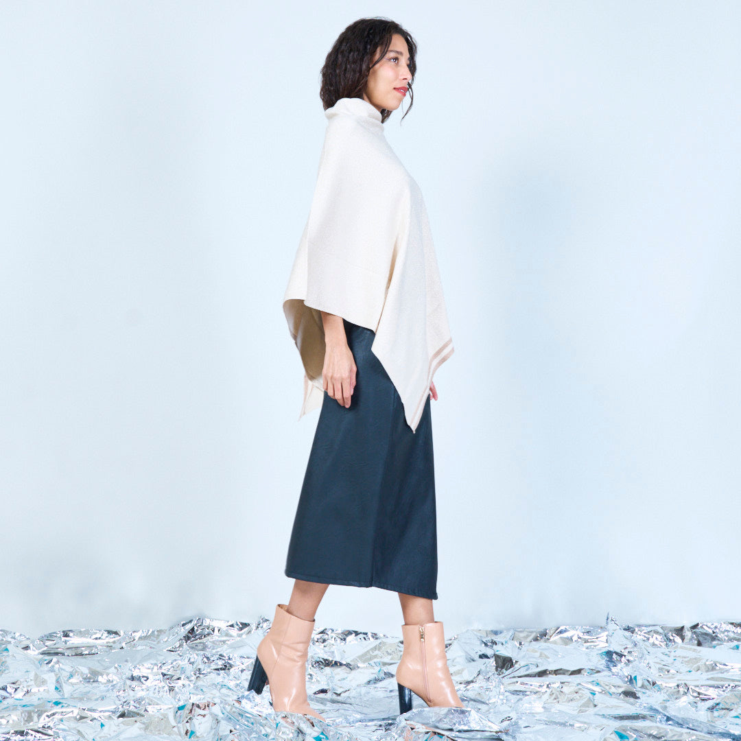 Skimmer stickad poncho med asymmetrisk grossist