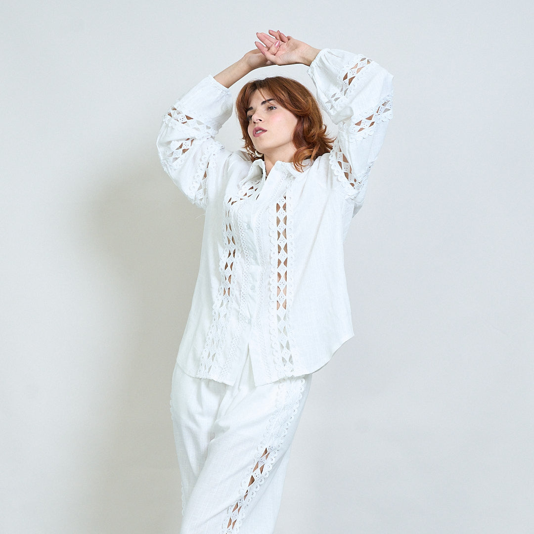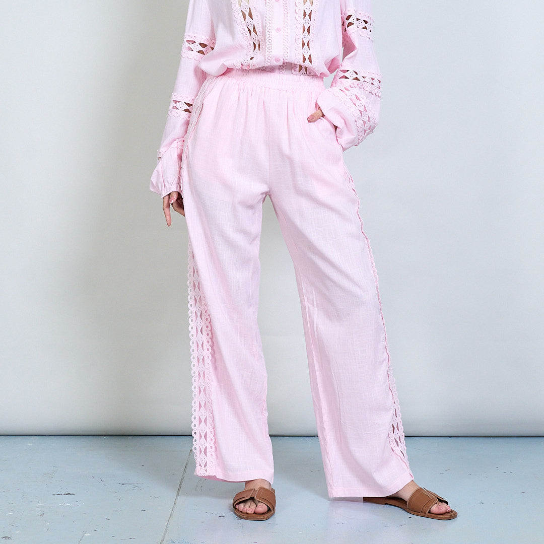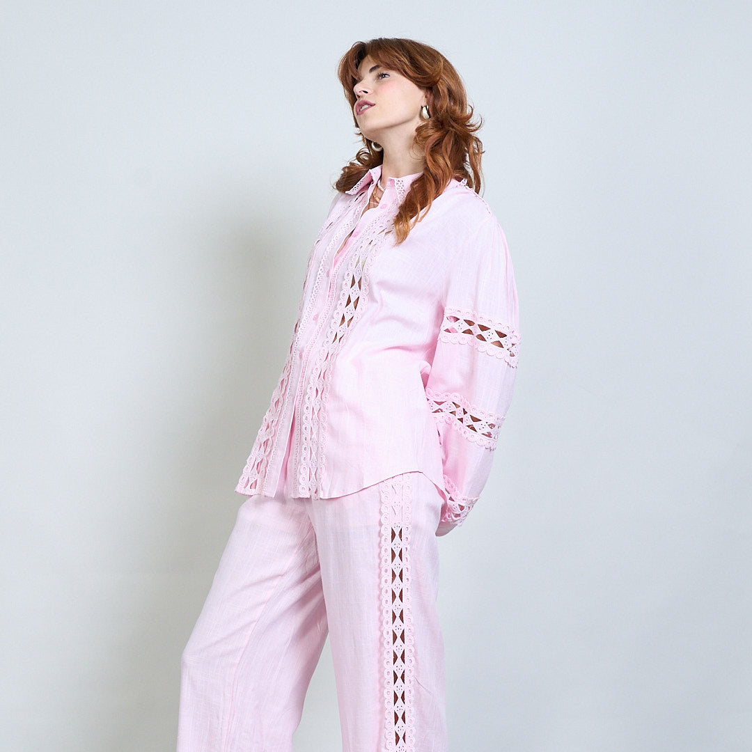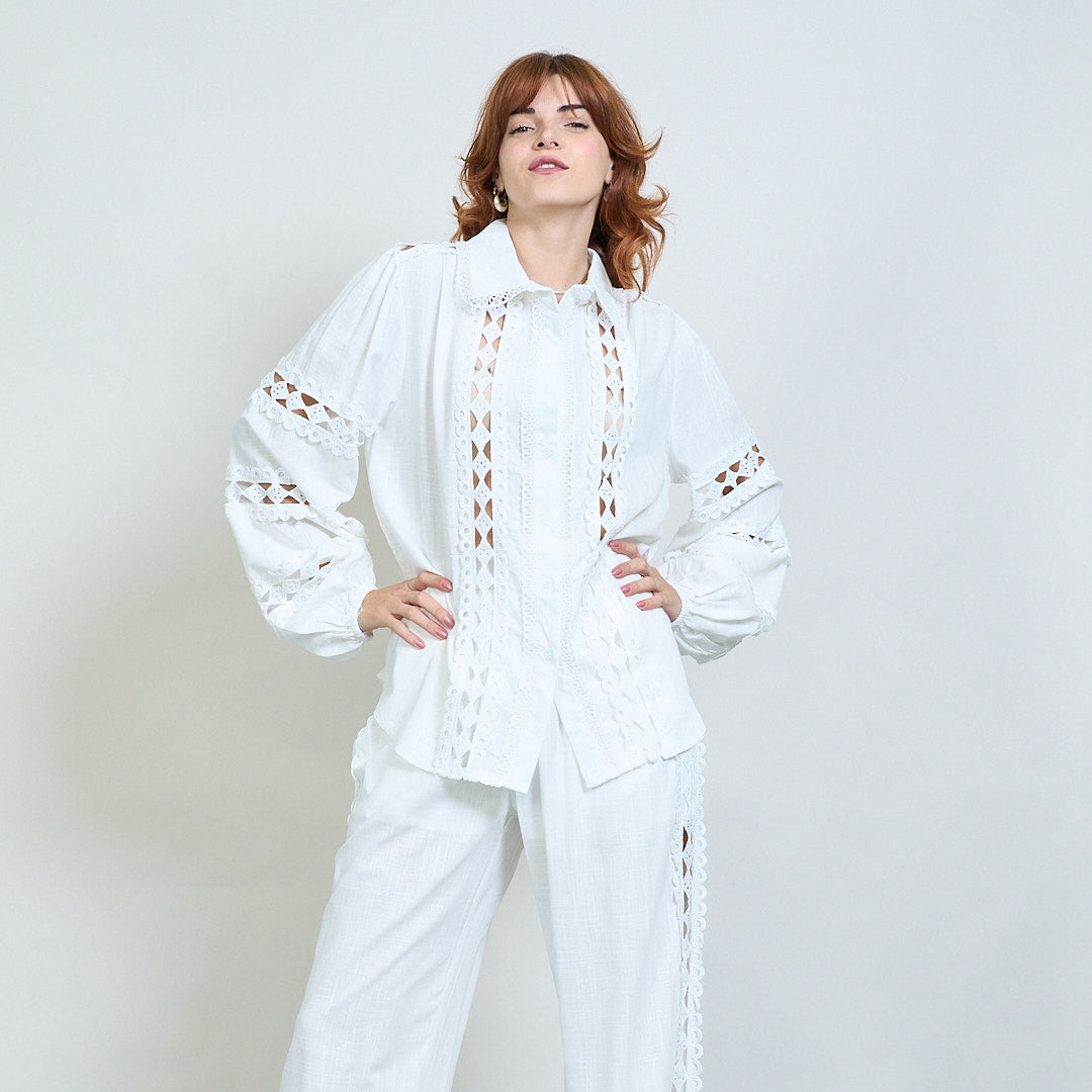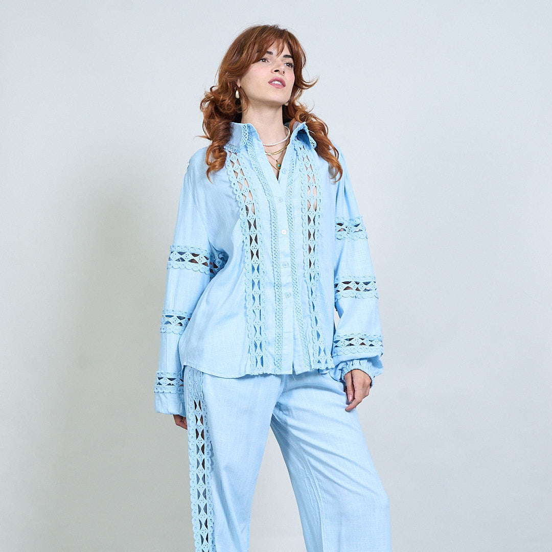 Spetsinsats broderad skjorta och bredbenbyxor samordnar grossist
