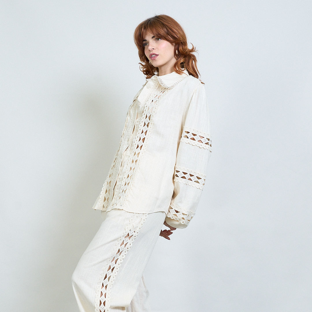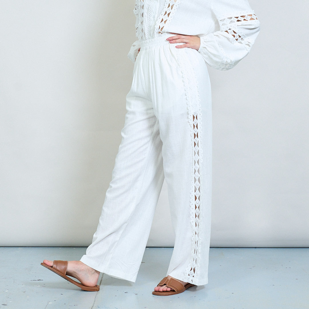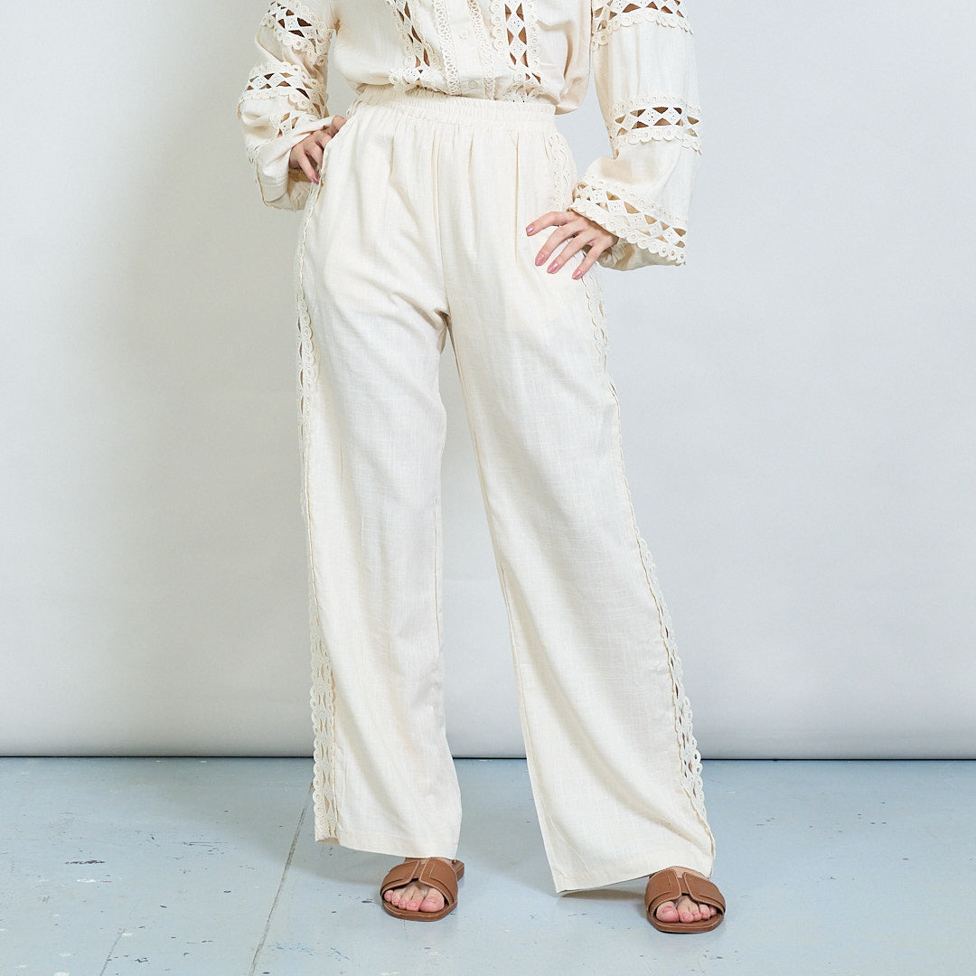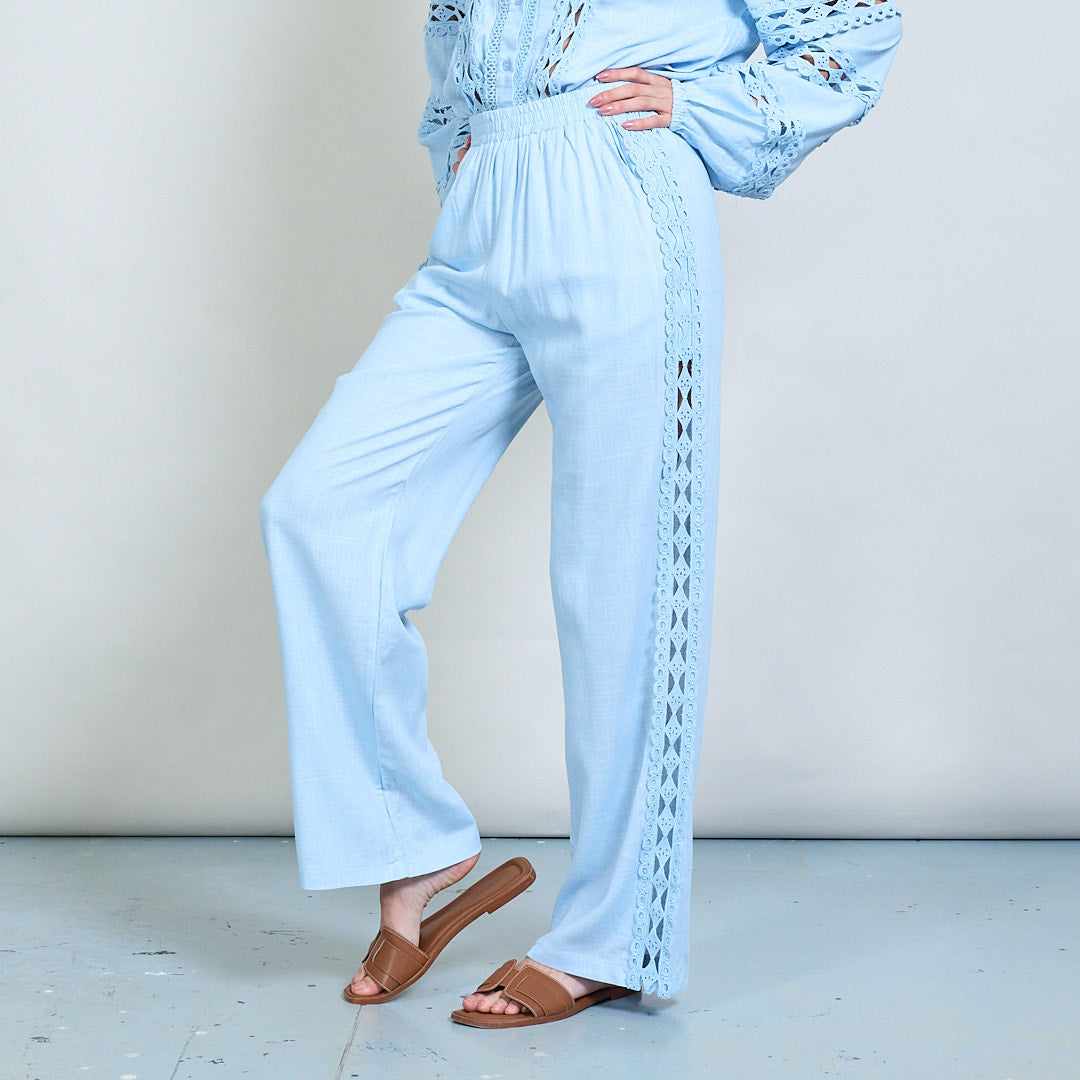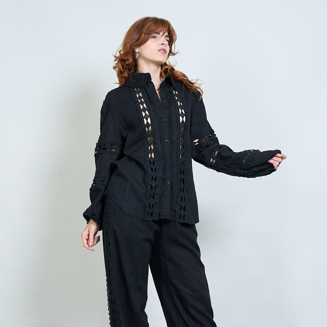 Spetsinsats broderad skjorta och bredbenbyxor samordnar grossist