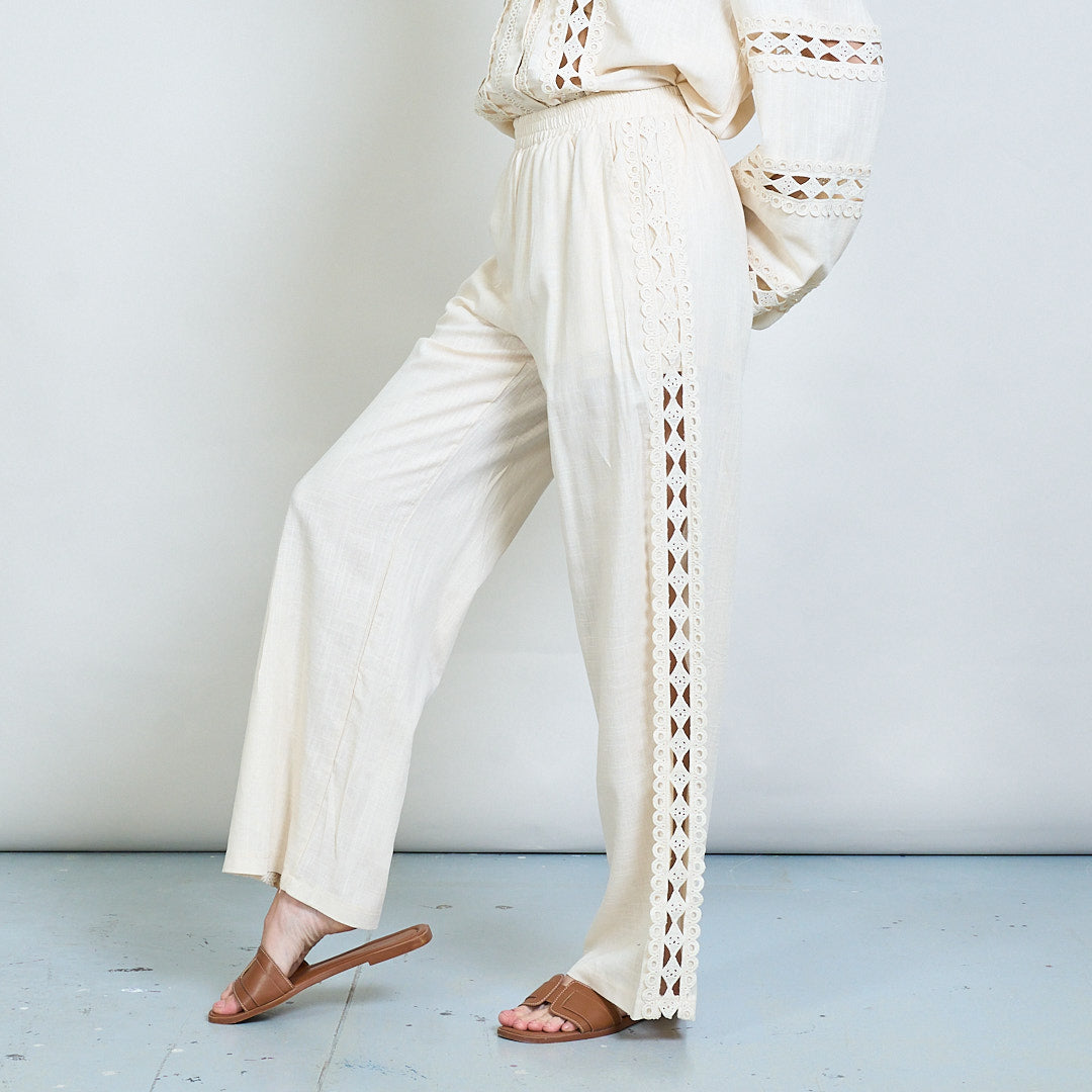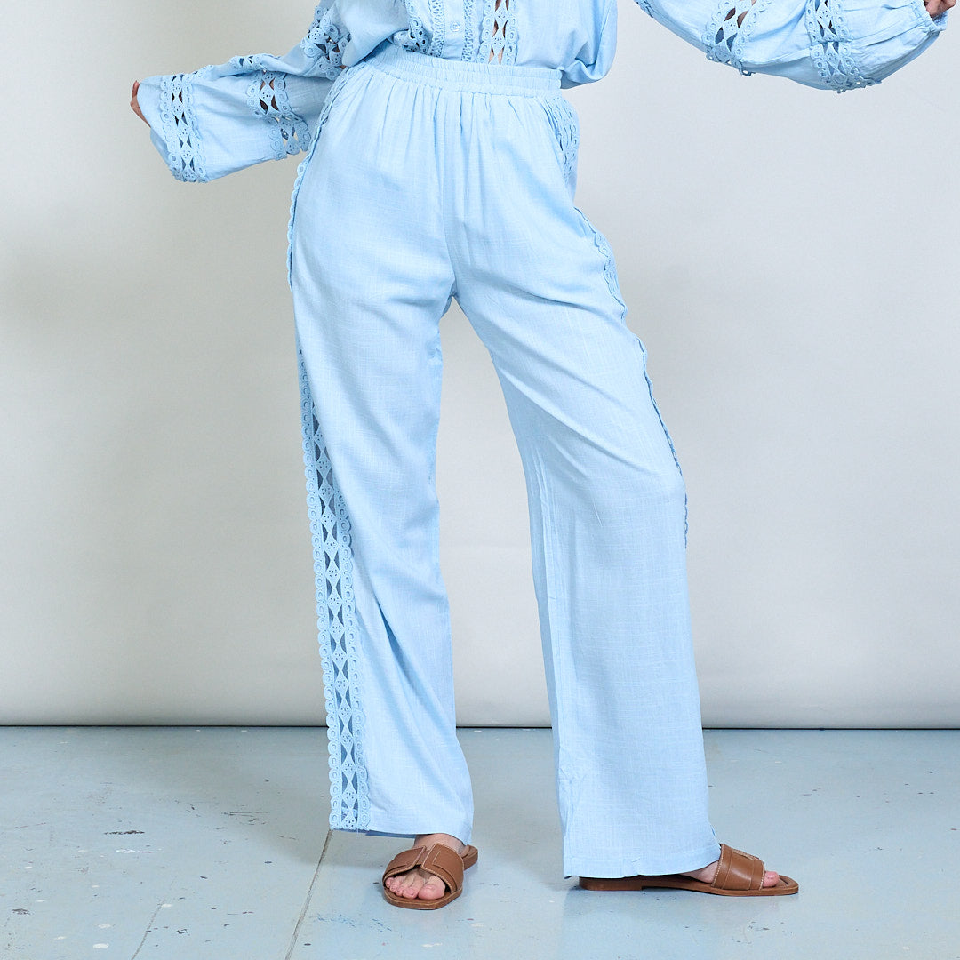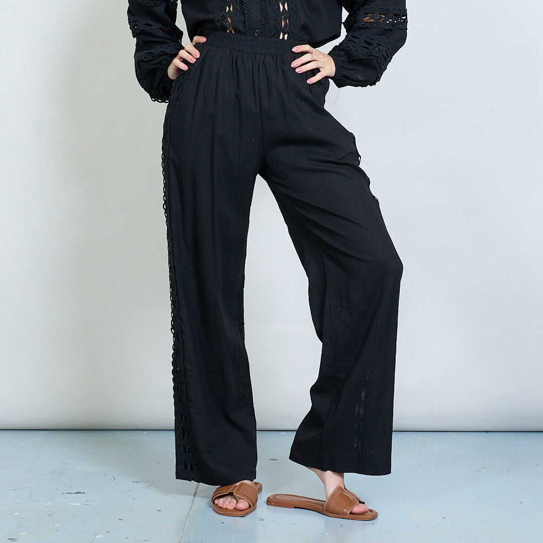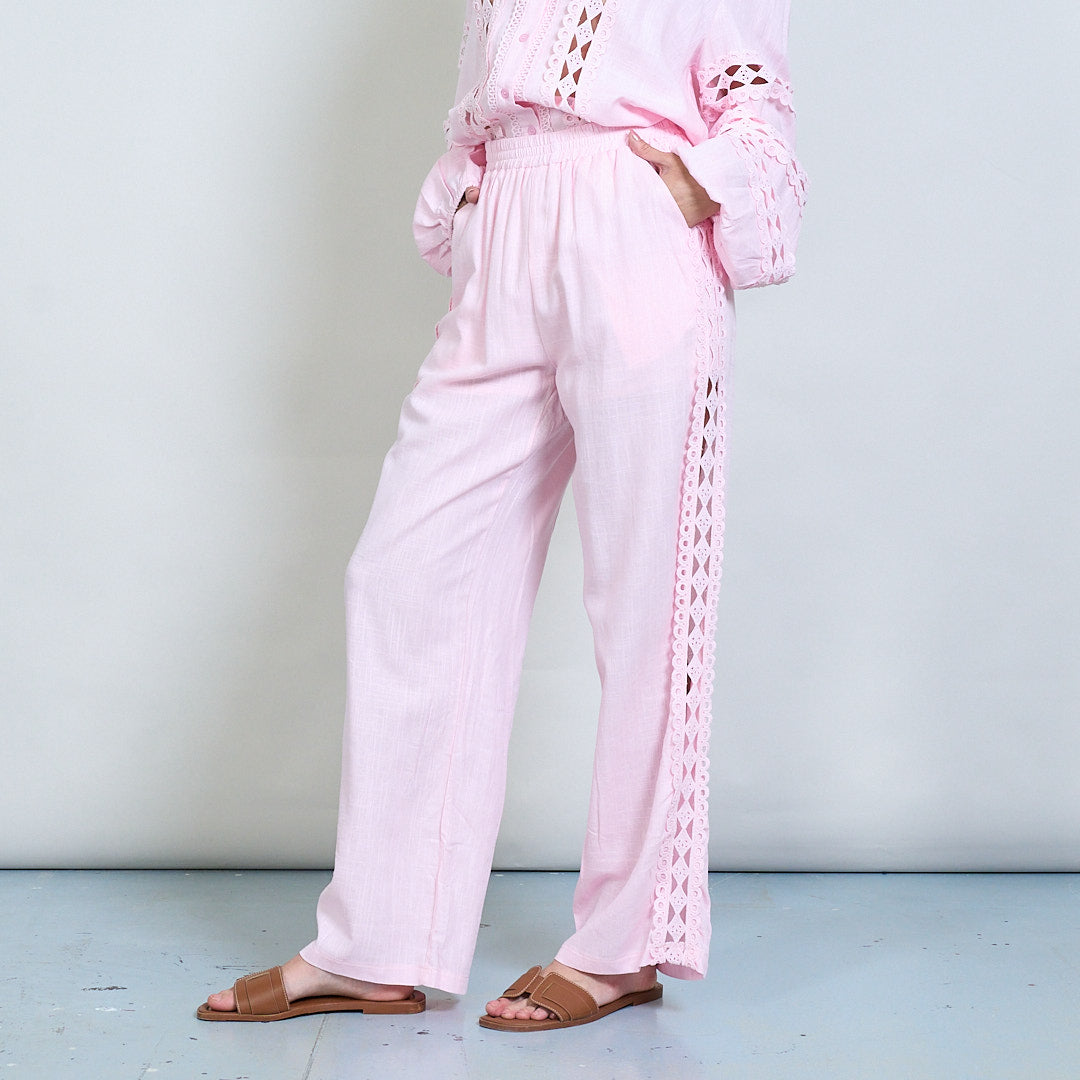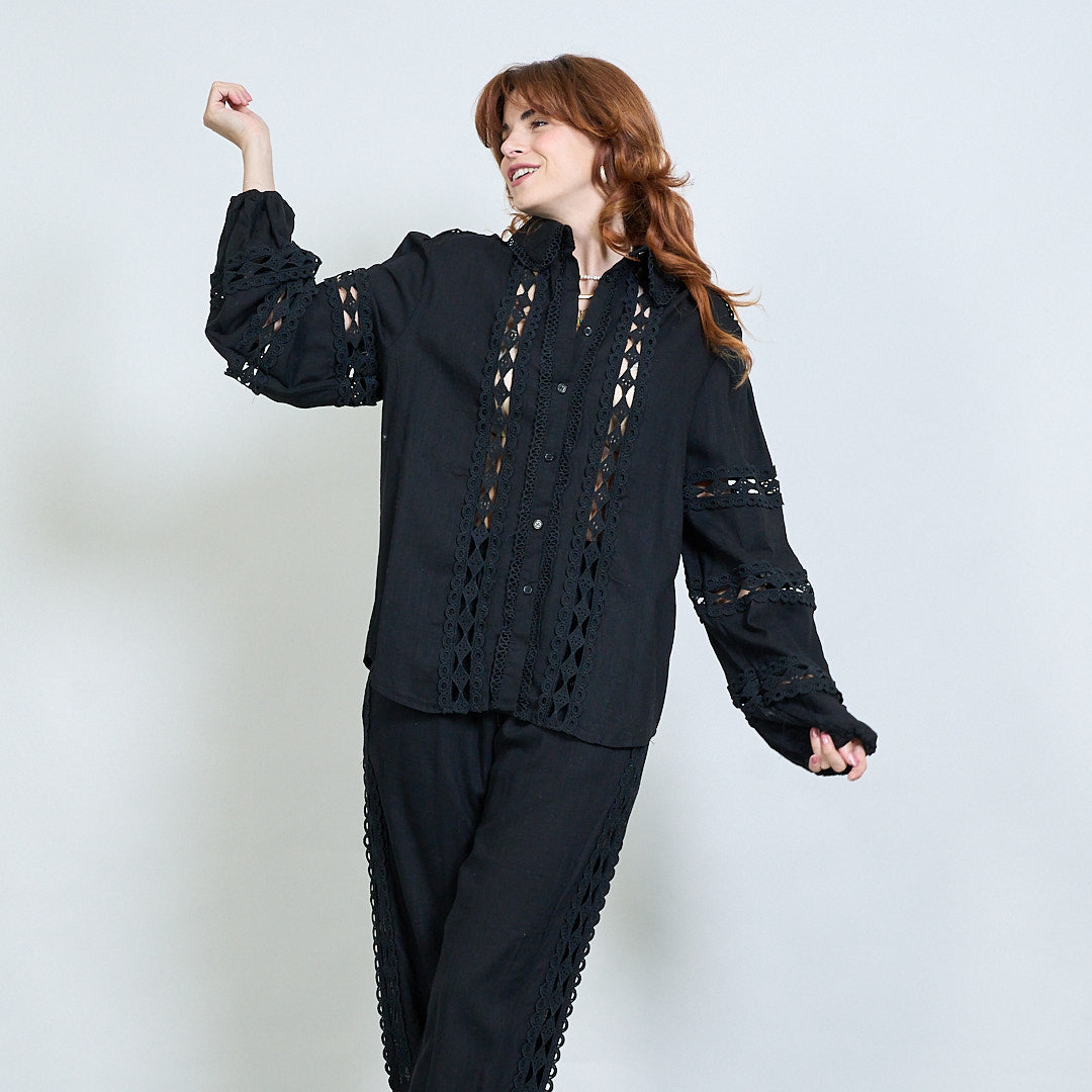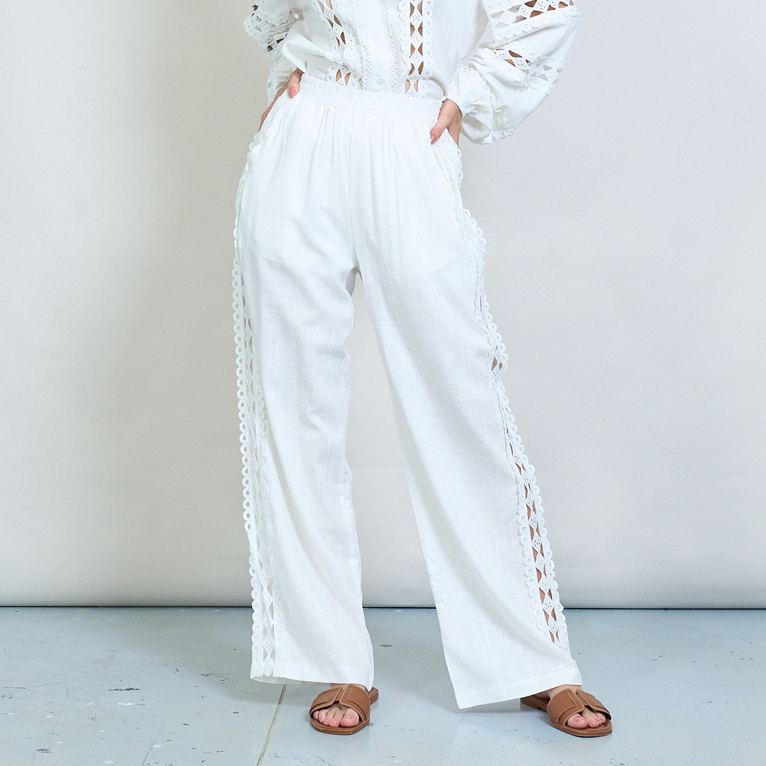 Spetsinsats broderad skjorta och bredbenbyxor samordnar grossist