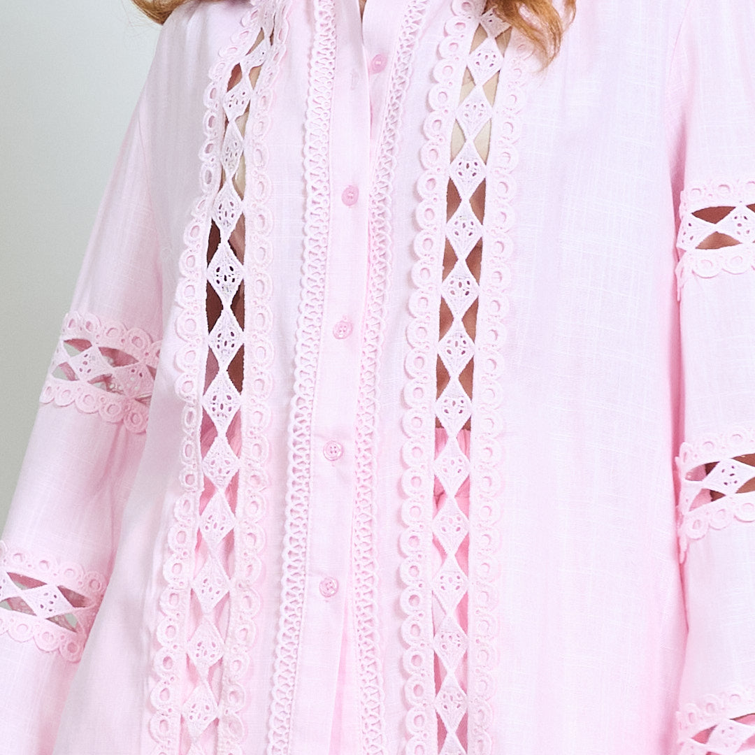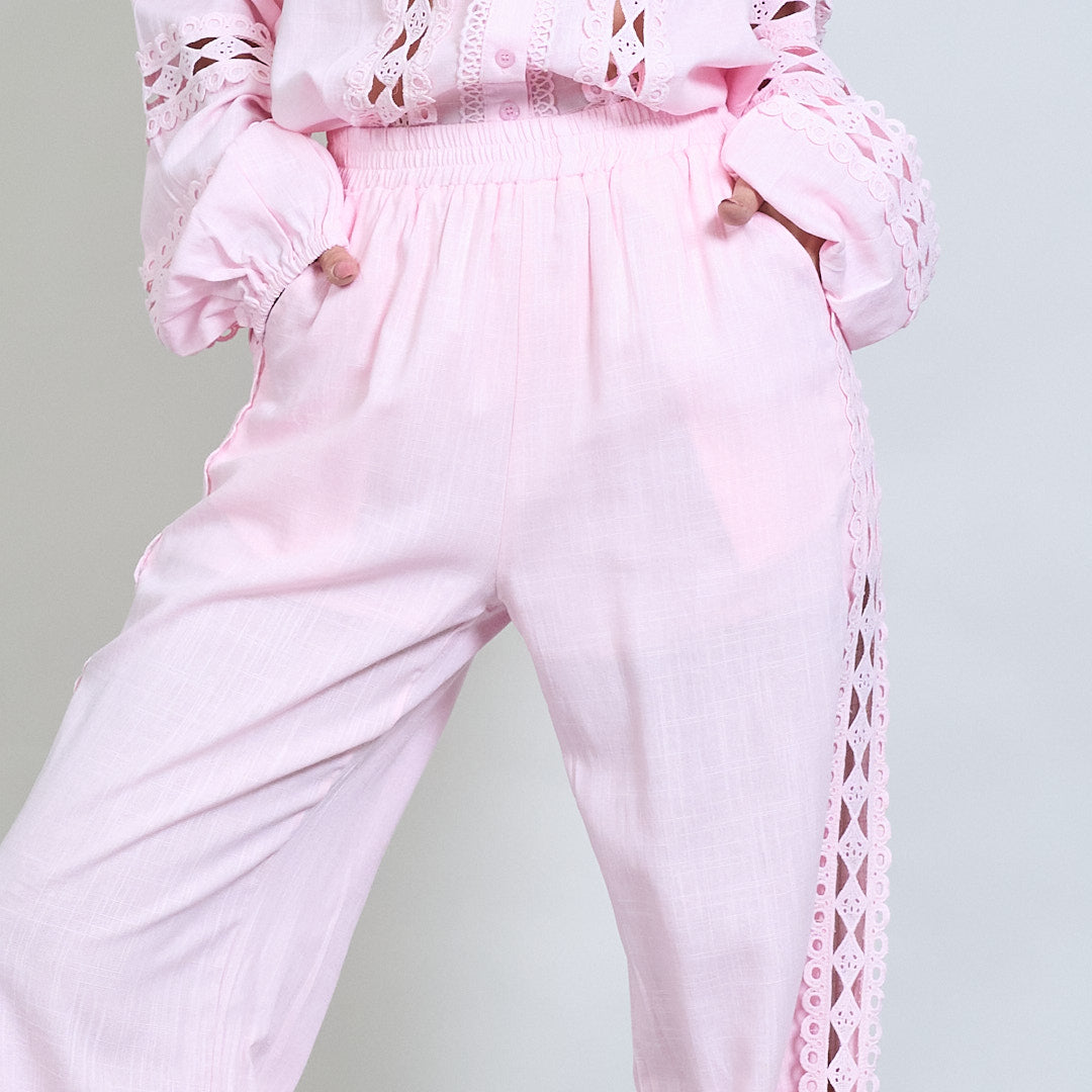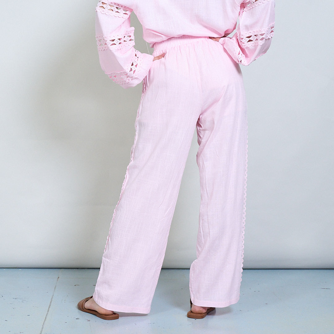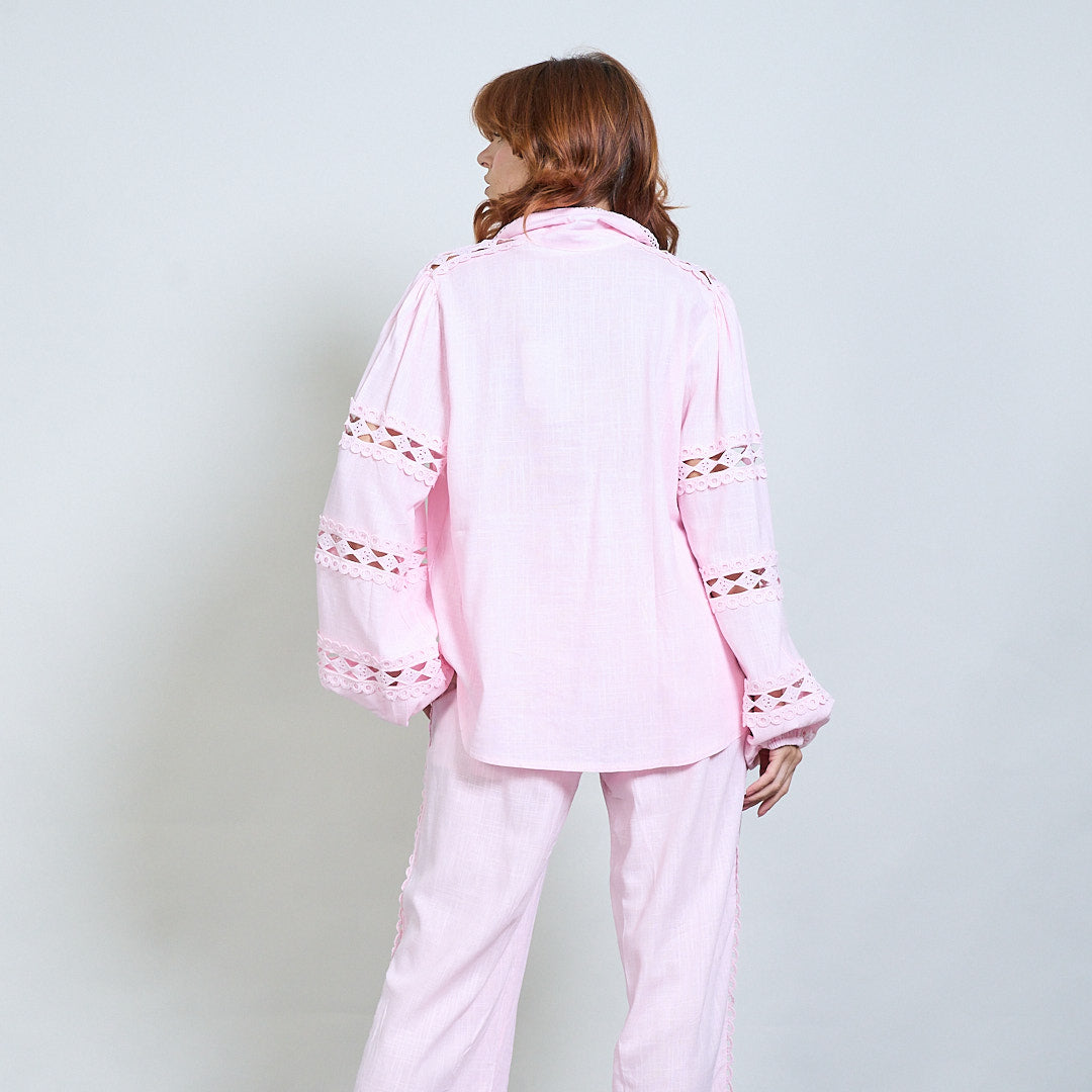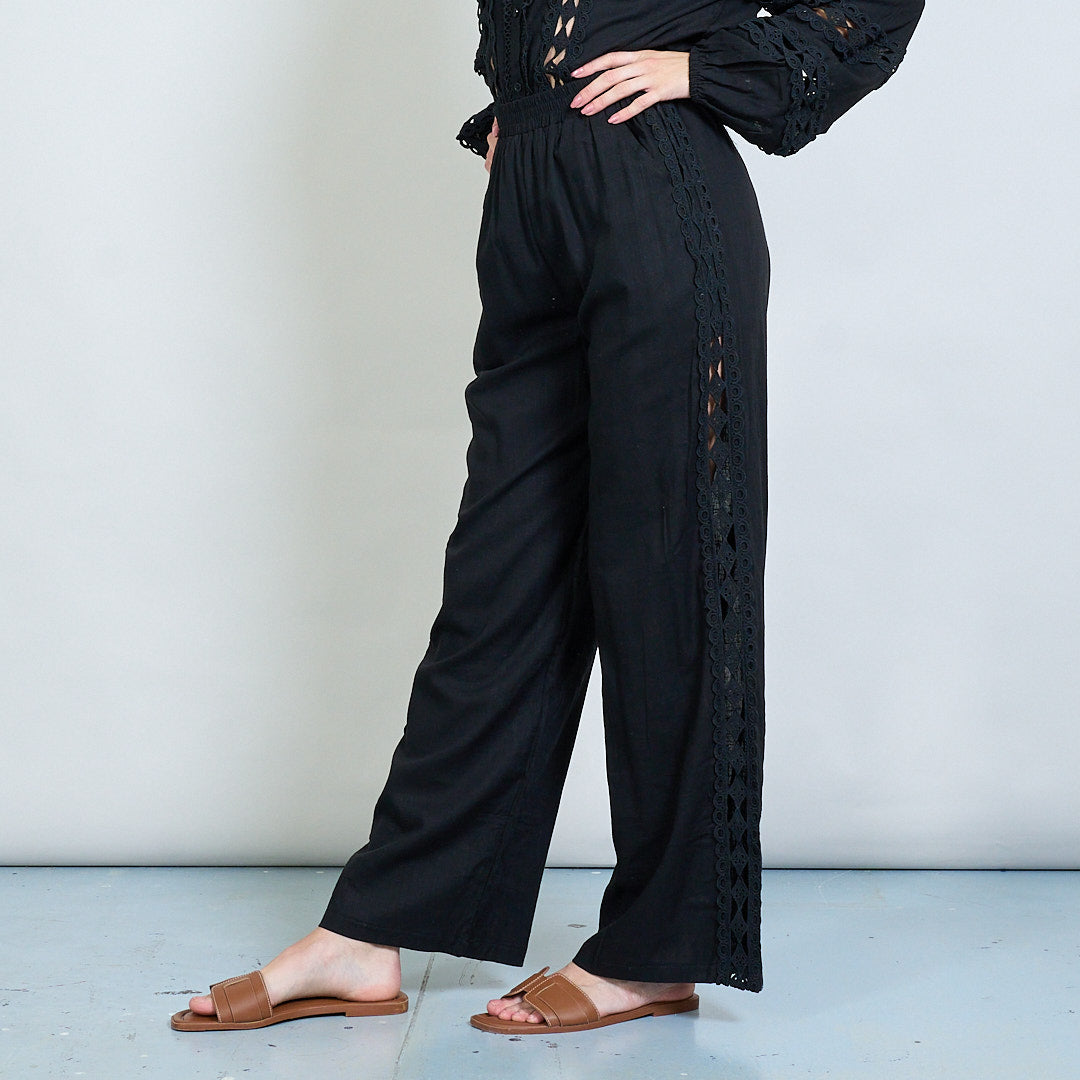 Spetsinsats broderad skjorta och bredbenbyxor samordnar grossist