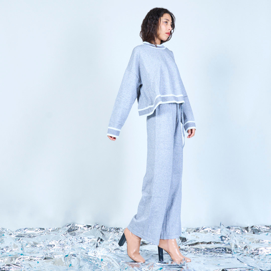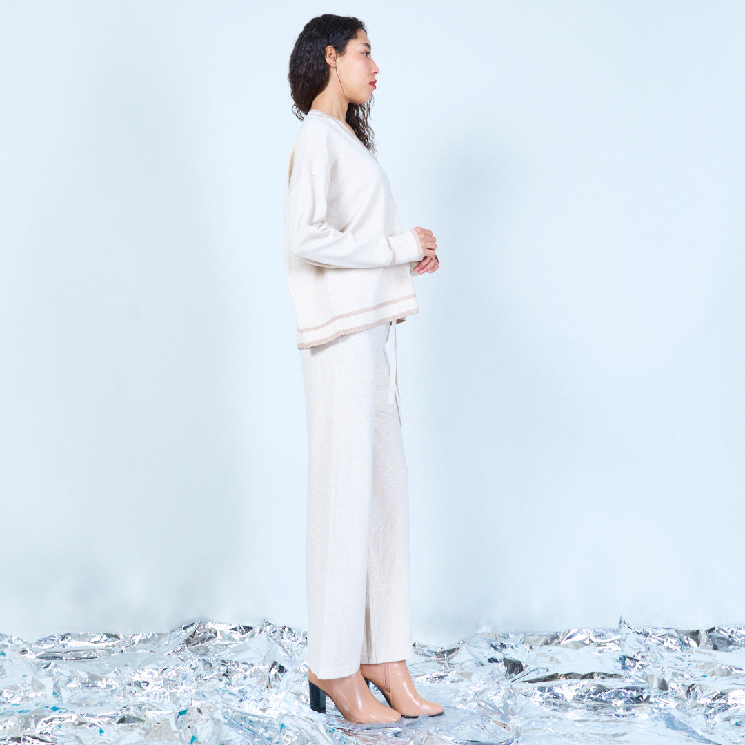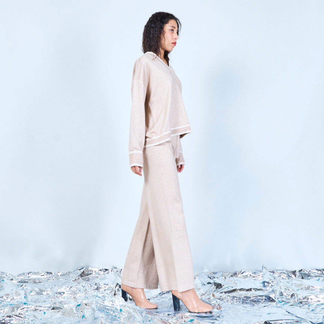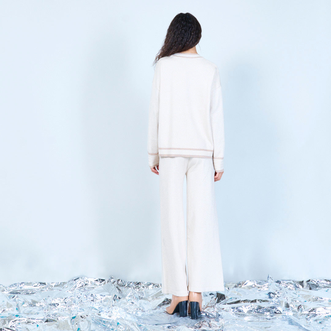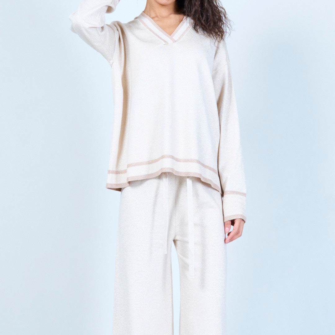 - Tvådelar med en V-Neck-topp- och bredbenbyxor