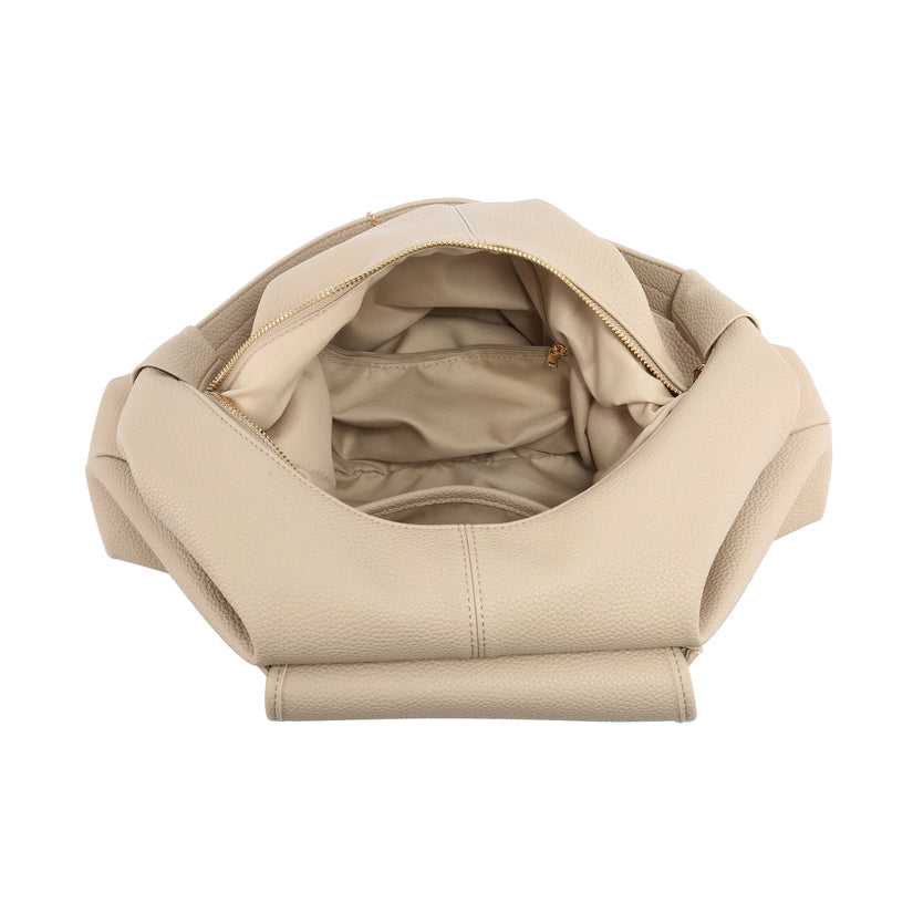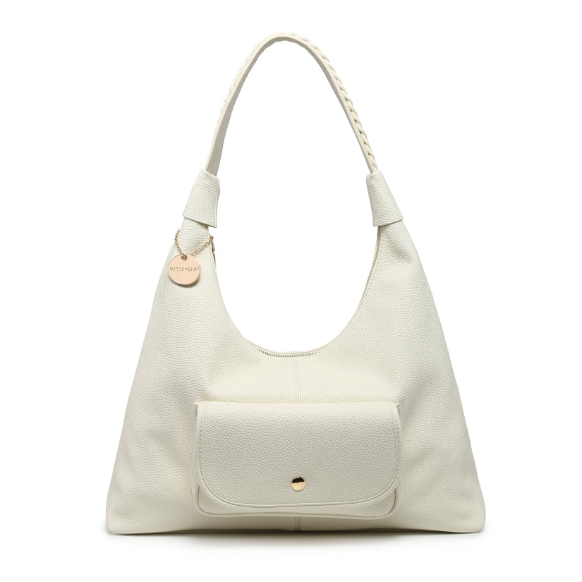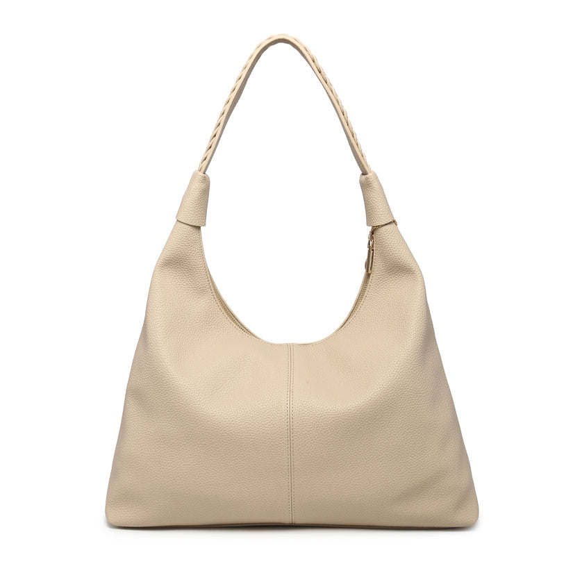 Mjuk texturerad hobopåse med flätad axelrem och frontklaffficka grossist
