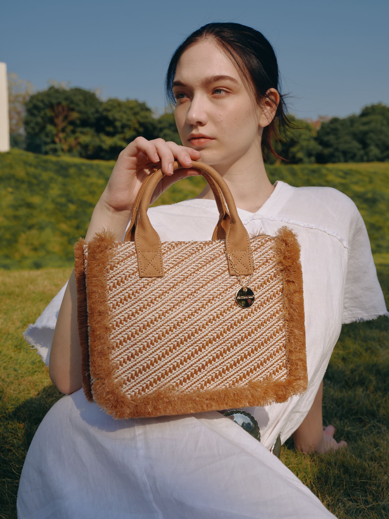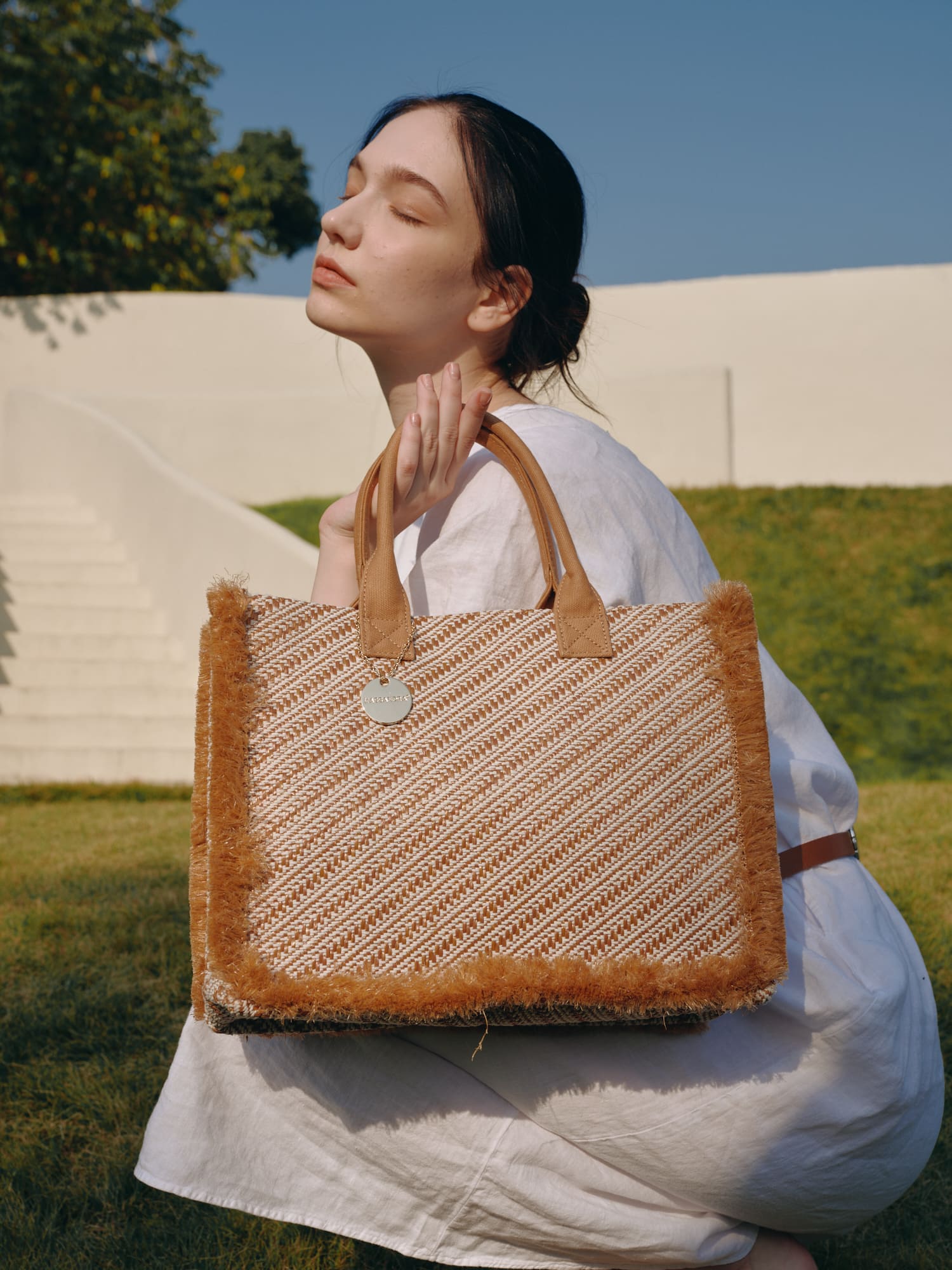 - Stor strukturerad tote med diagonal vävd struktur för extra djup