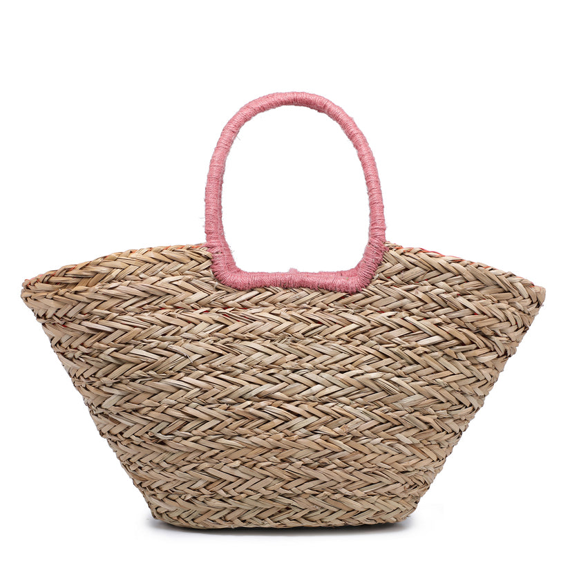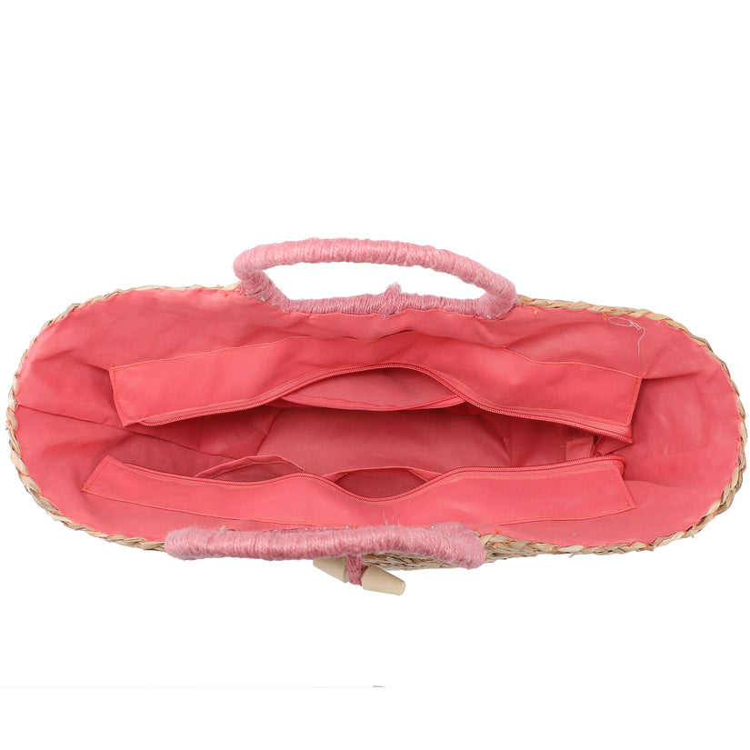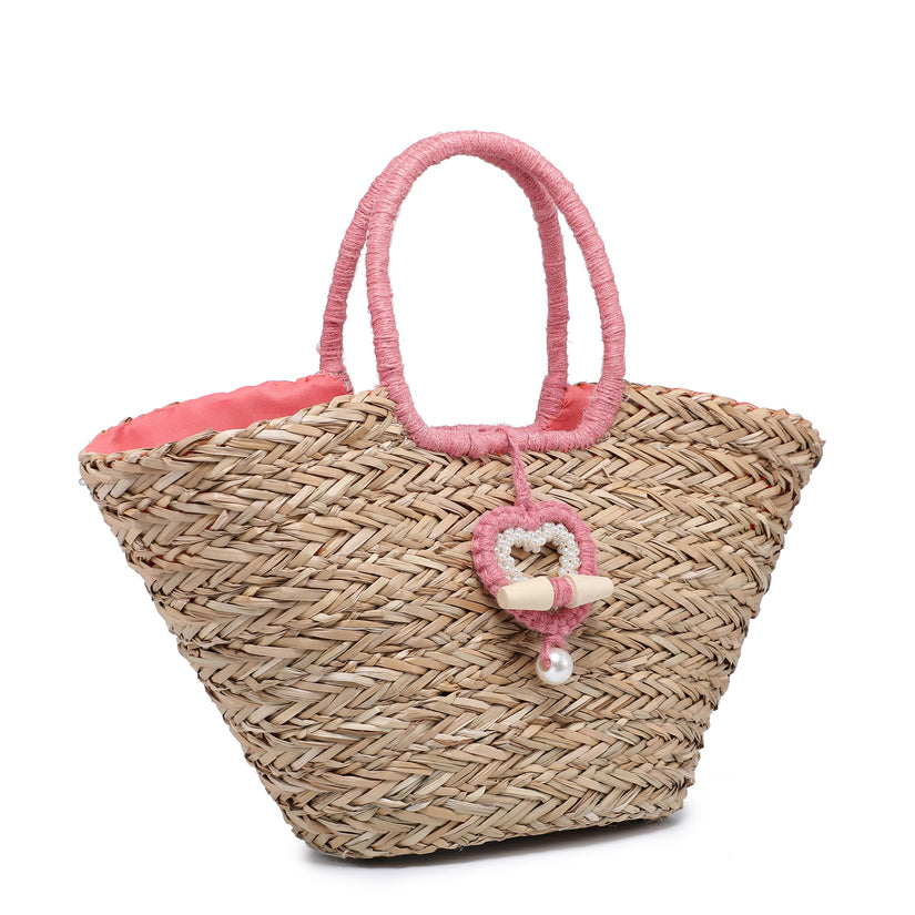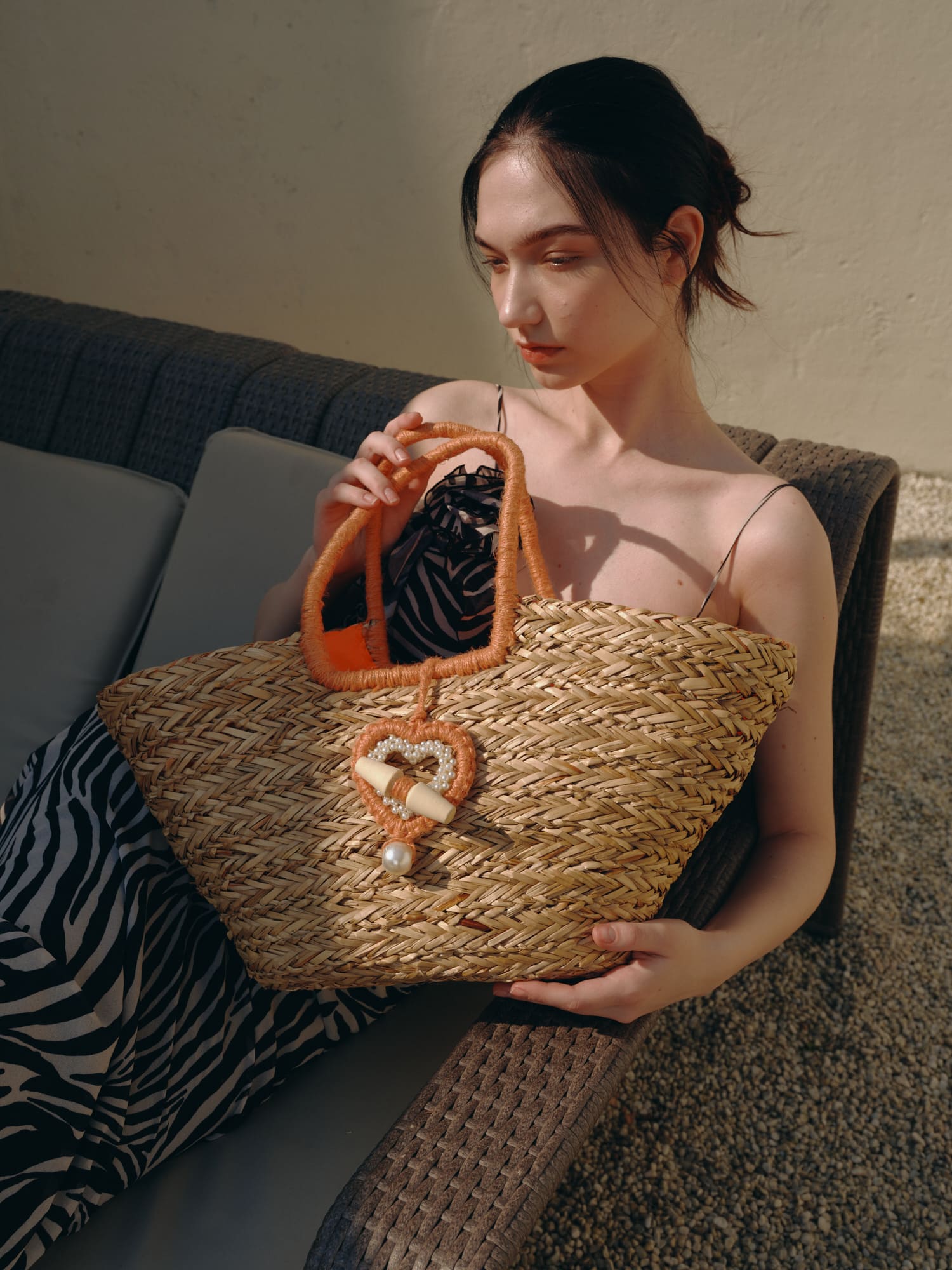 Woven Straw Tote with Heart Pendant and Pearl Charm Details grossist
