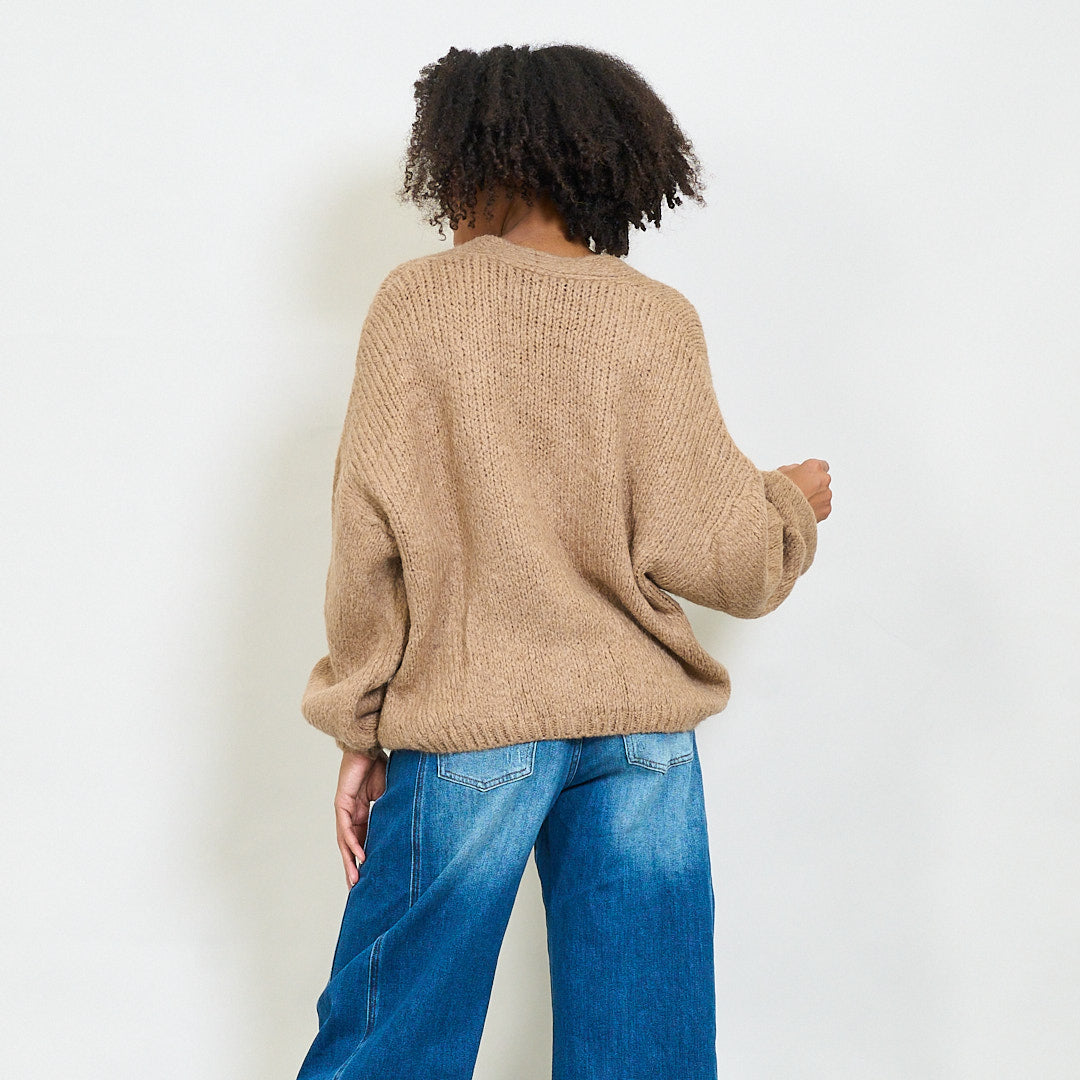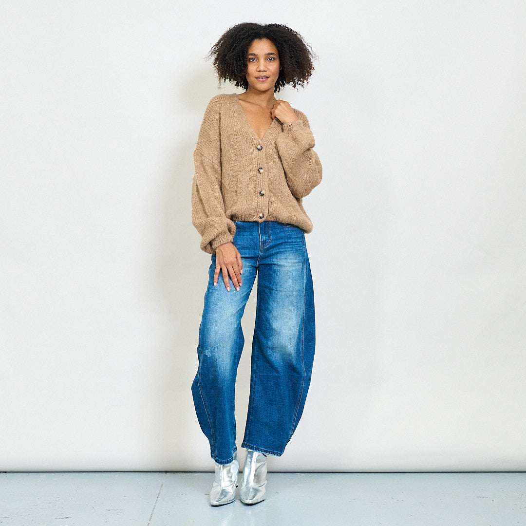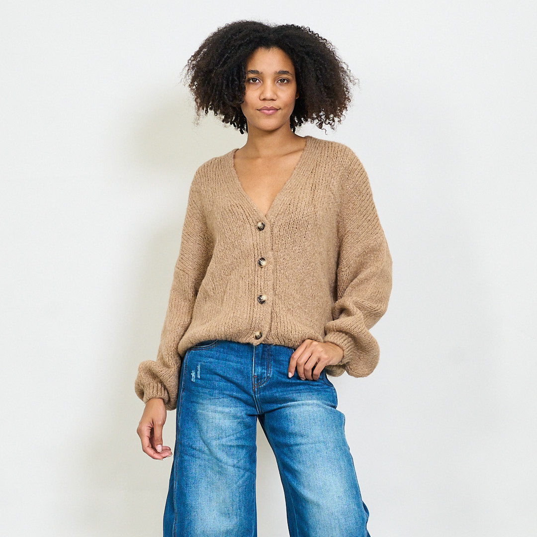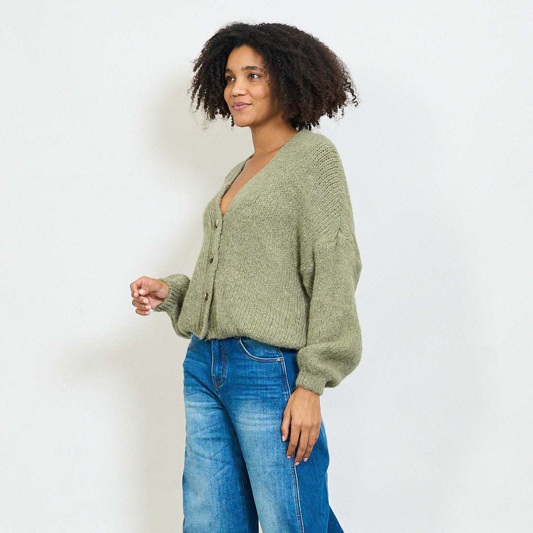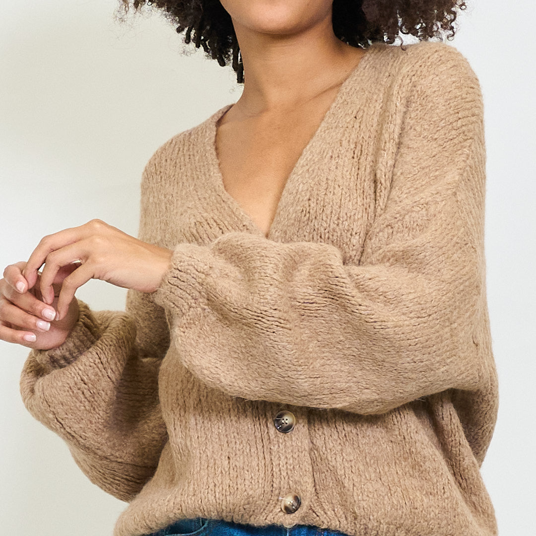Avslappnad V-ringning mjuk stickad beskuren kofta grossist