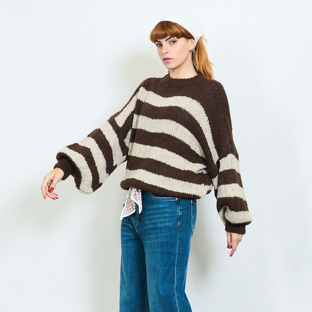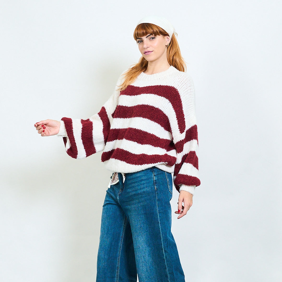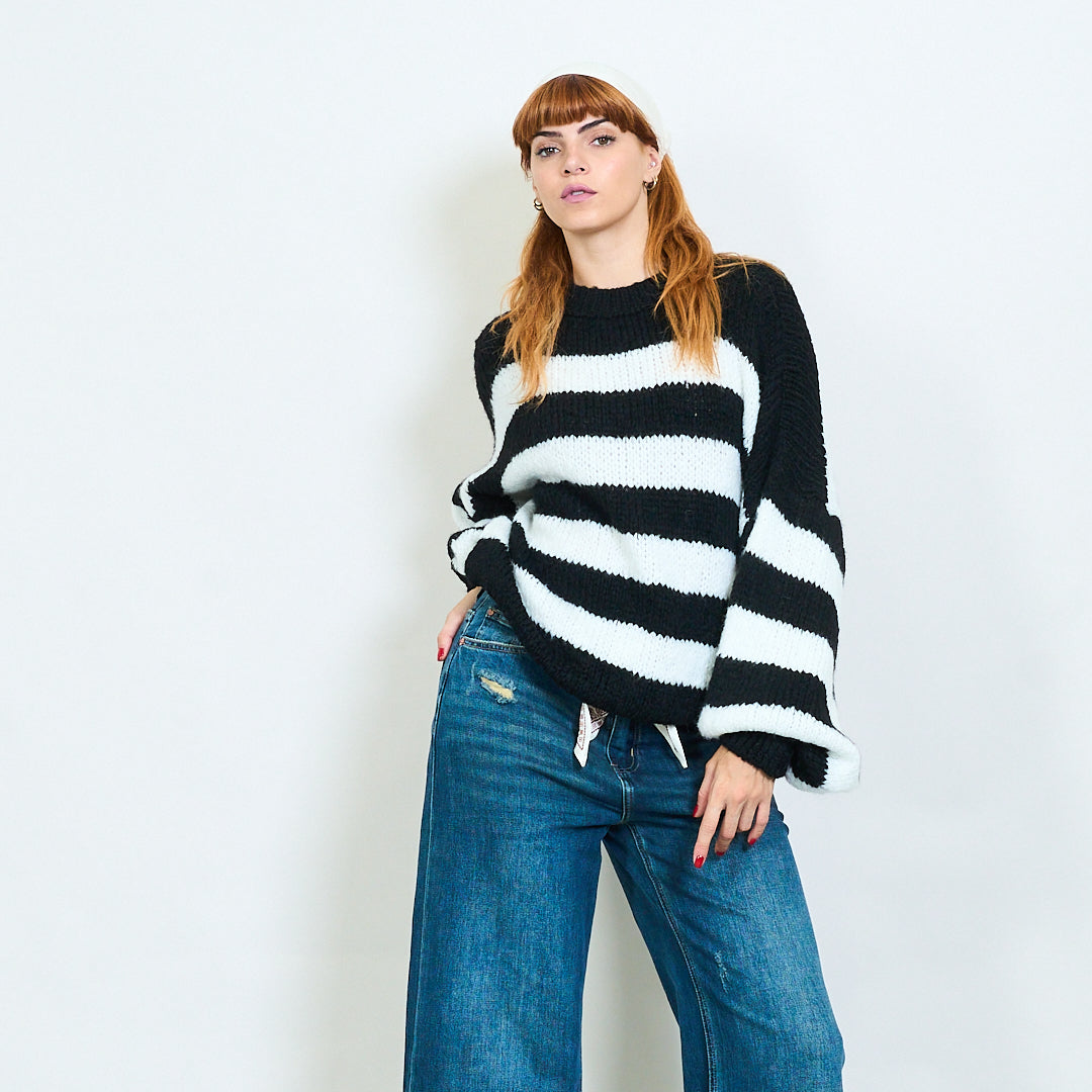 Djärv randig fuzzy stickad pullover grossist