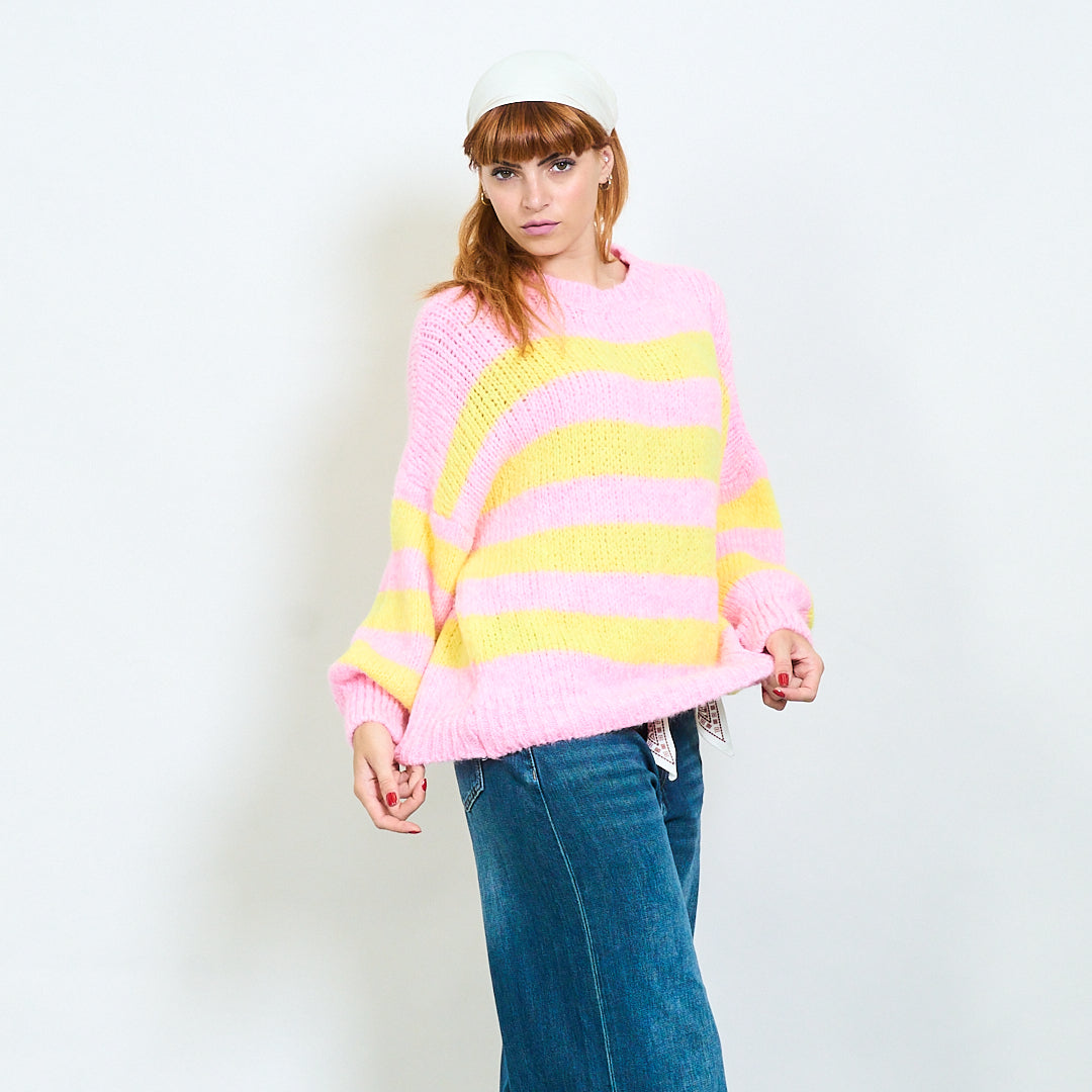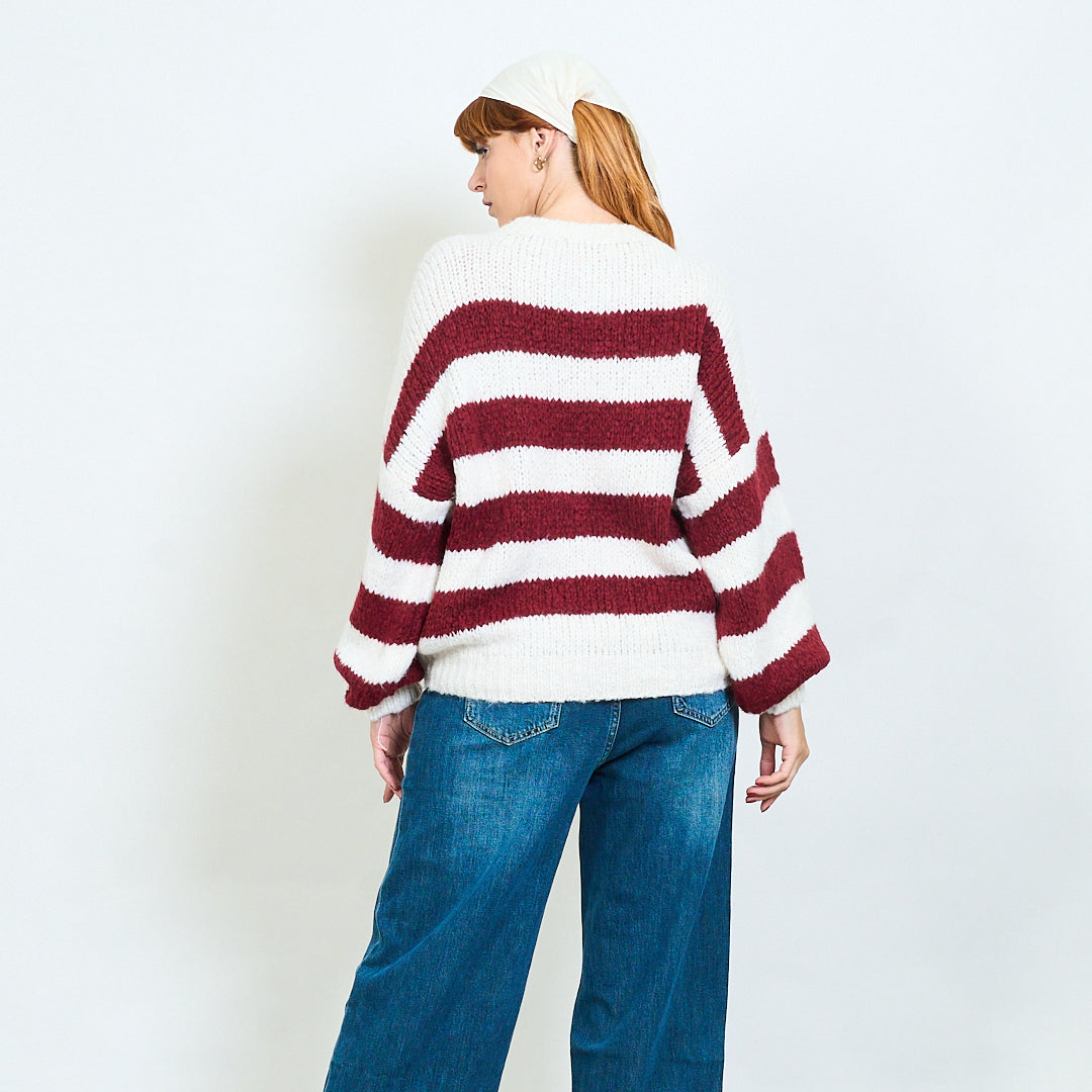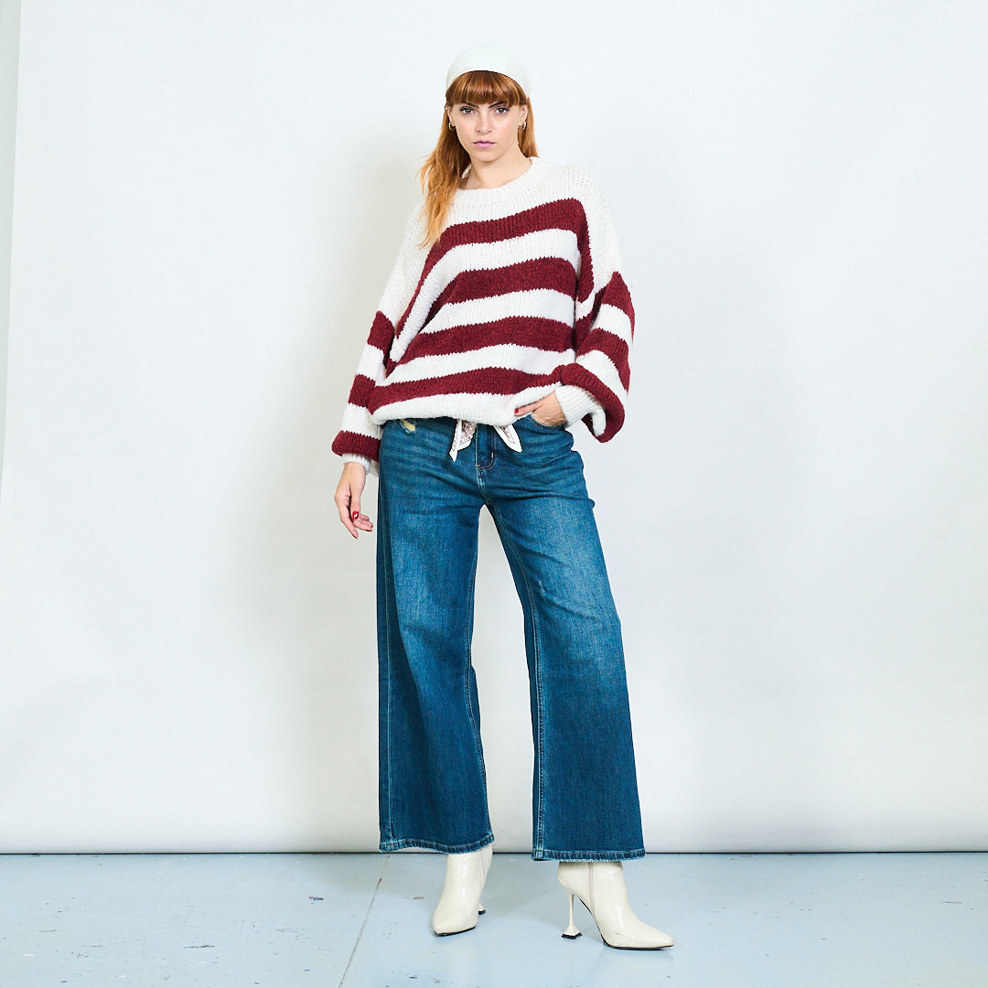 Djärv randig fuzzy stickad pullover grossist