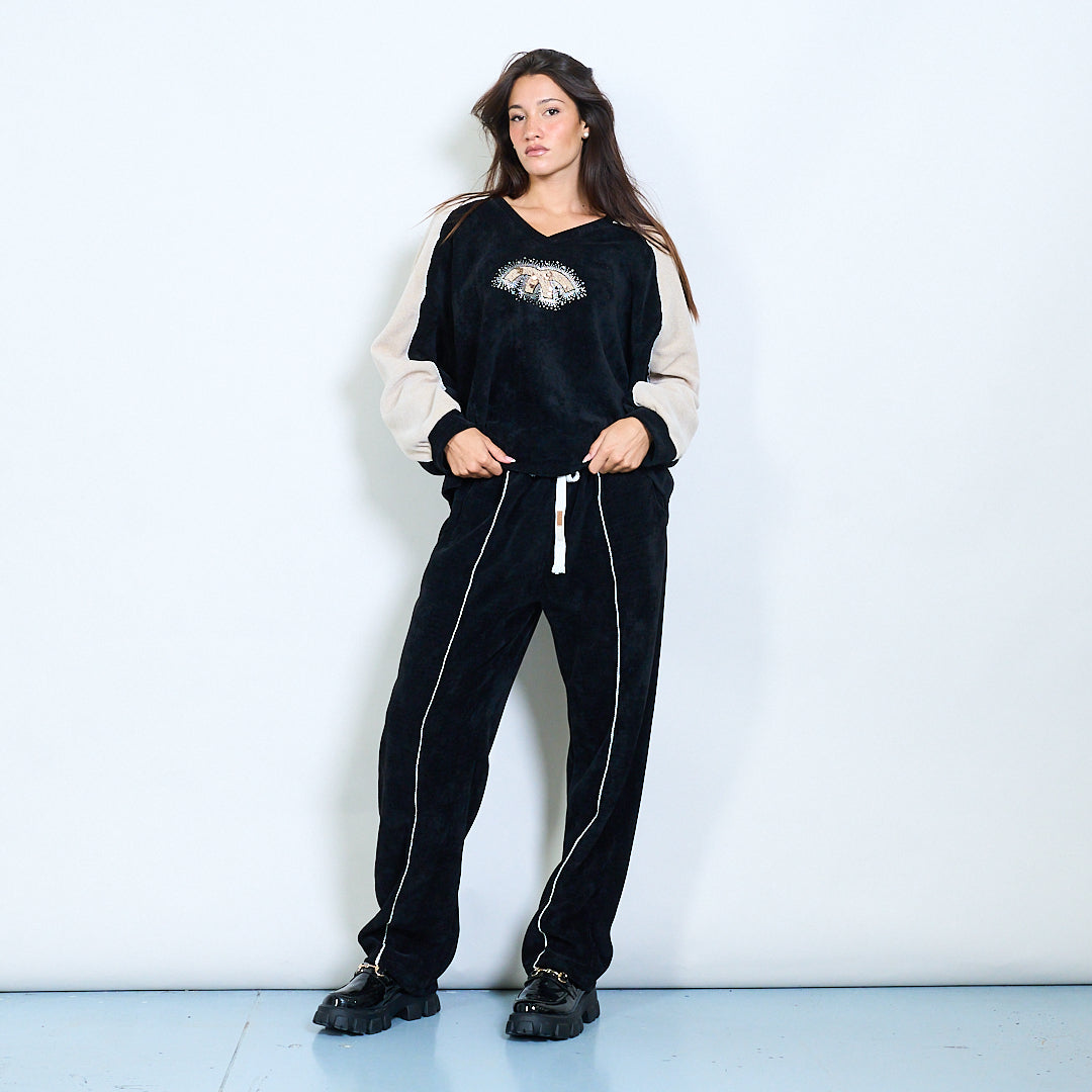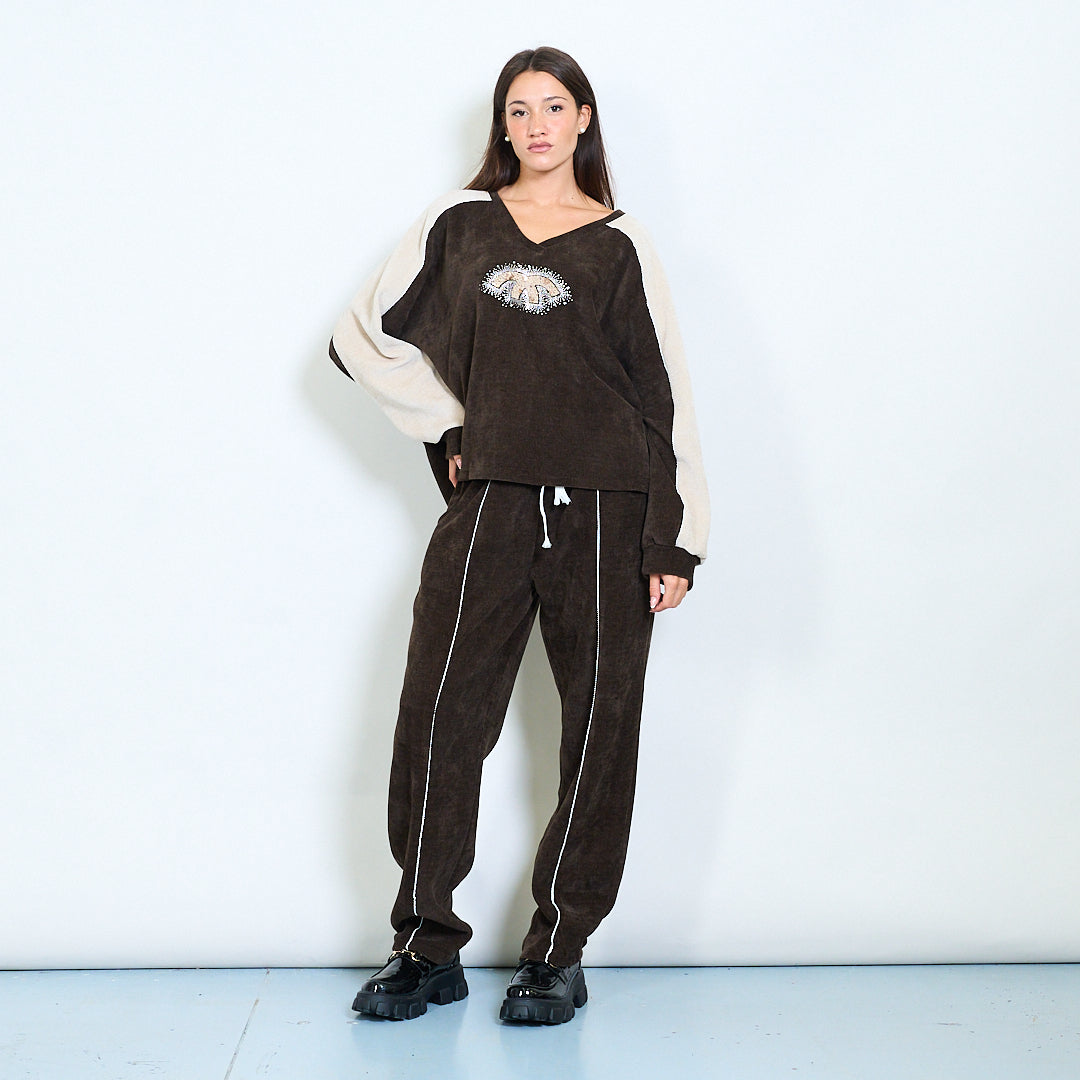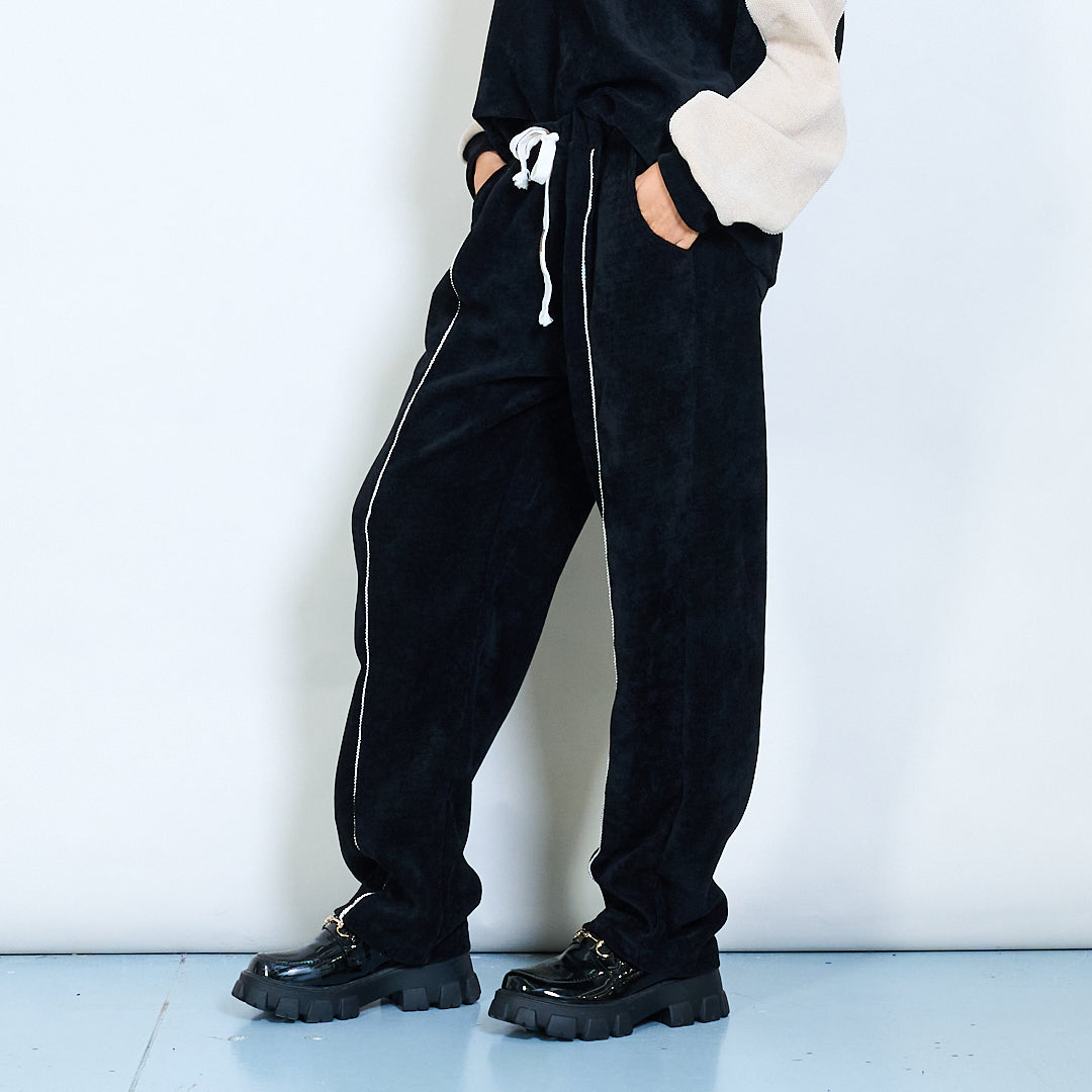 - Kontraströr längs benen som lägger till en sportig, modern accent