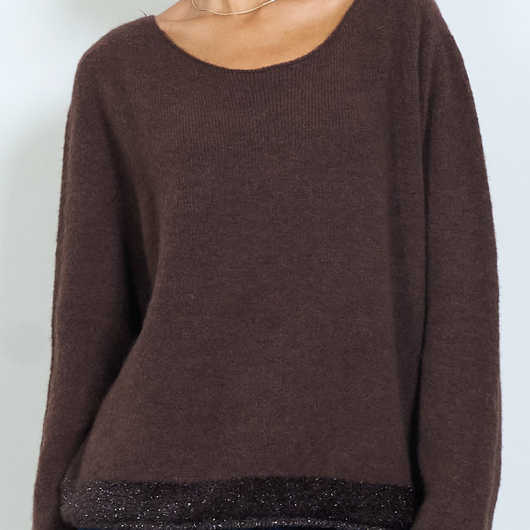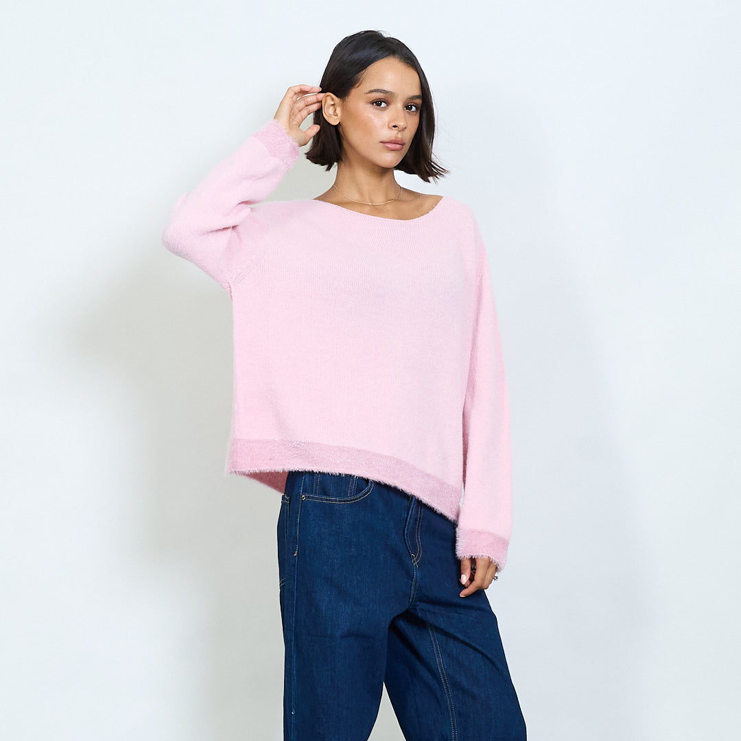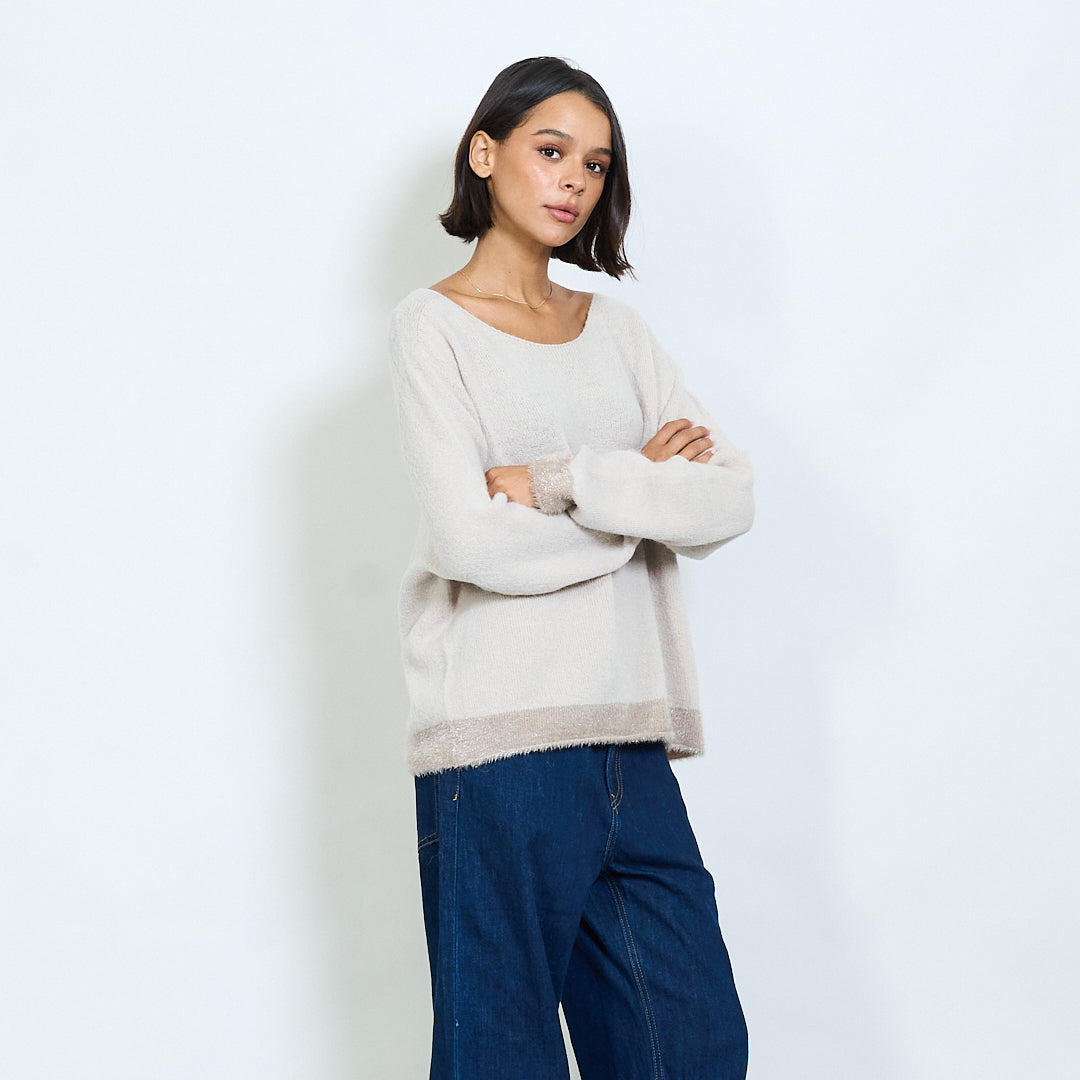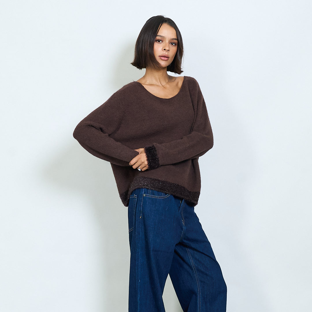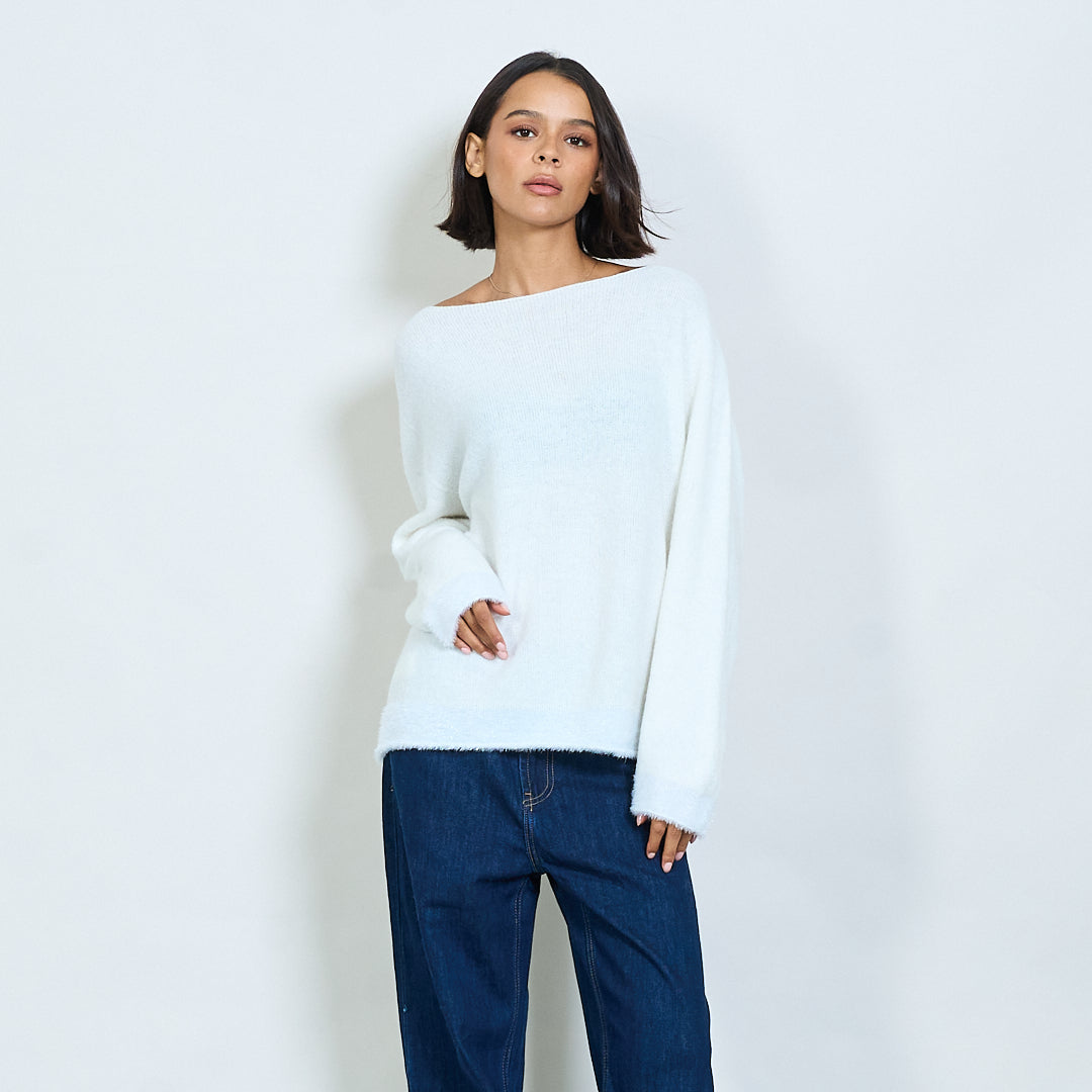 Mjuk stickad långärmad kammussla hem pullover grossist