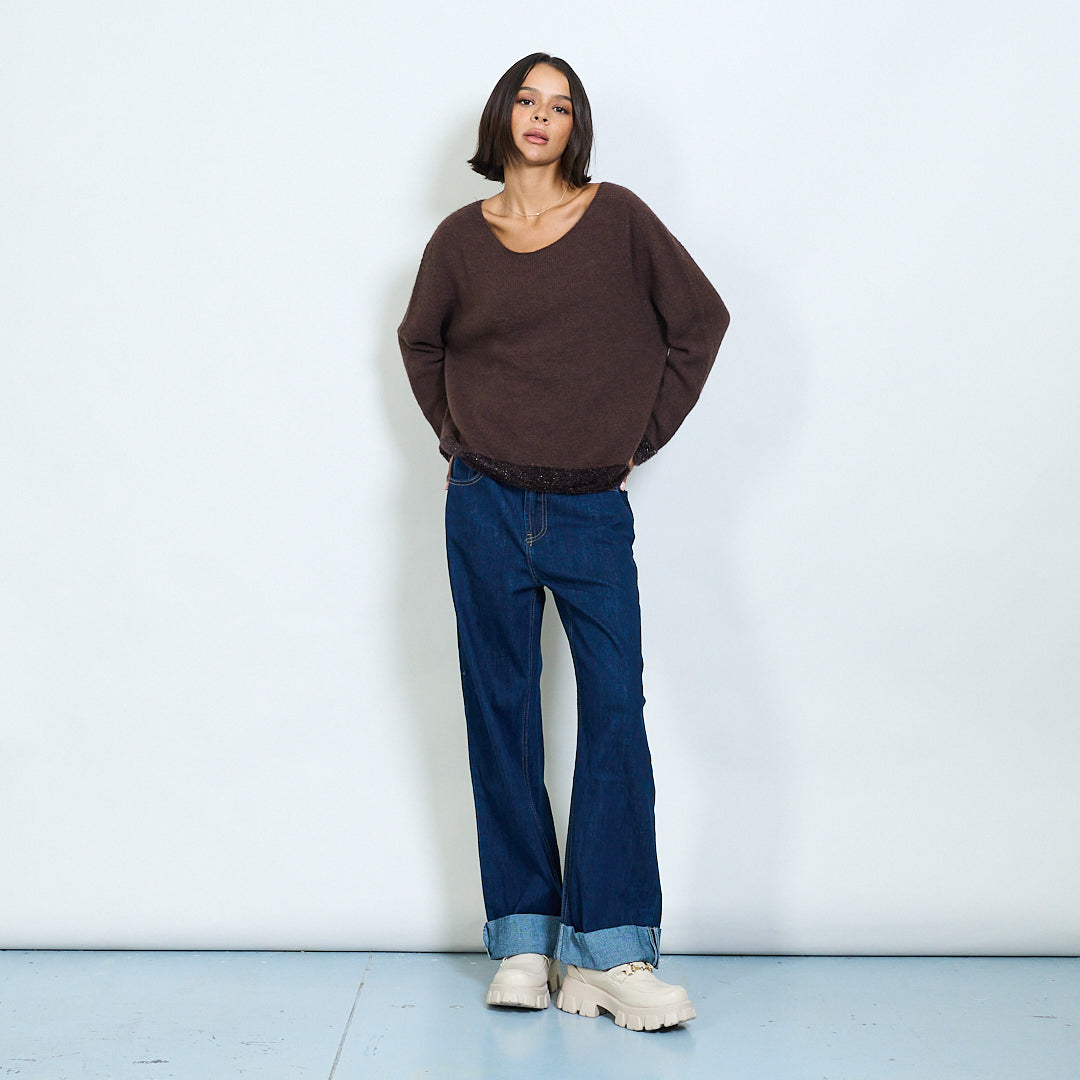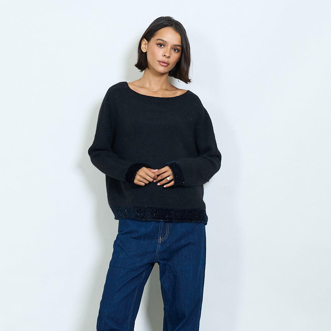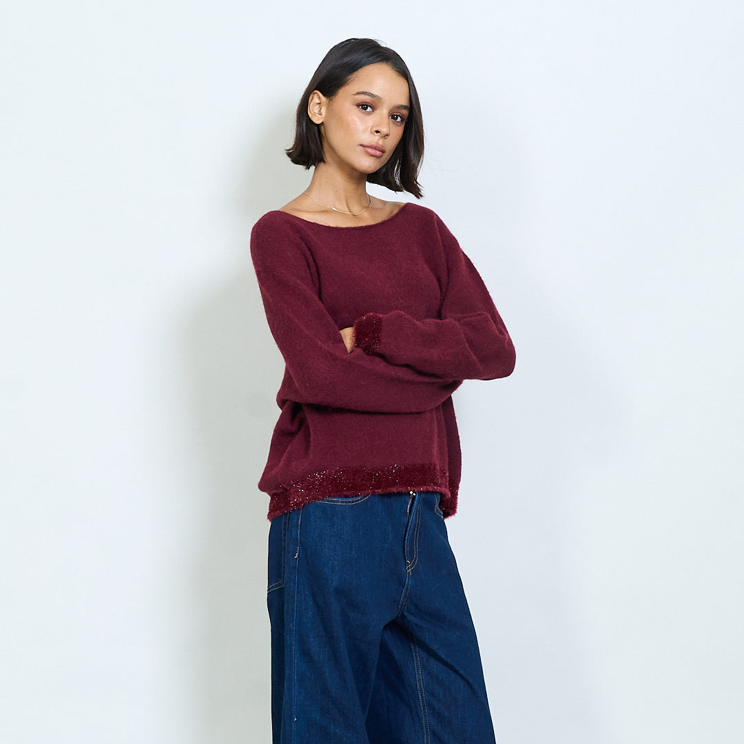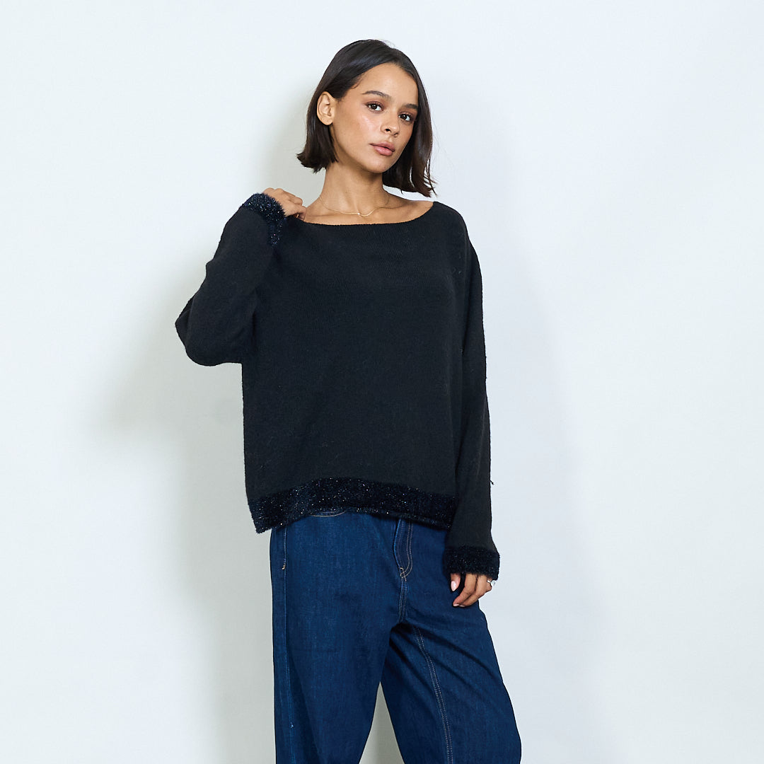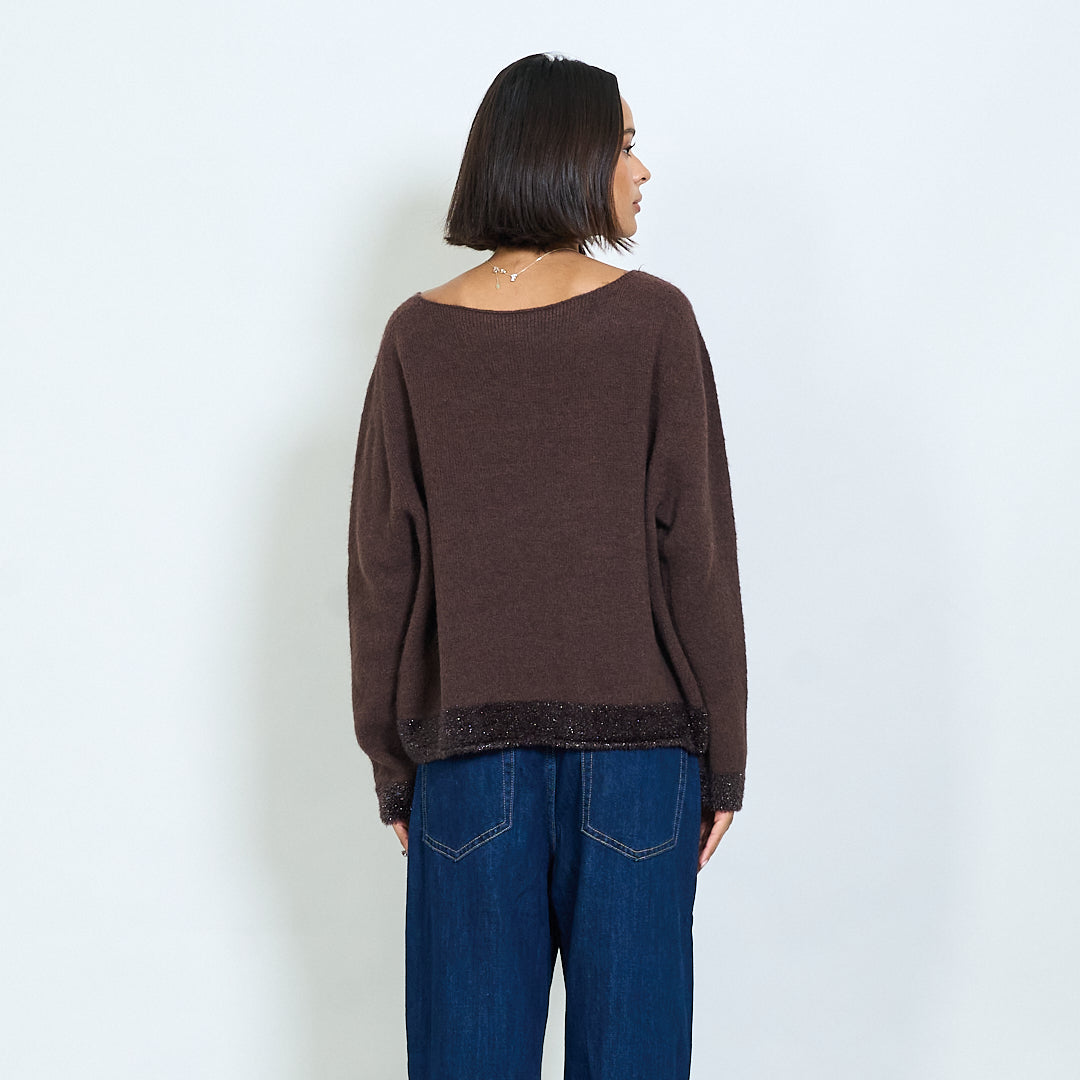 Mjuk stickad långärmad kammussla hem pullover grossist