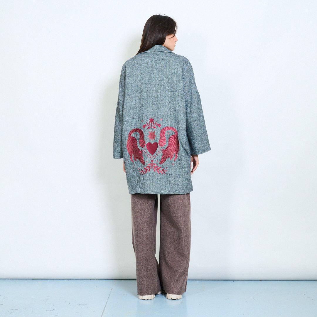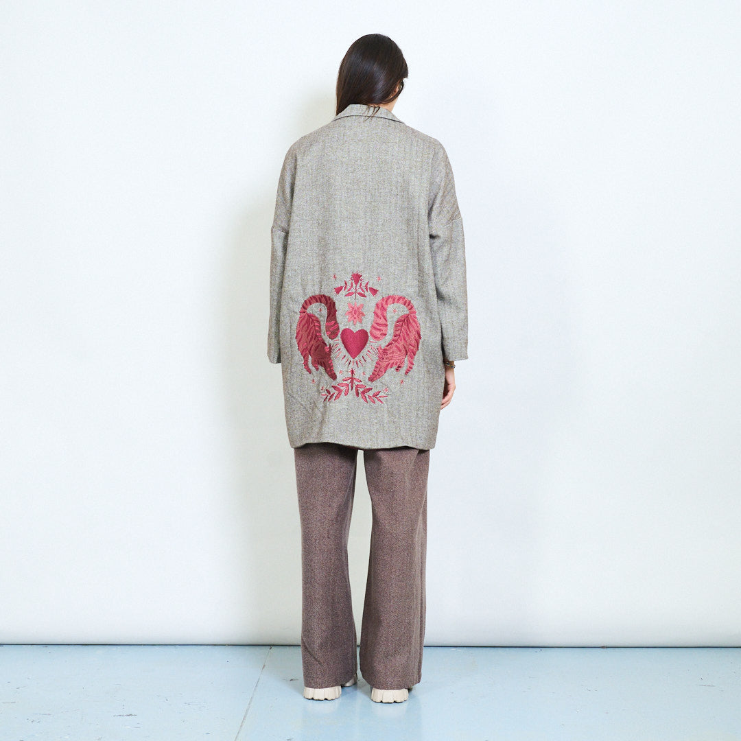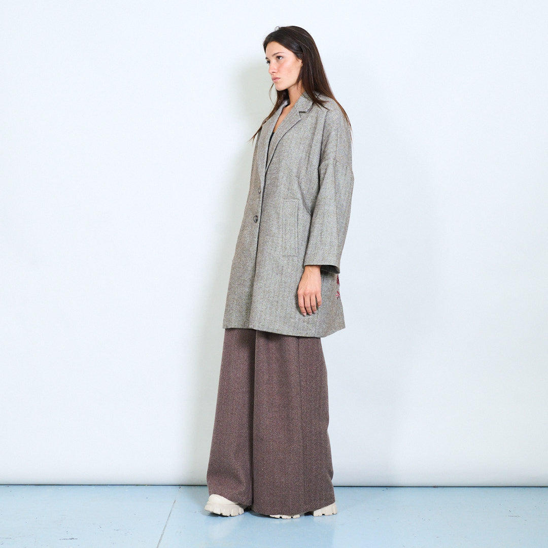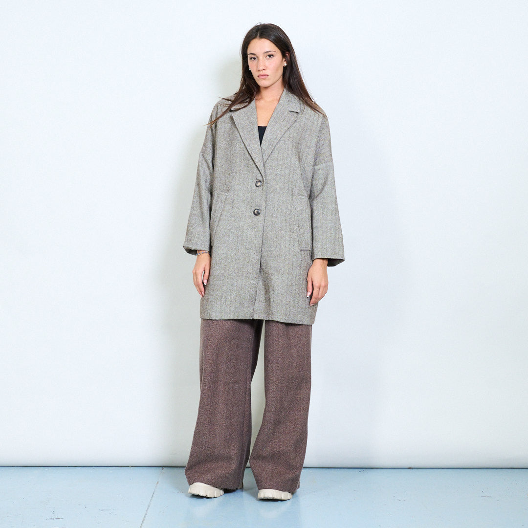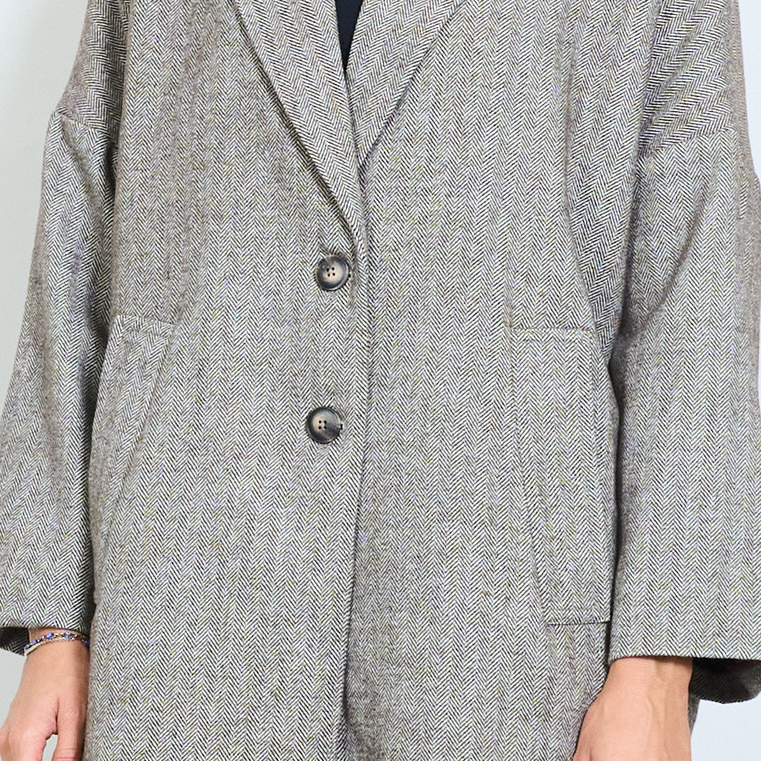 Single-Breasted Herringbone Coat med fickor Partihandel