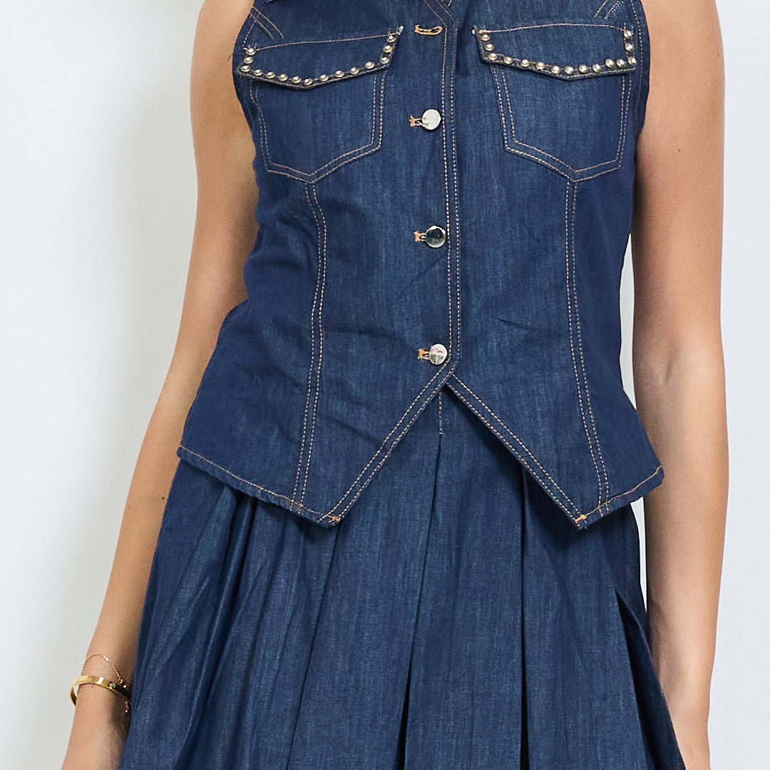 - Ärmlös väst med spetsiga och dekorativa metallbultar