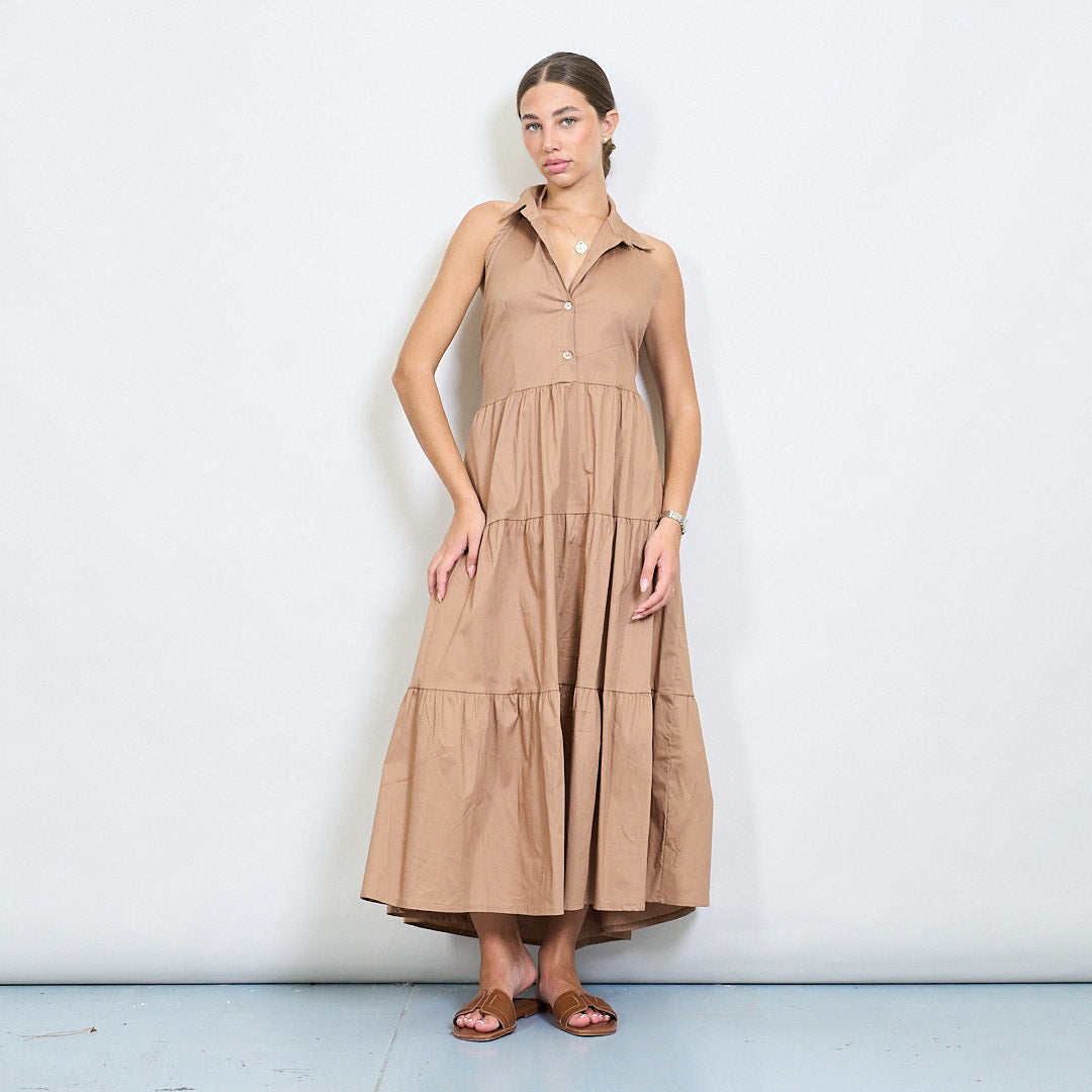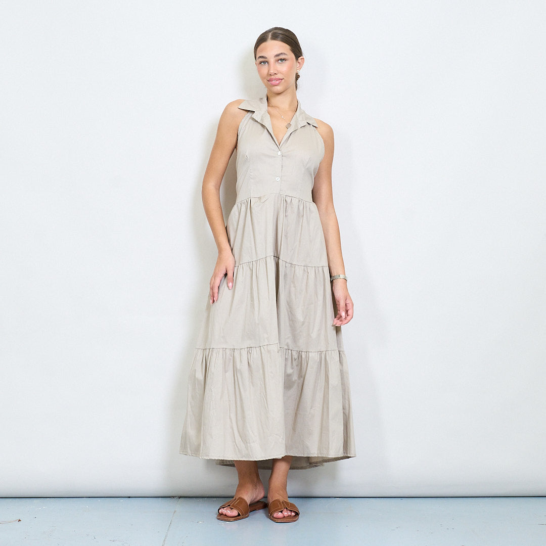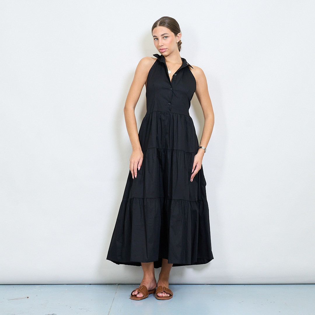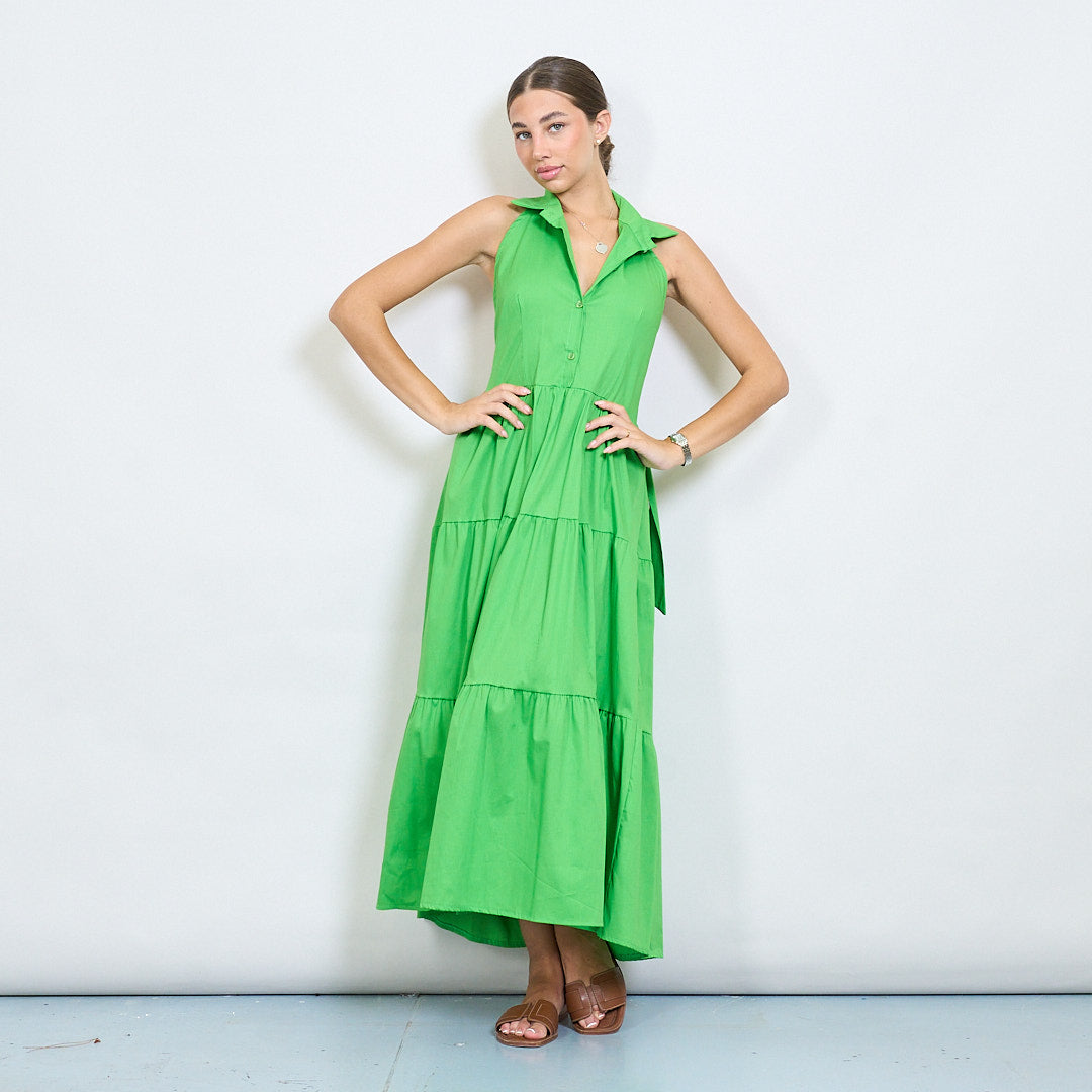 Halter Neck Tiered Belted Long Dress Partihandel