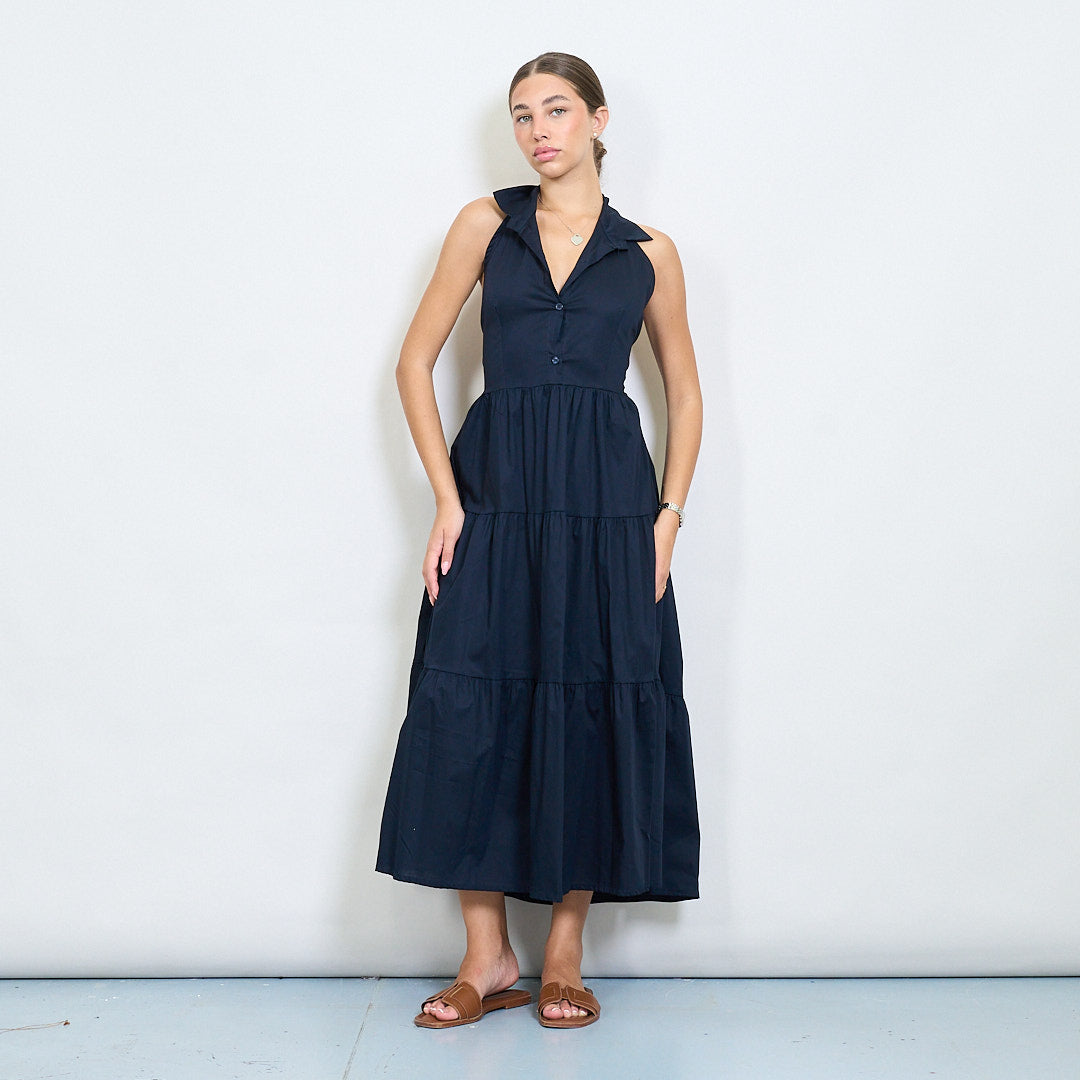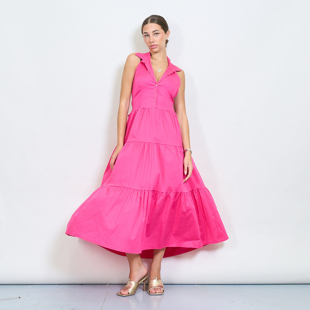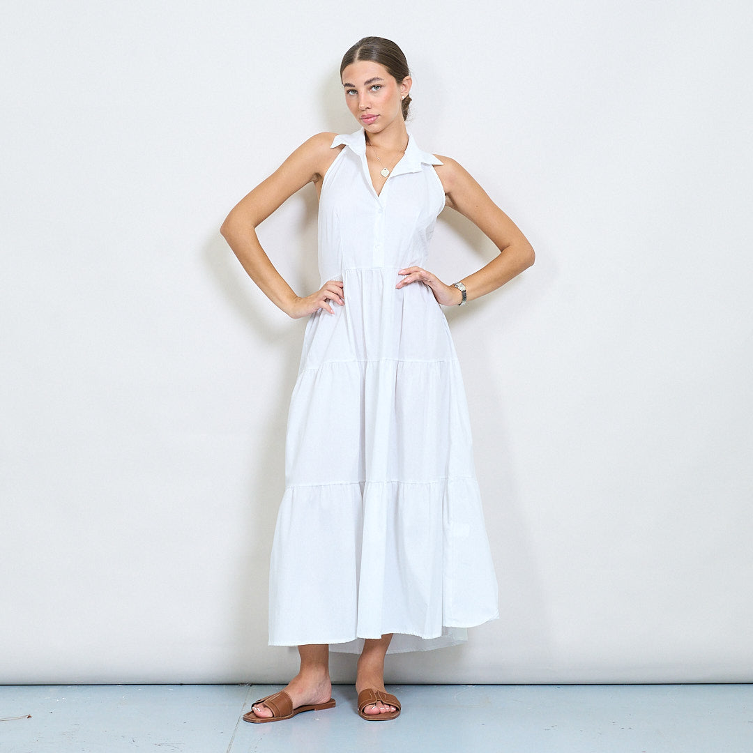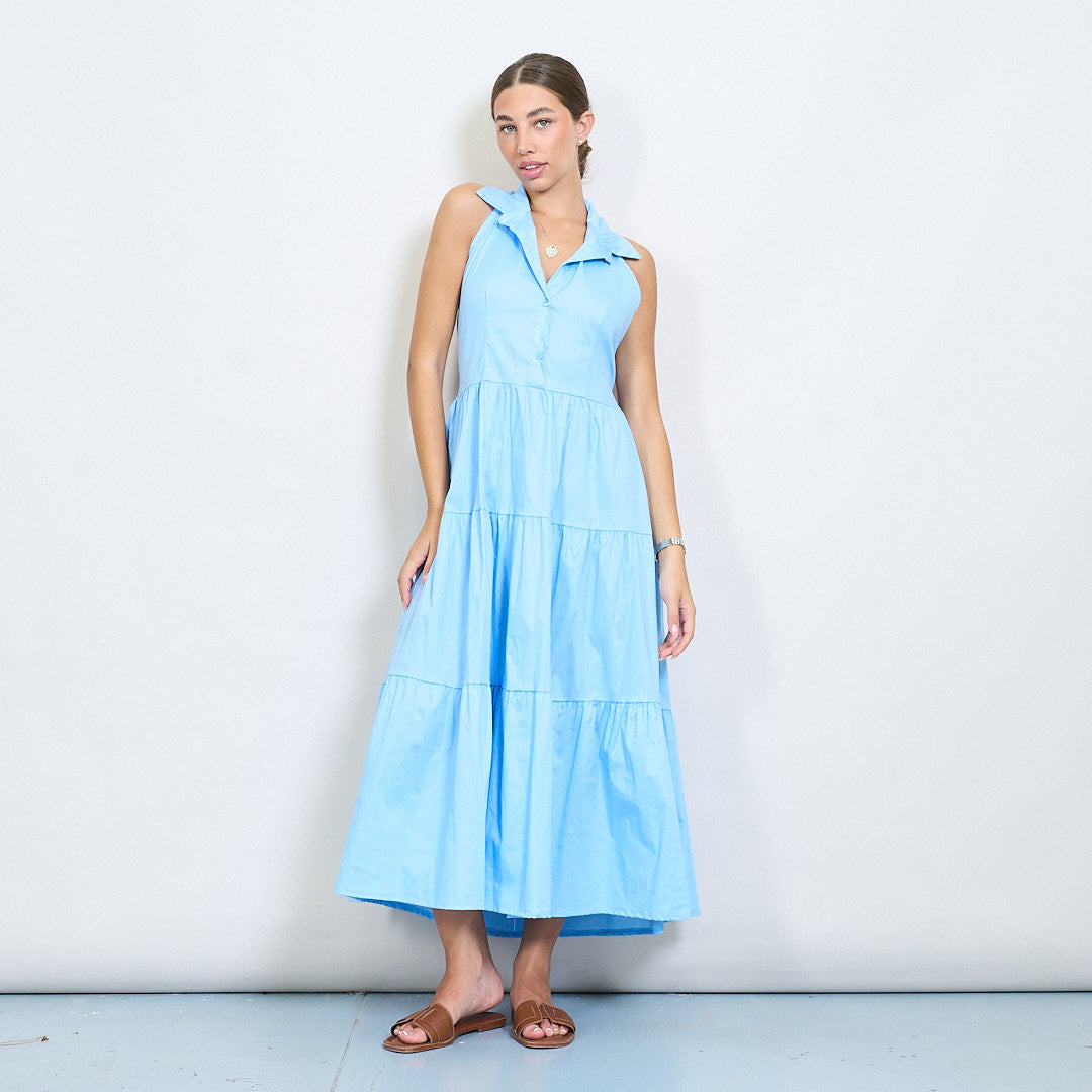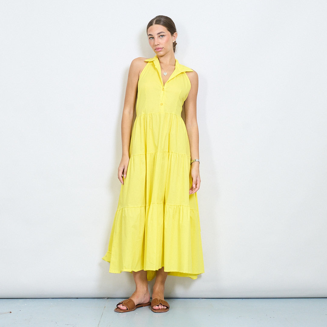 Halter Neck Tiered Belted Long Dress Partihandel