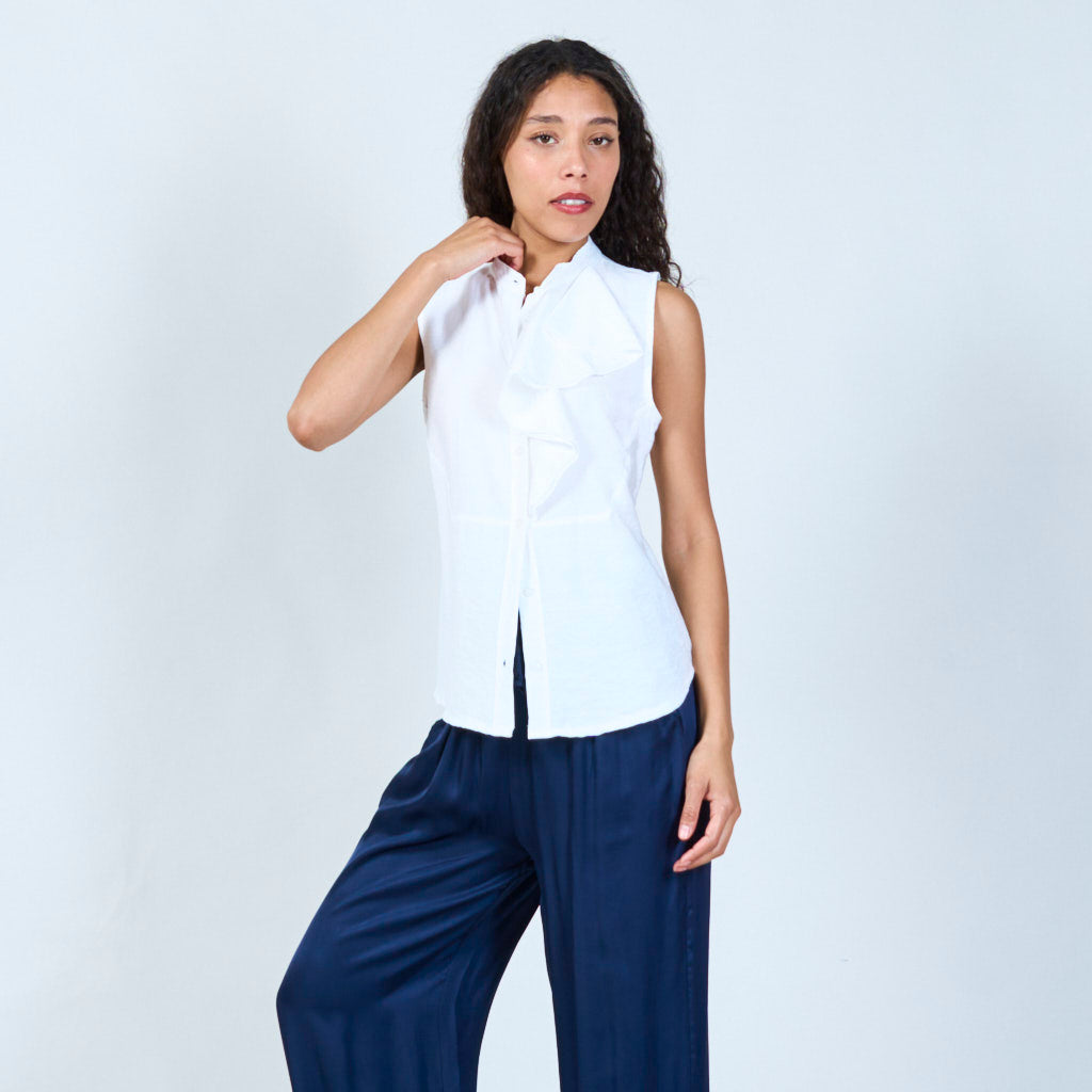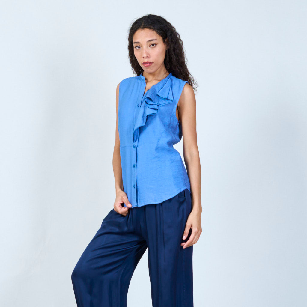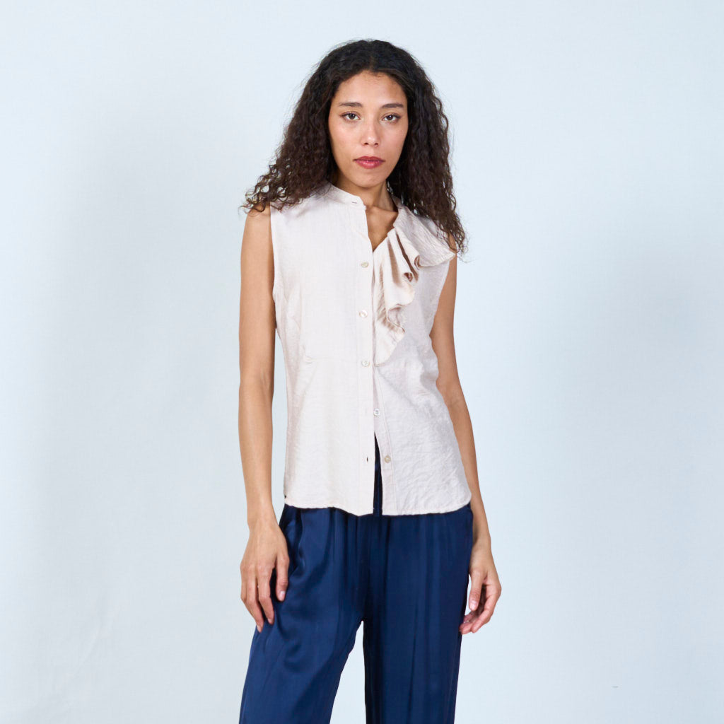 HALTERNECK BLOUSE MED RUFFLES DETALJ