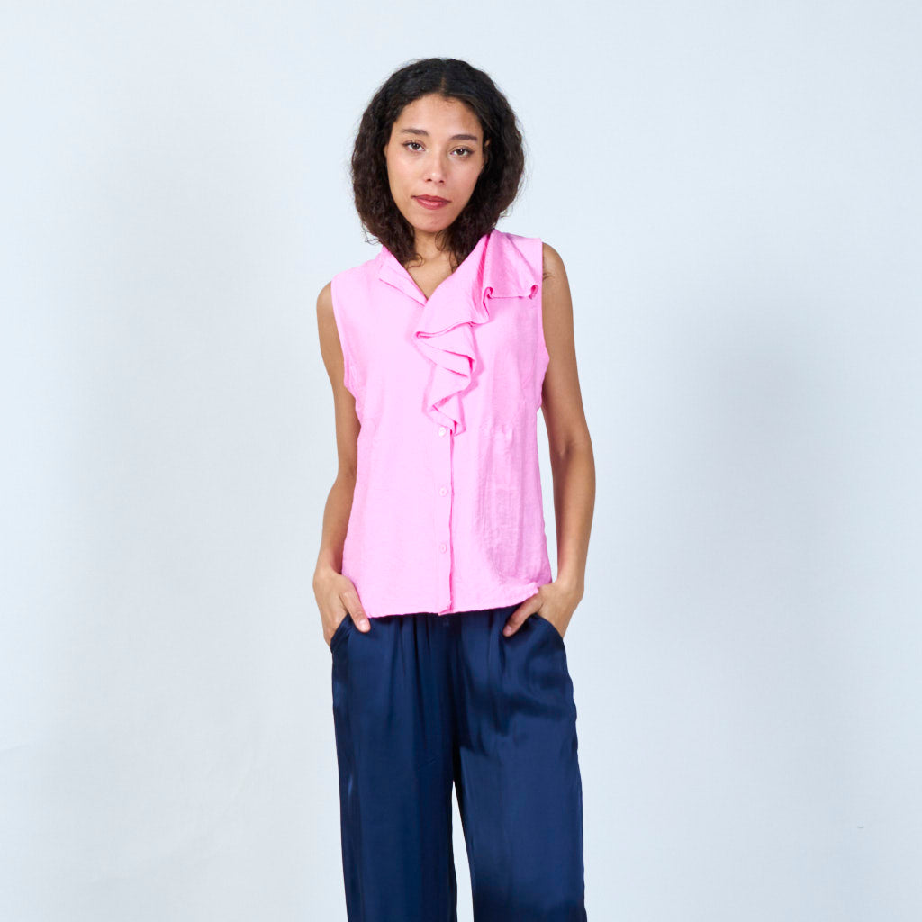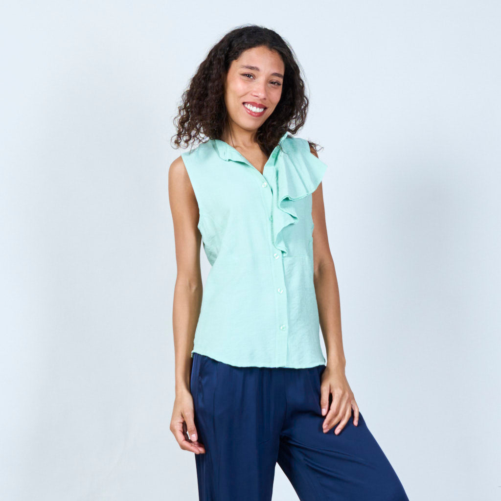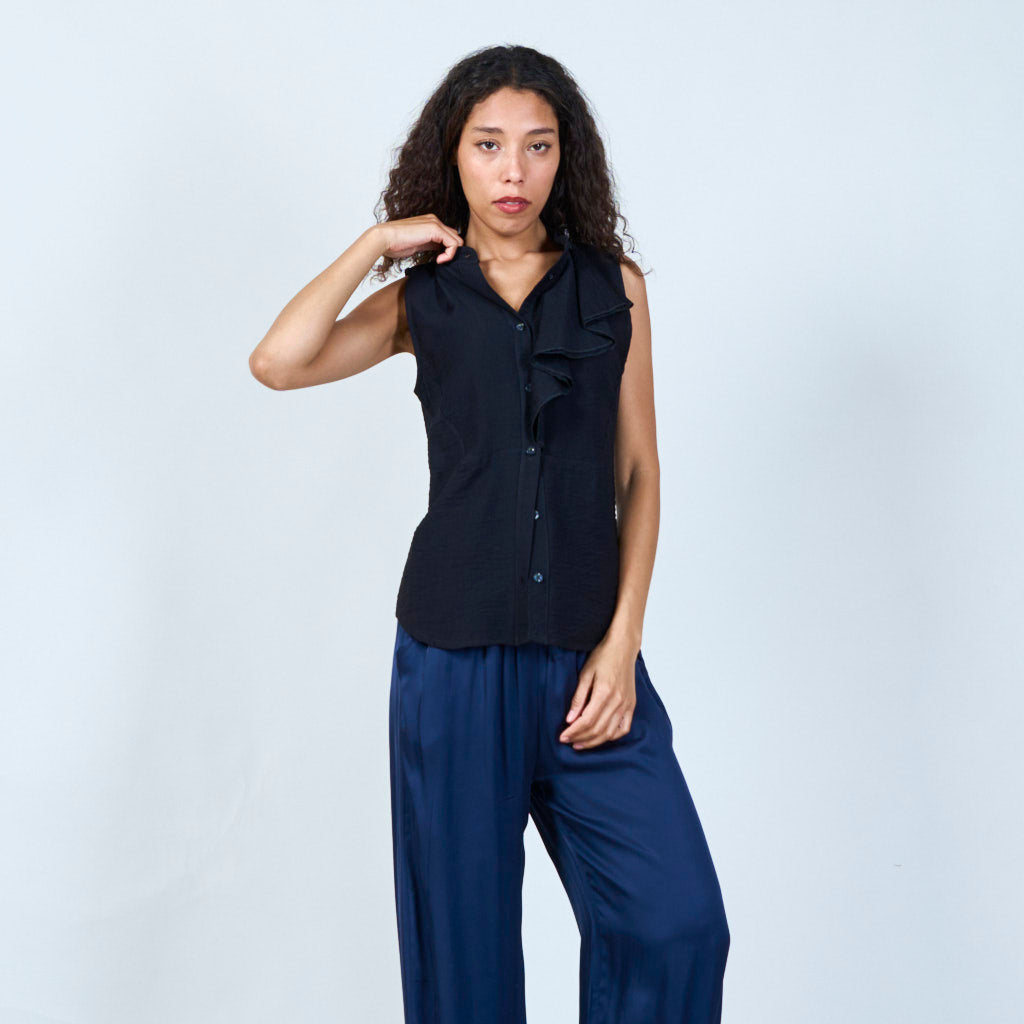HALTERNECK BLOUSE MED RUFFLES DETALJ