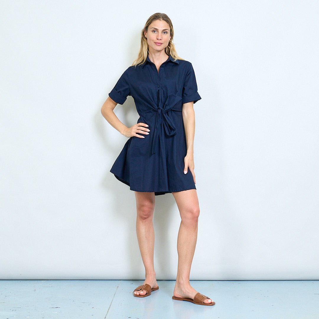 Kort ärmskjorta klänning med front tie -detalj grossist