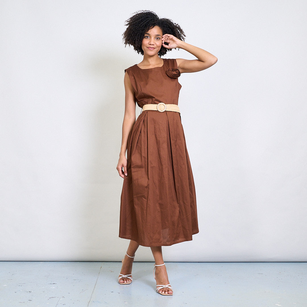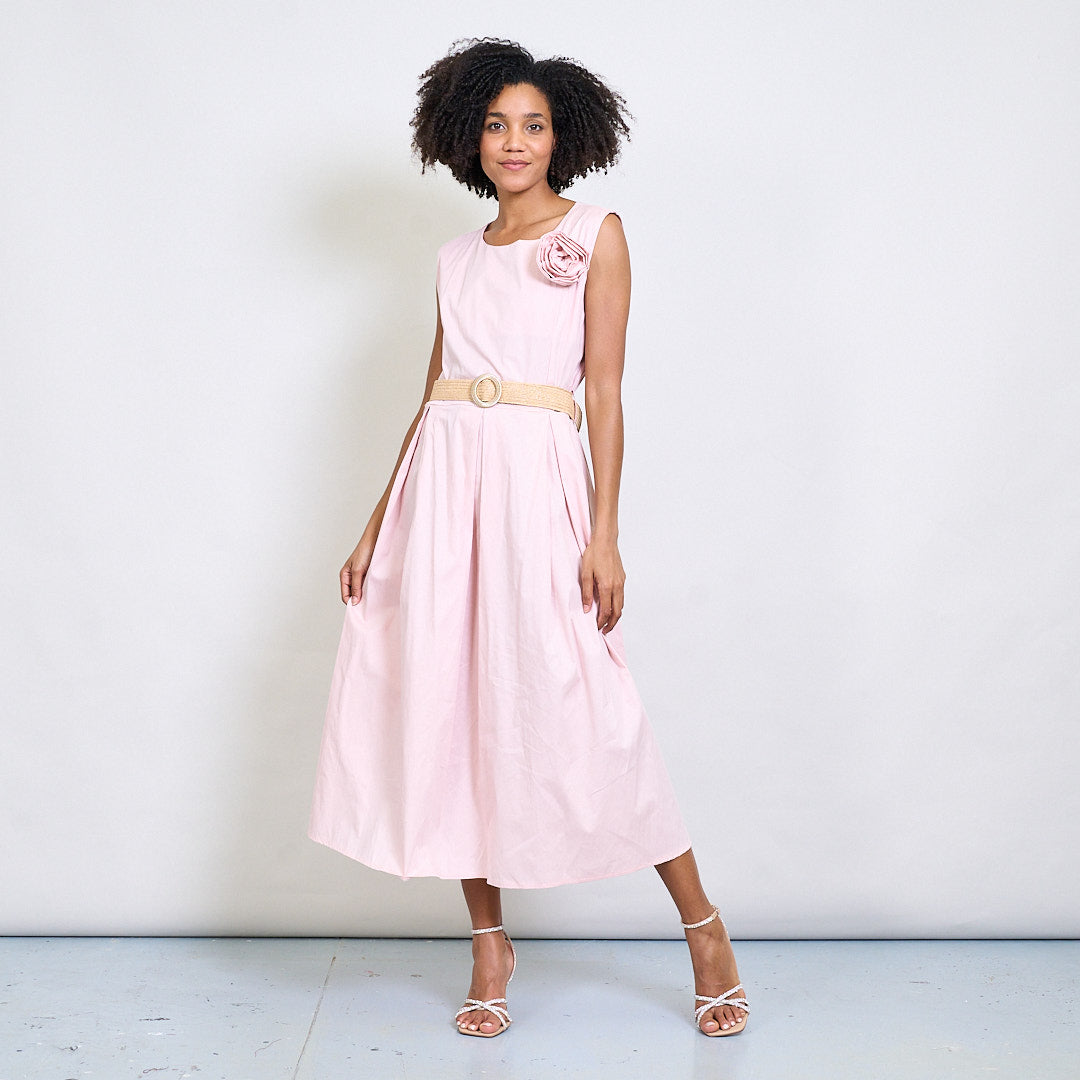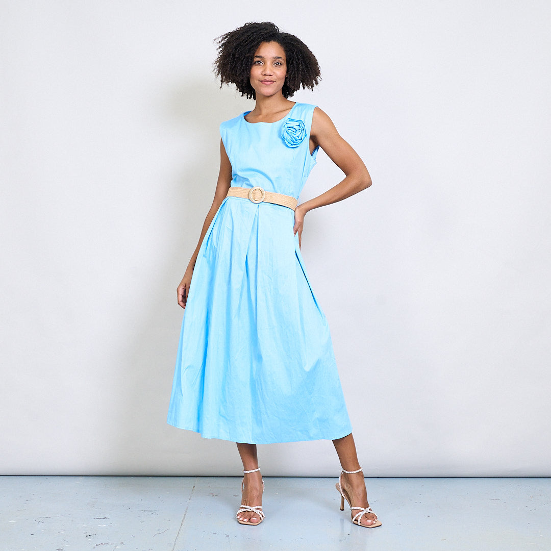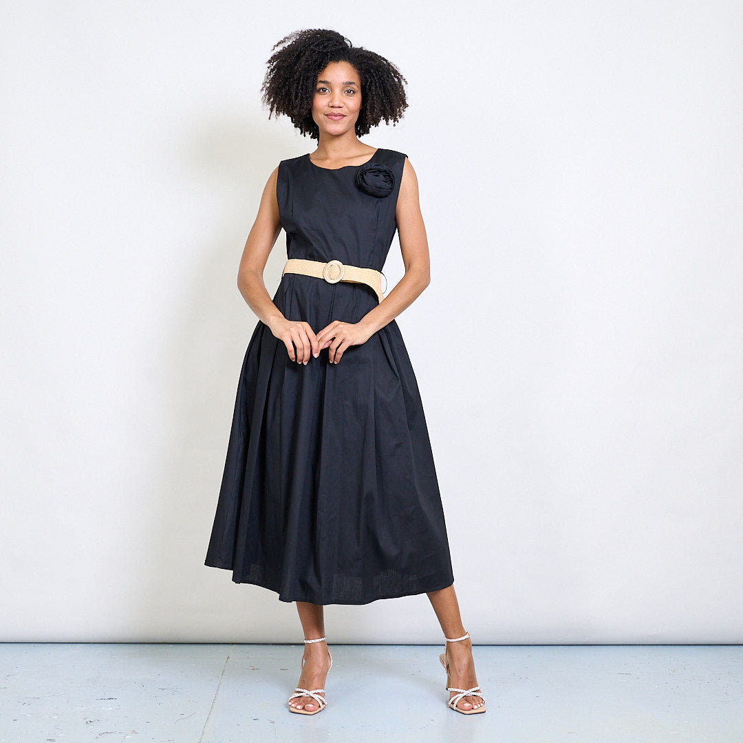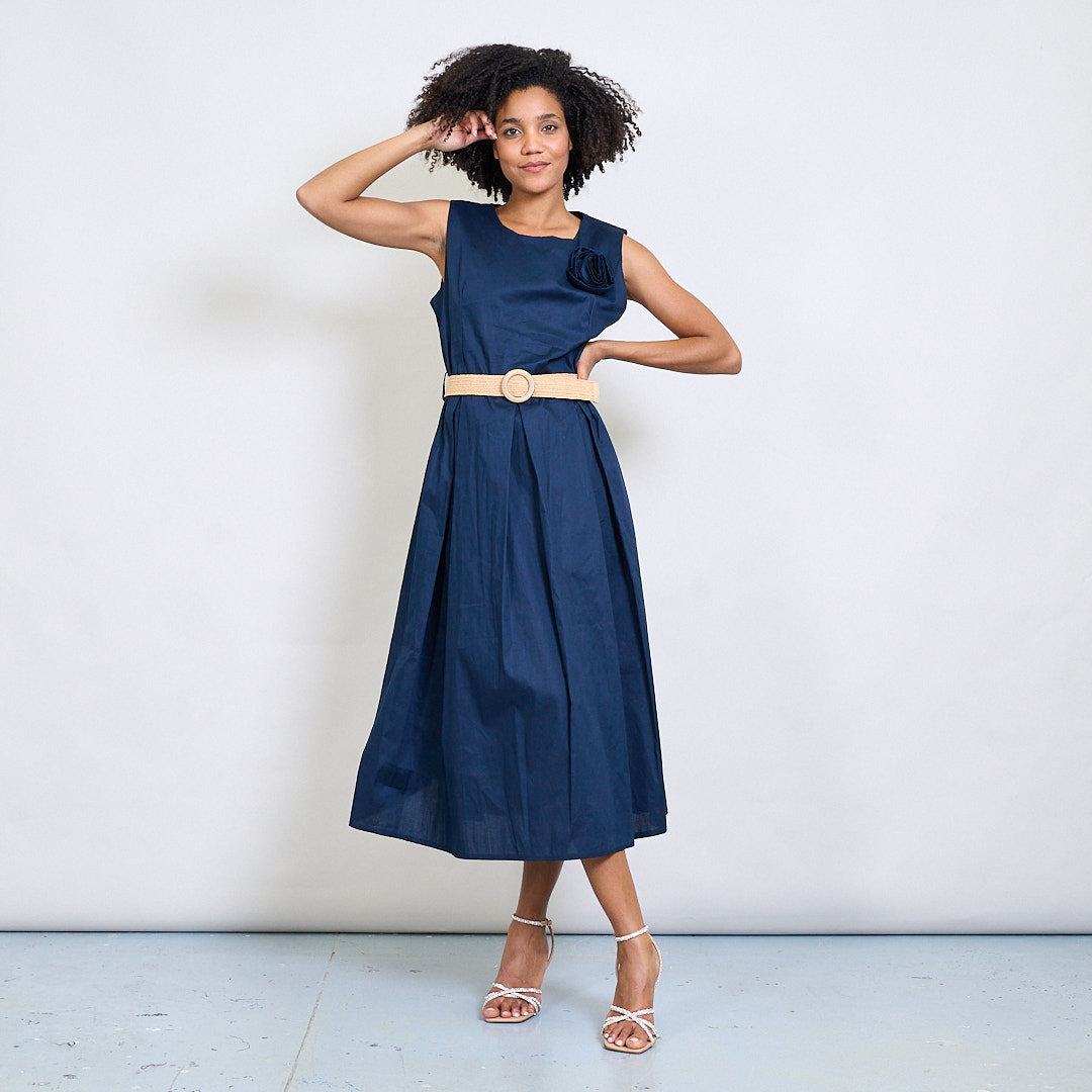 Minimalistisk blommapplikationsbältad ärmlös midi klänning grossist