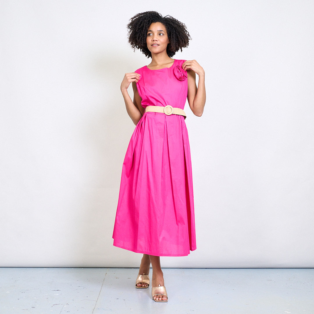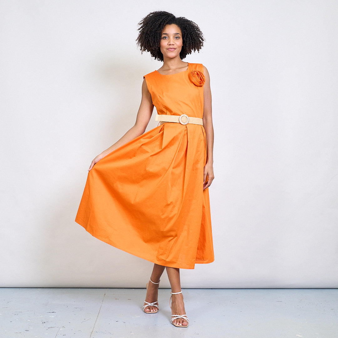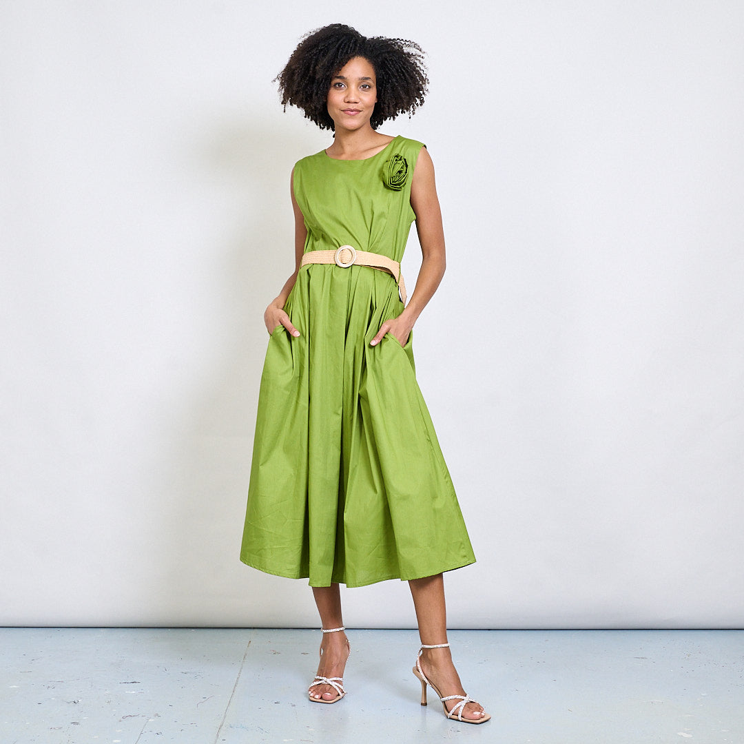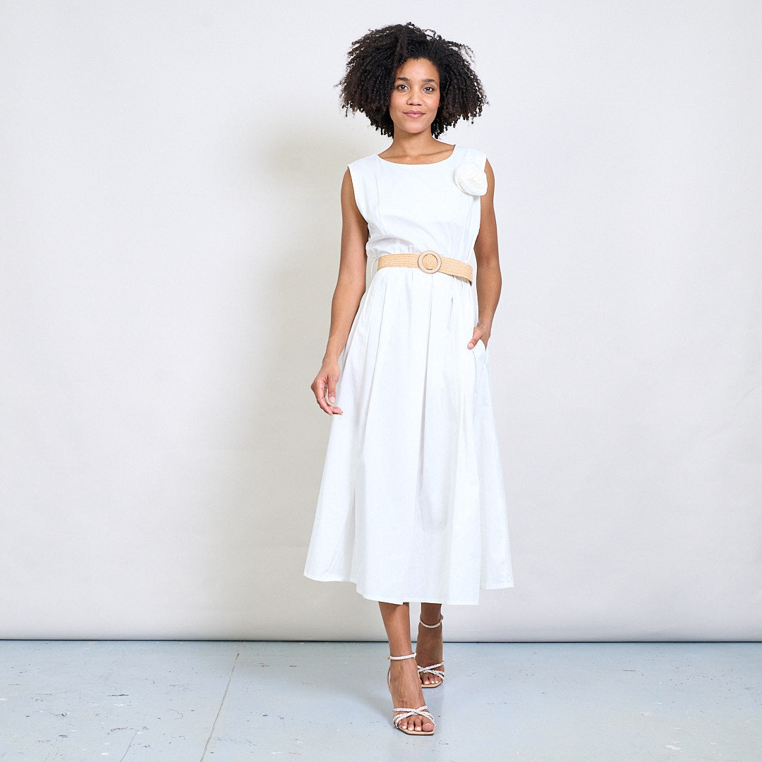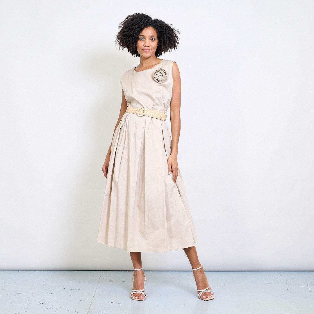 Minimalistisk blommapplikationsbältad ärmlös midi klänning grossist