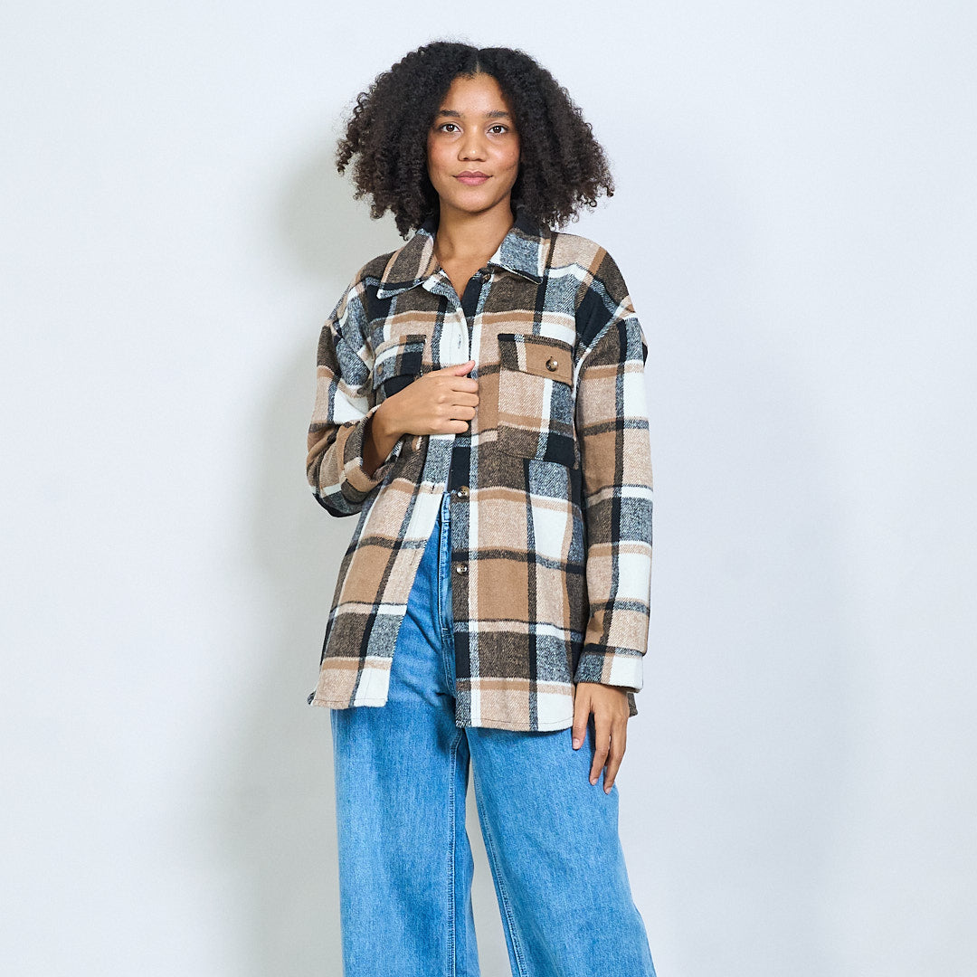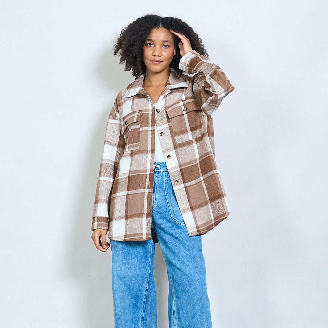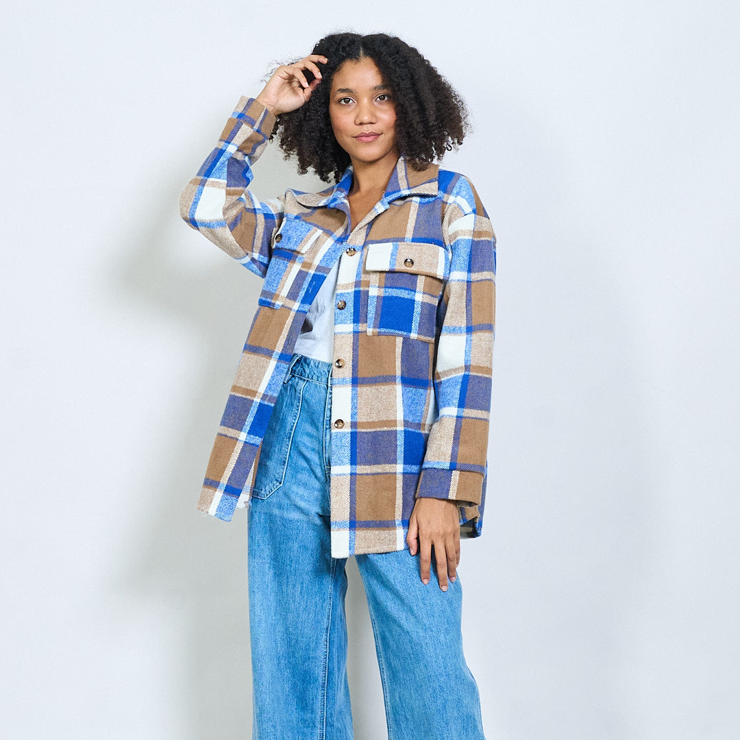 PLAID Button-Up Over-trjortan jacka med klafffickor grossist