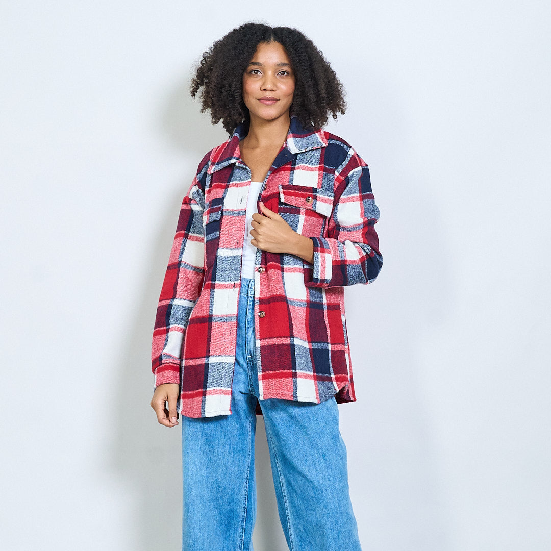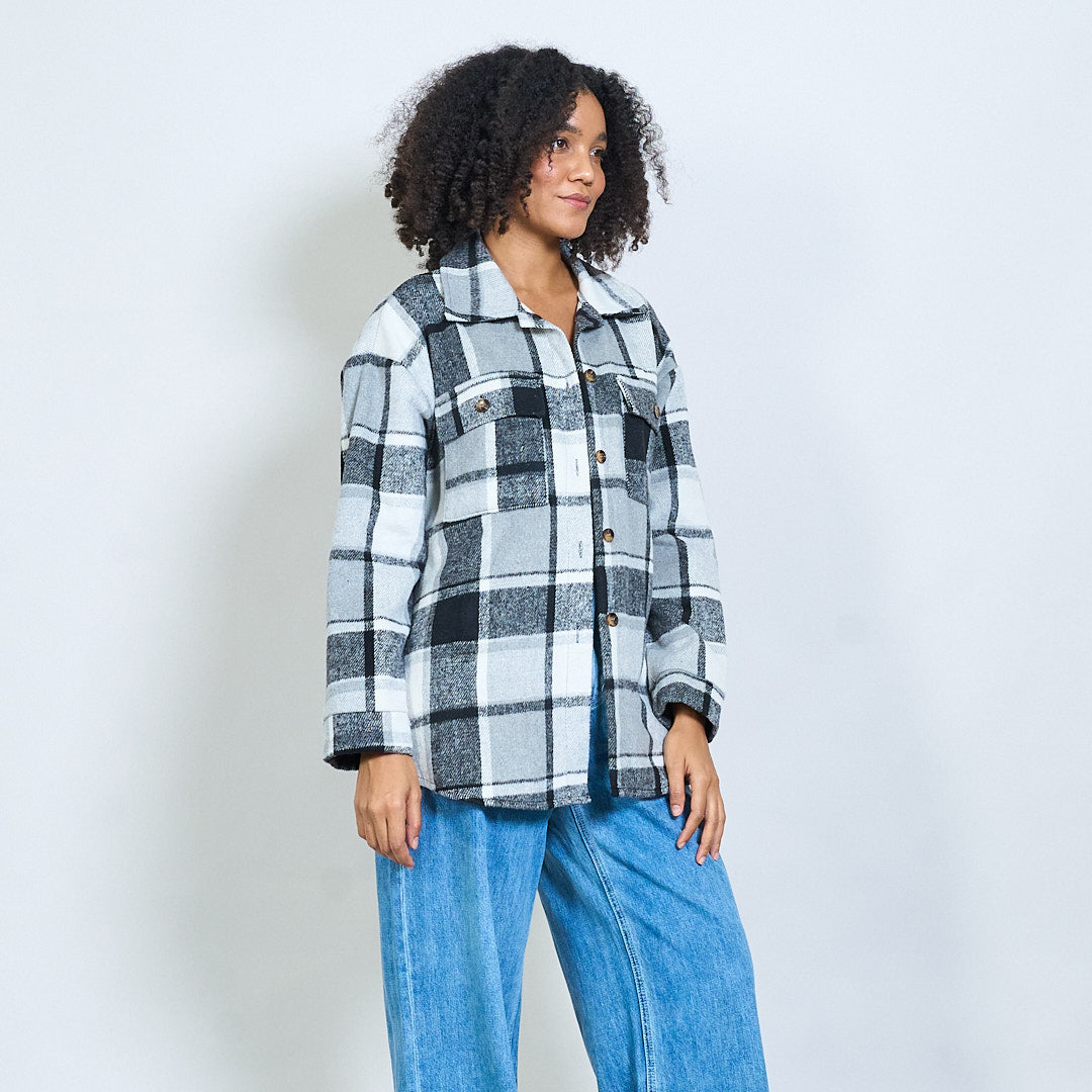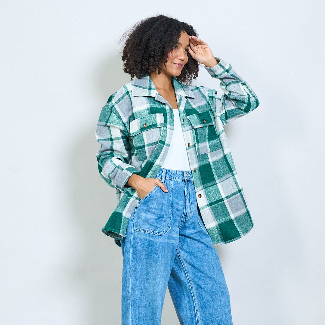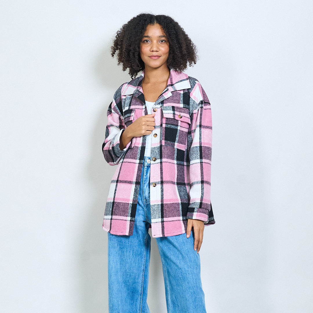 PLAID Button-Up Over-trjortan jacka med klafffickor grossist