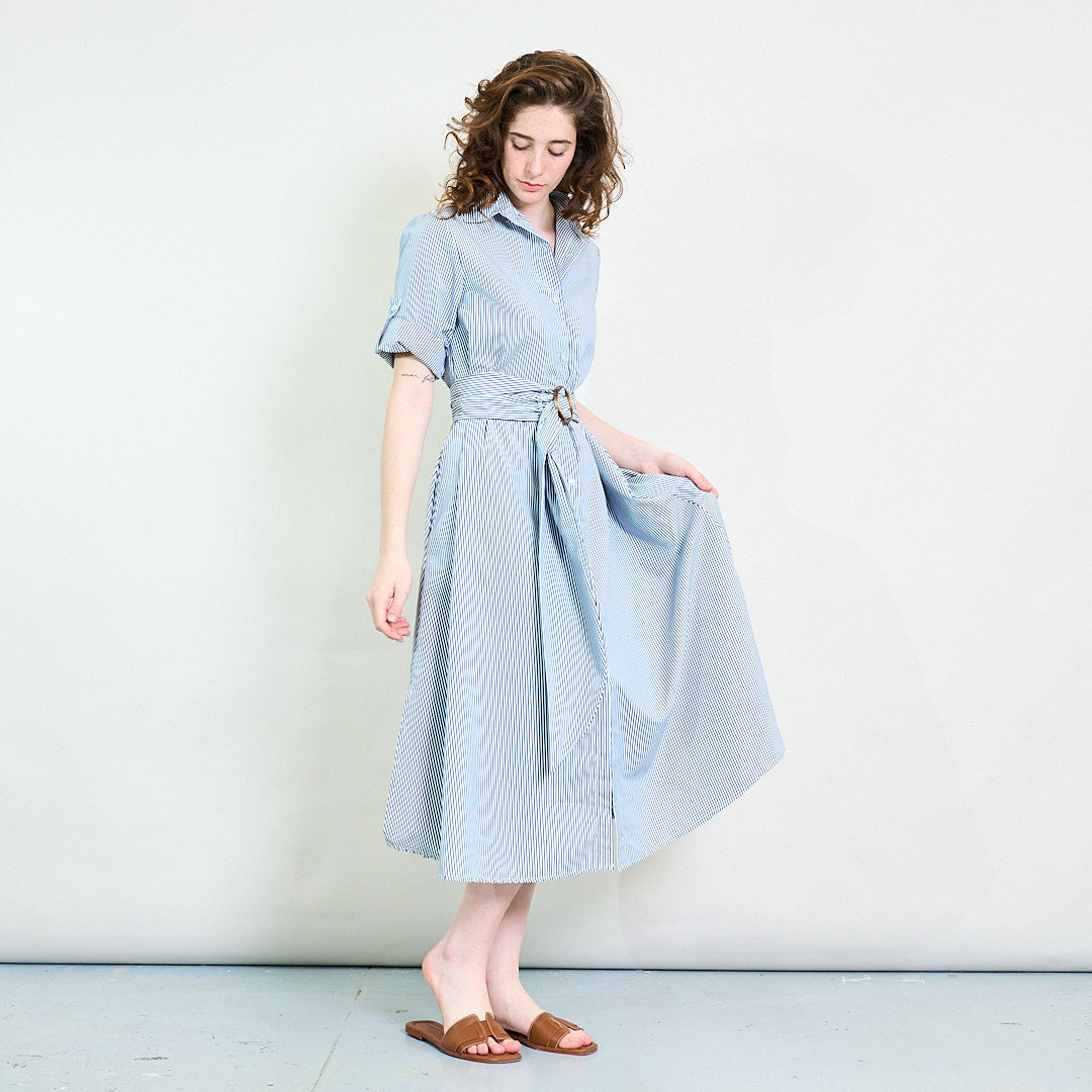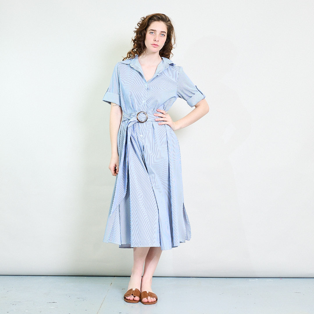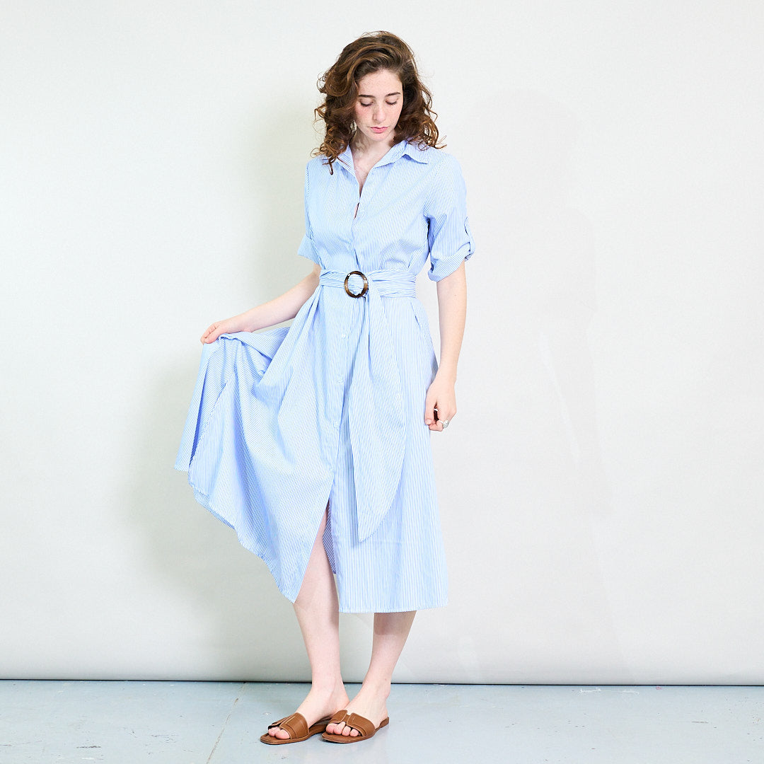 Randig bälte skjorta-krage knapp-ner maxi klänning grossist