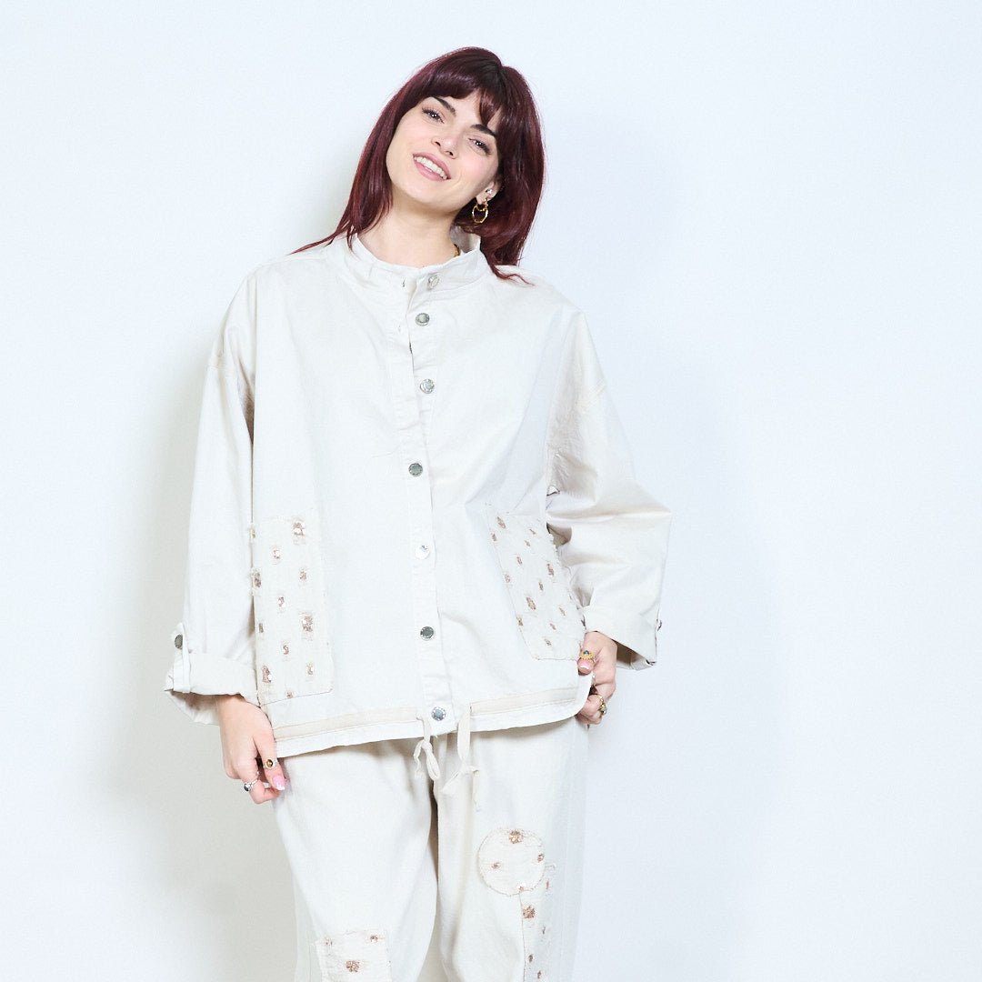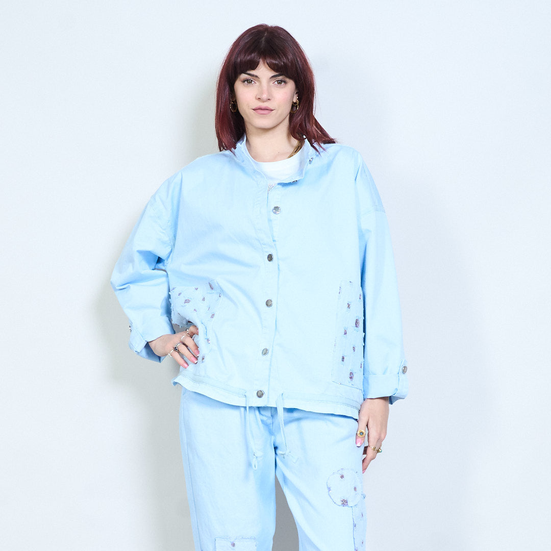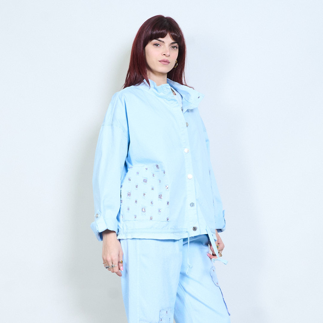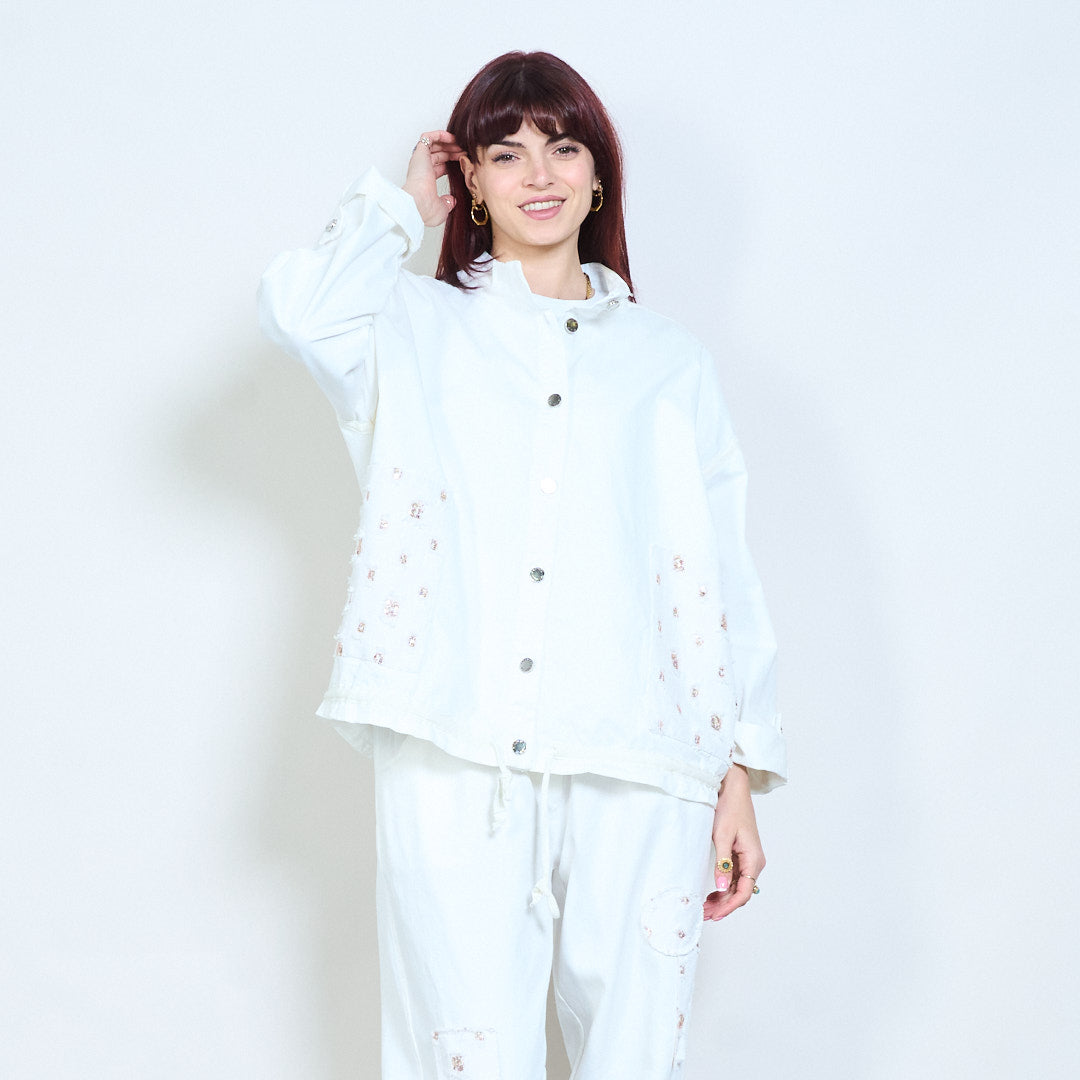 Utsmyckad ficka med snäpp-front avslappnad jacka grossist