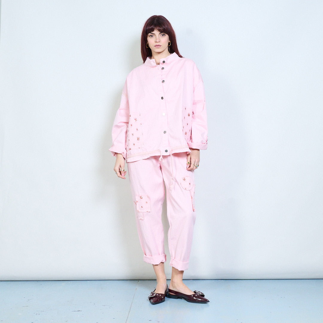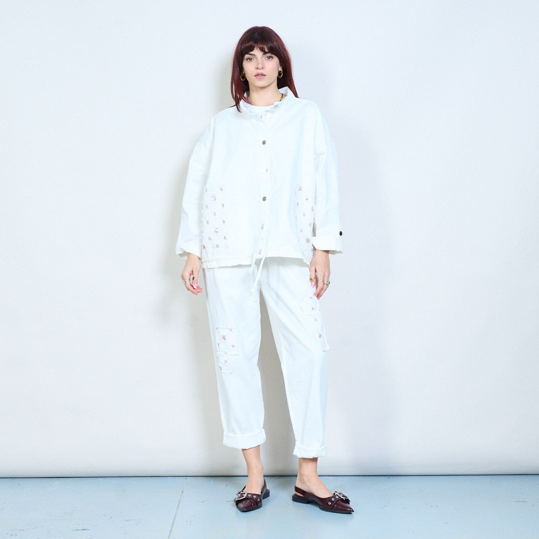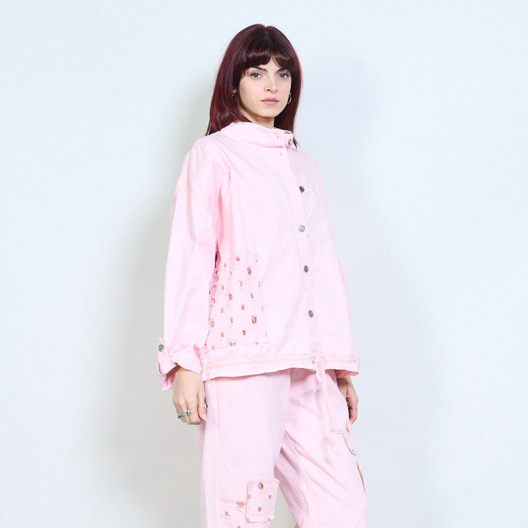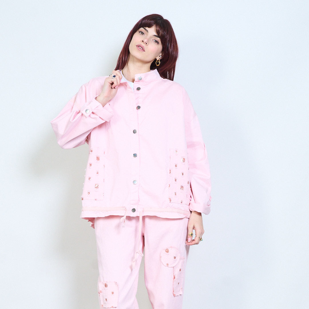 Utsmyckad ficka med snäpp-front avslappnad jacka grossist
