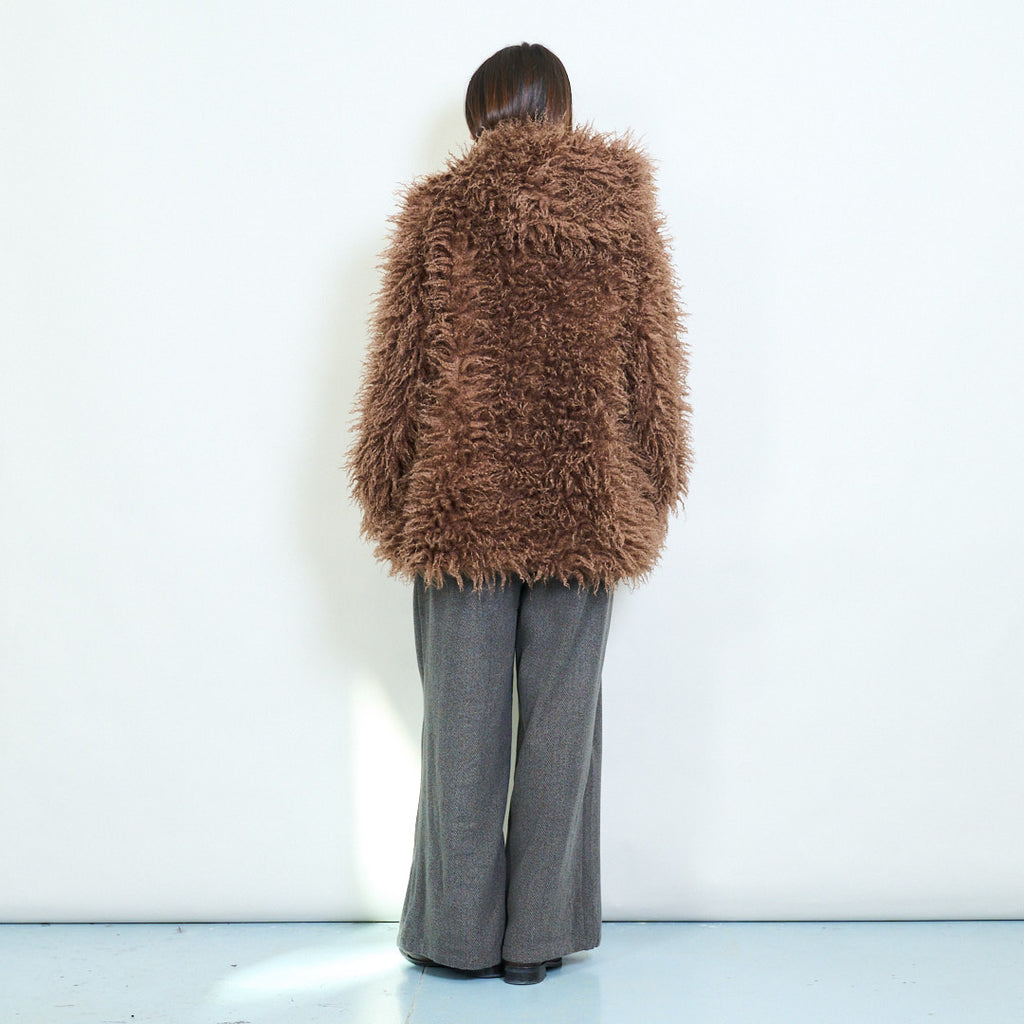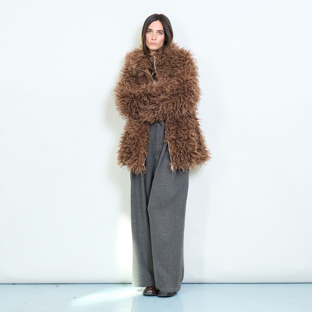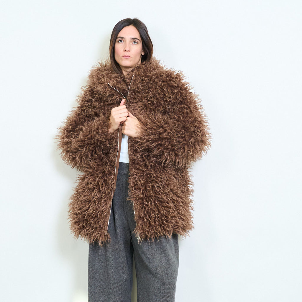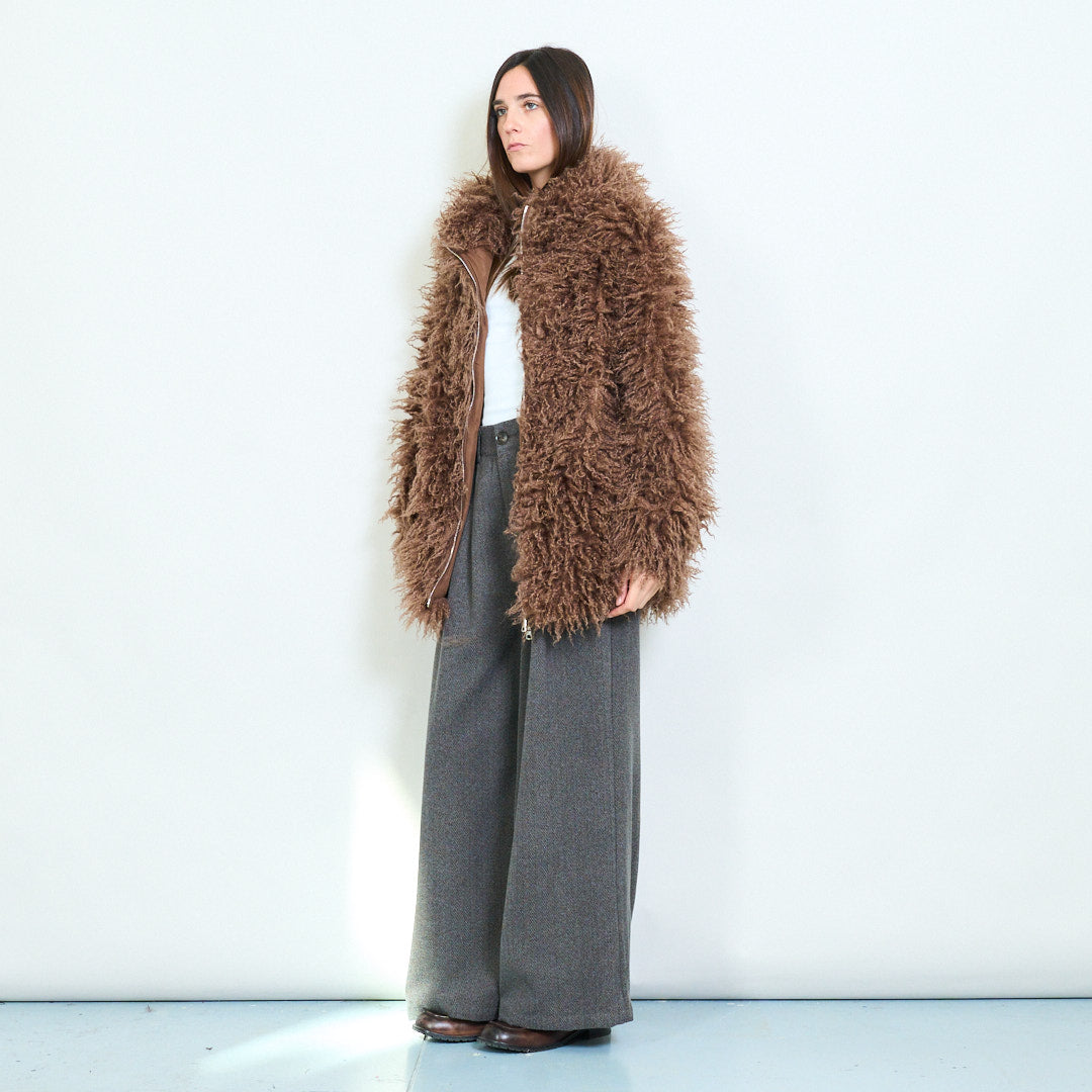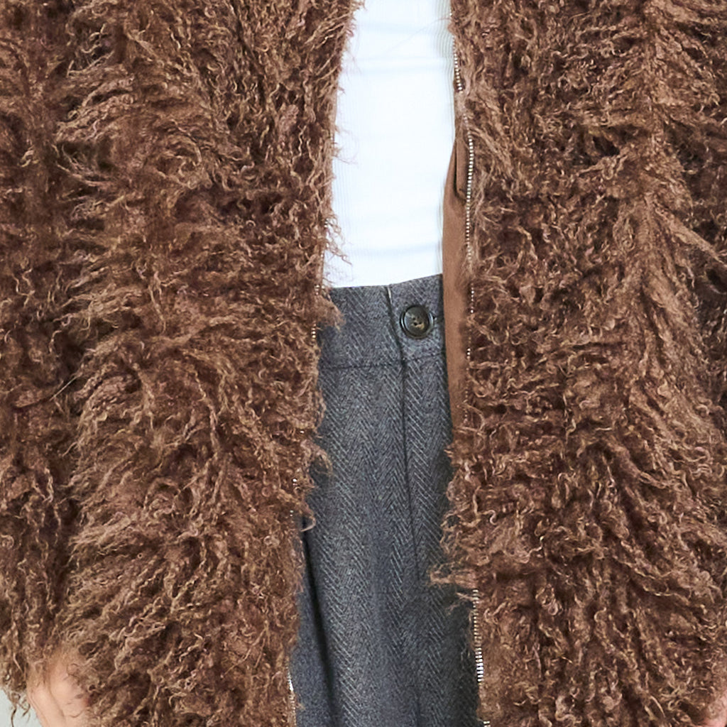 Raggig texturerad faux päls överdimensionerad zip päls grossist