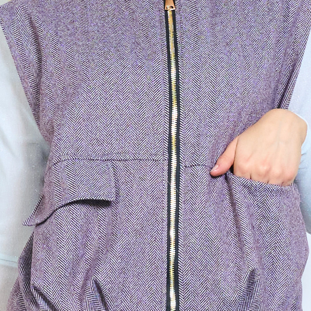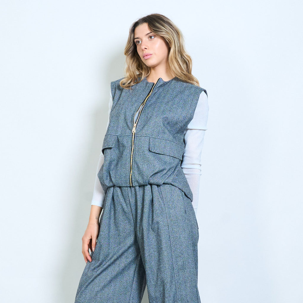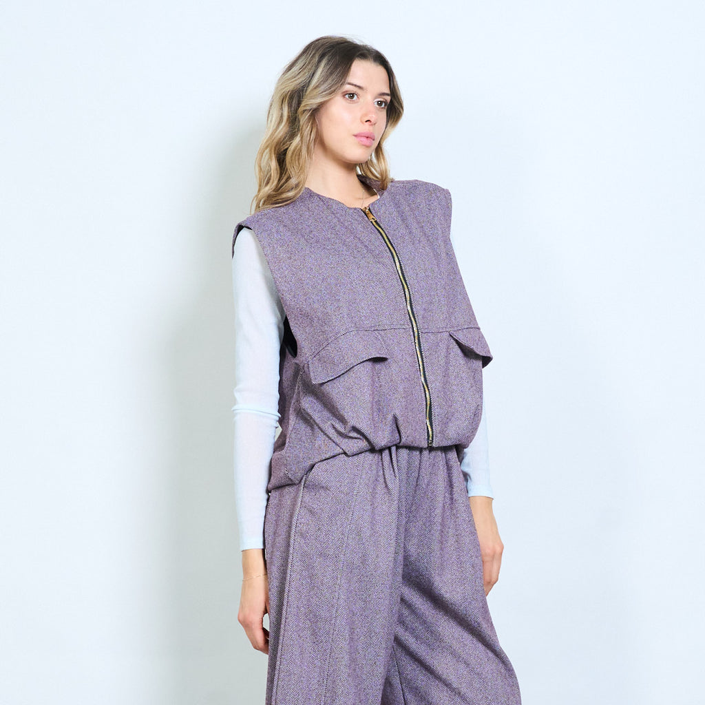 Sillbensmönster zip front ärmlös väst med fickdetalj grossist