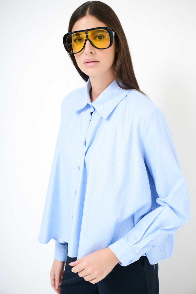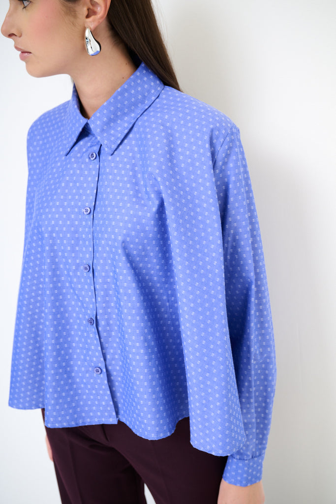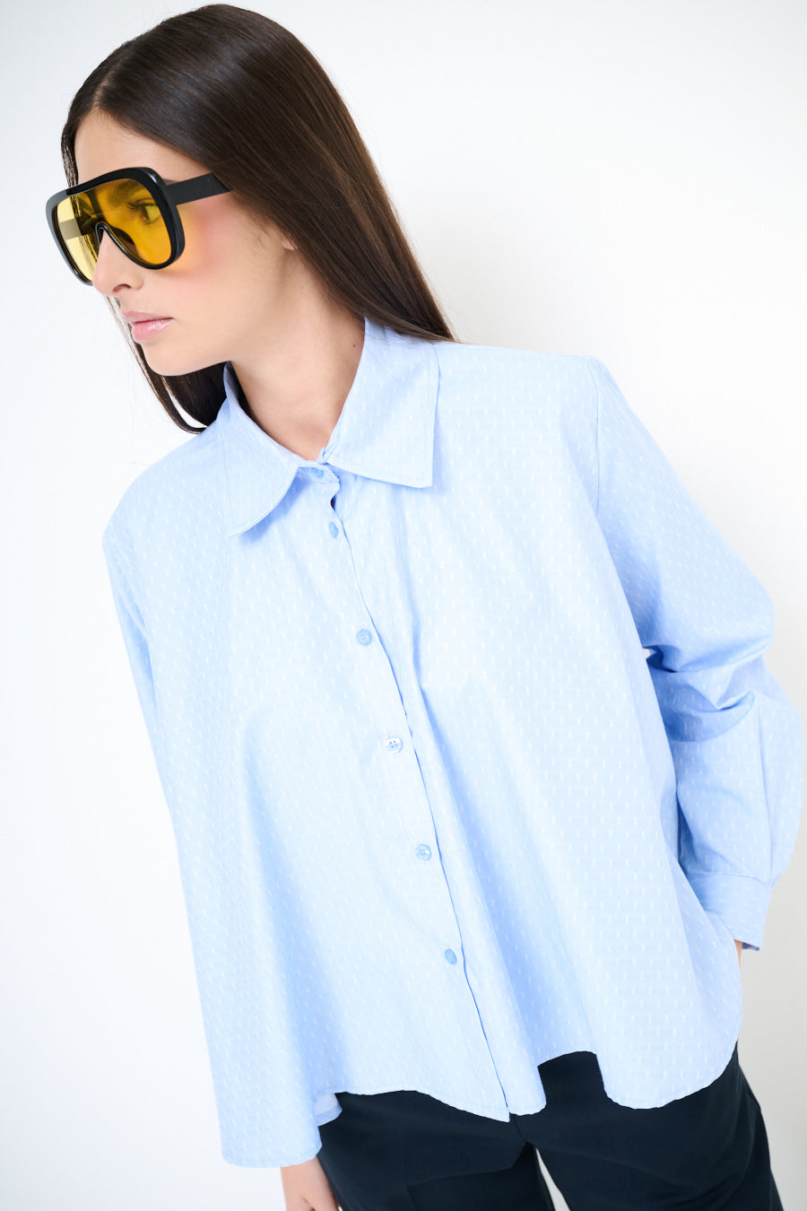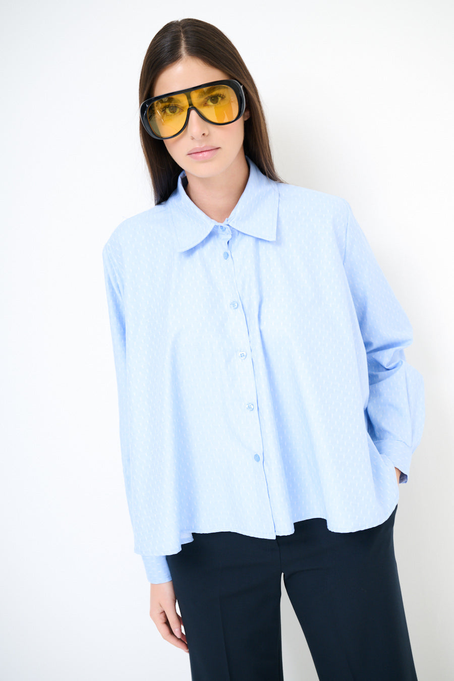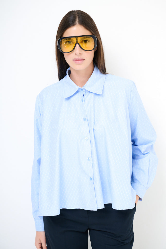 - Strukturerad krage med knappen längs framsidan för mångsidig slitage