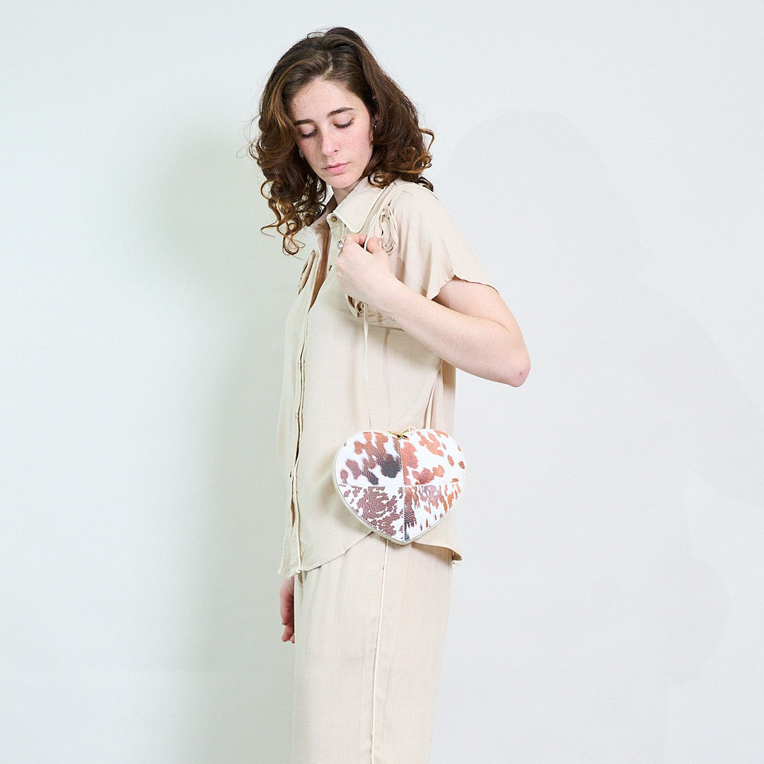 Lapptäcke ko tryck hjärta crossbody väska grossist
