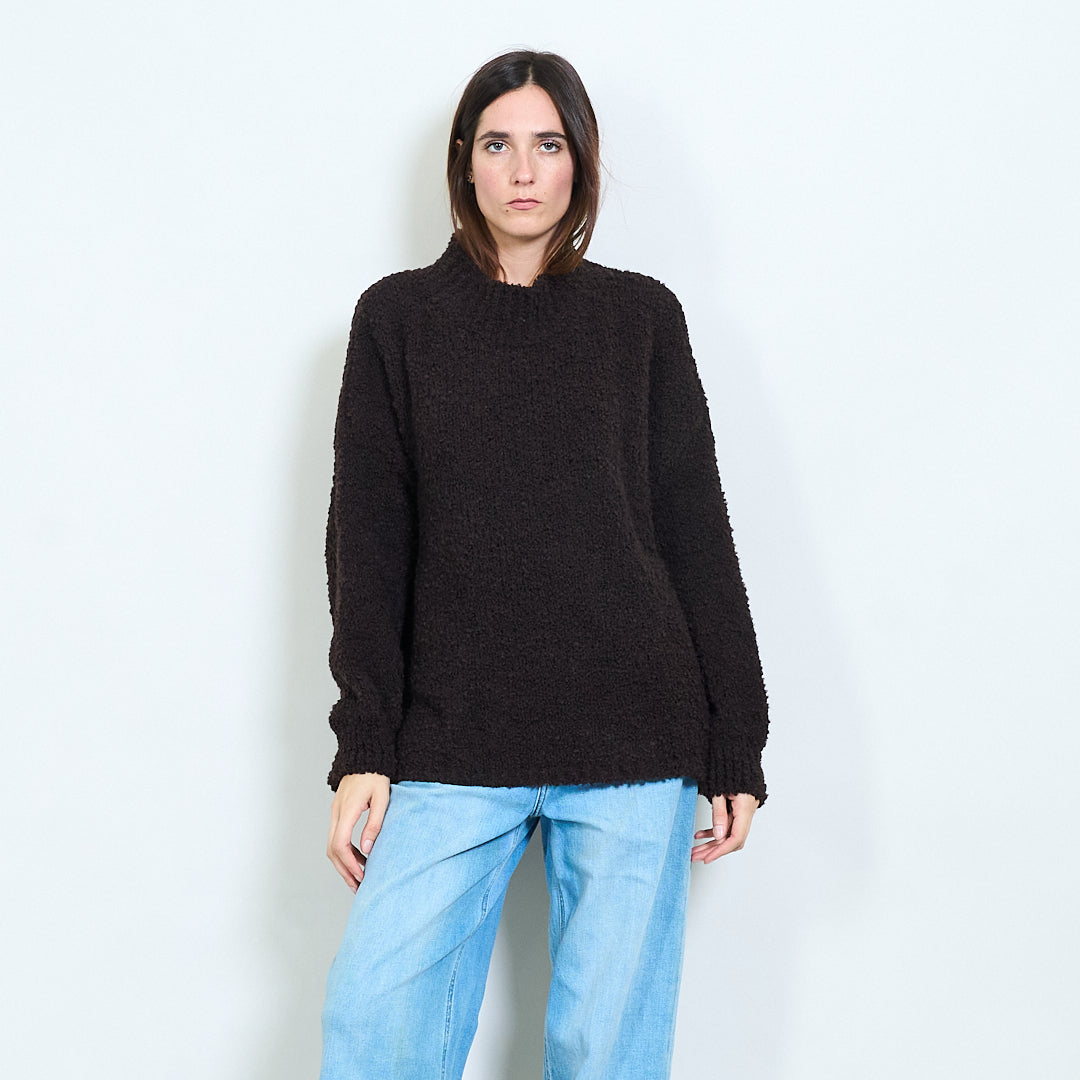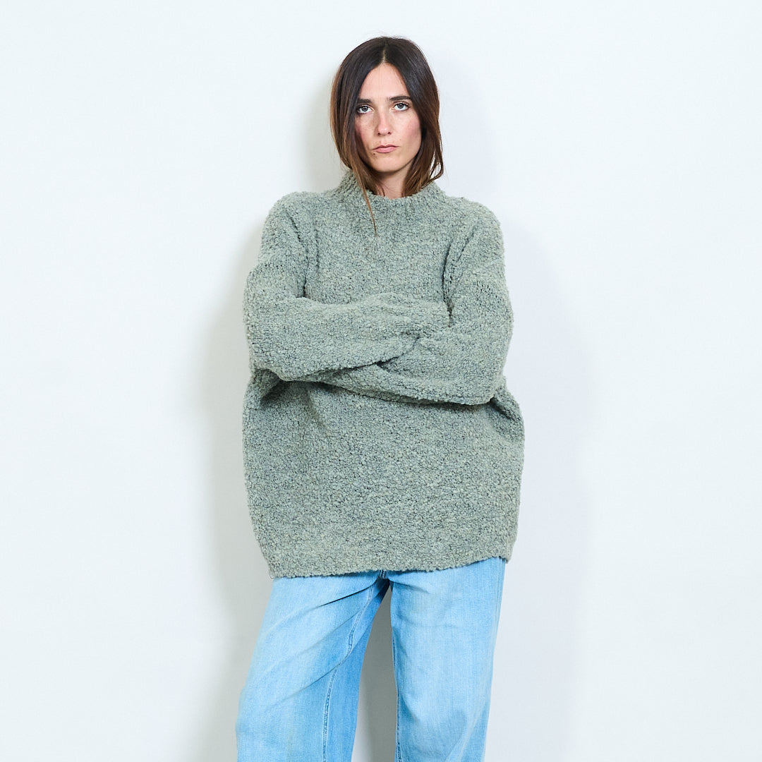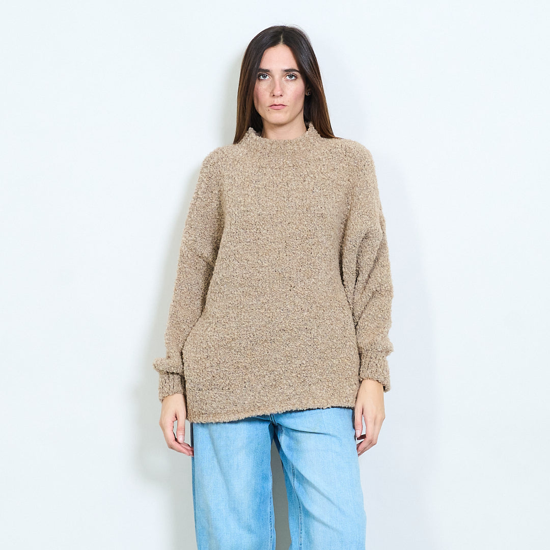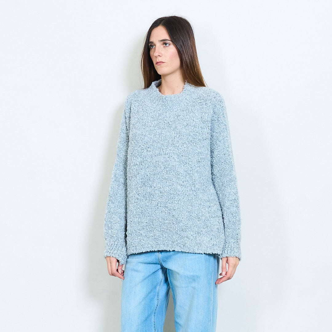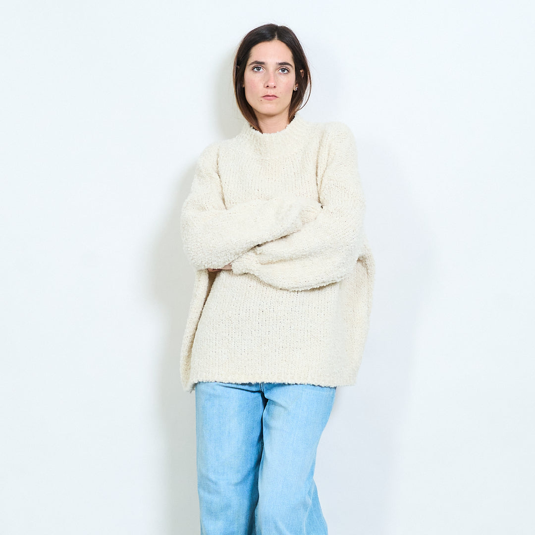 Chunky stickad crewneck tröja med avslappnad silhuett grossist