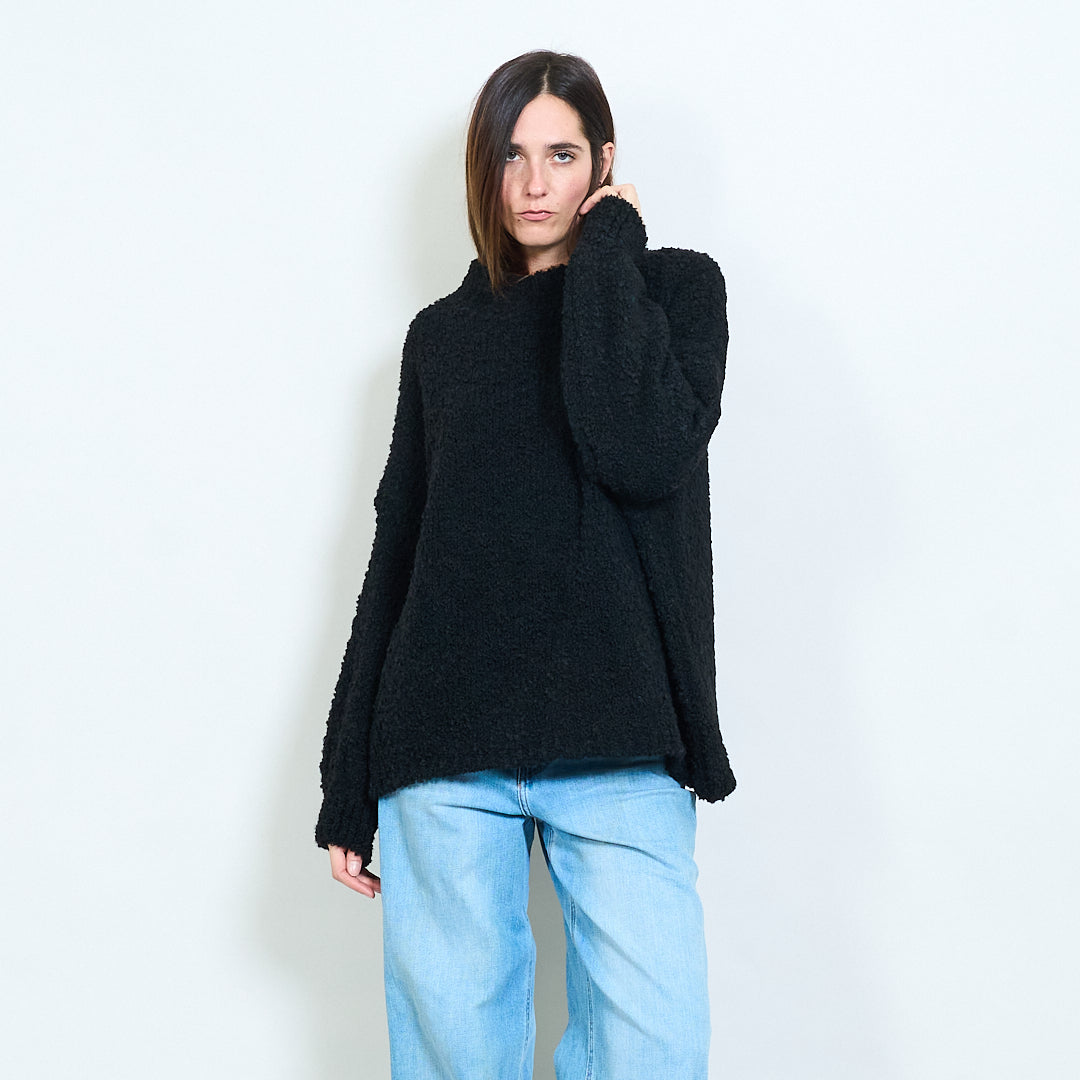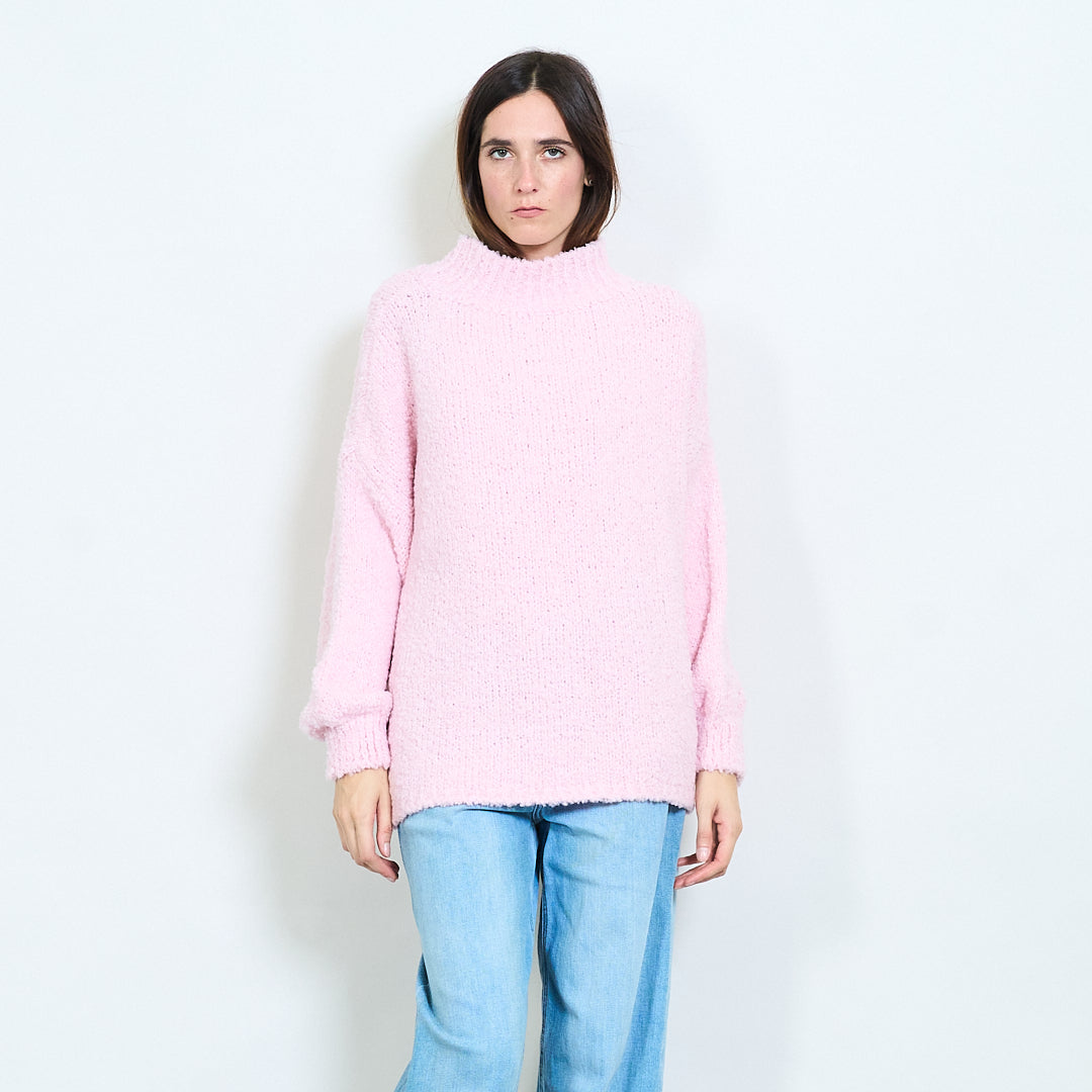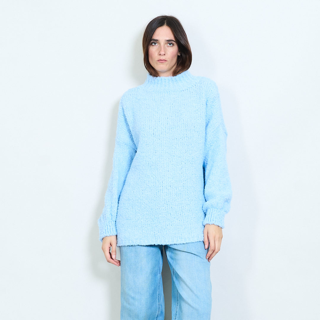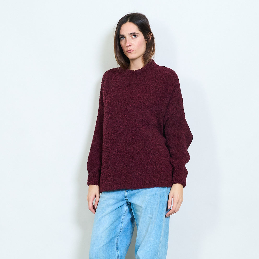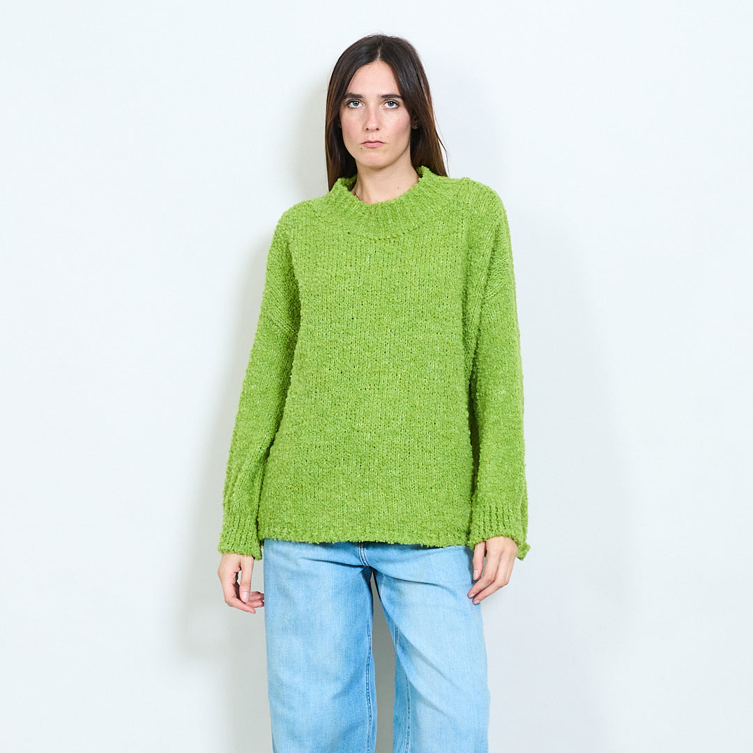 Chunky stickad crewneck tröja med avslappnad silhuett grossist