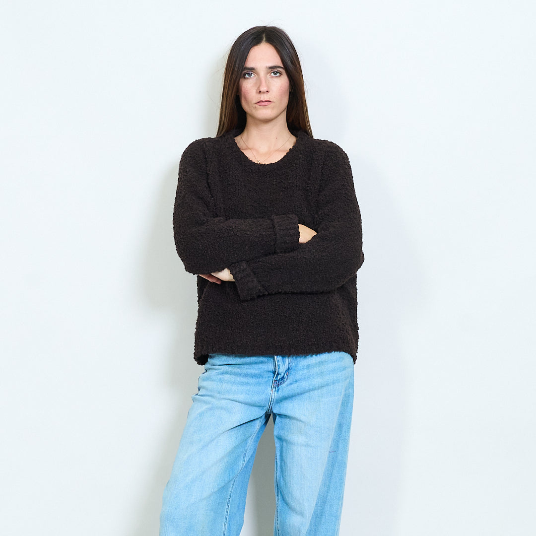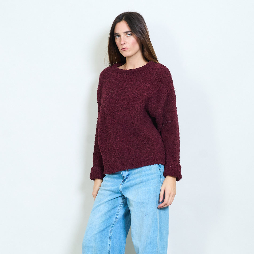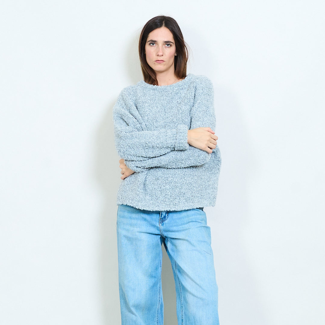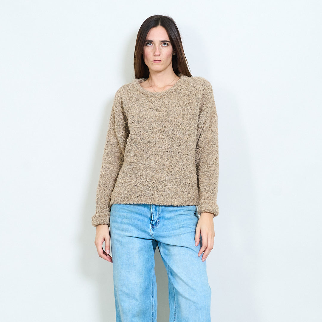 Texturerad boucle stickad tröja med avslappnad silhuett grossist