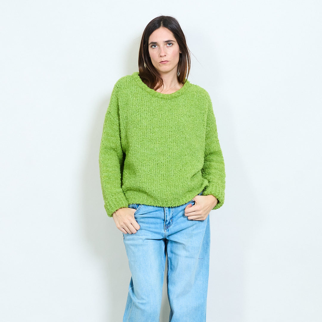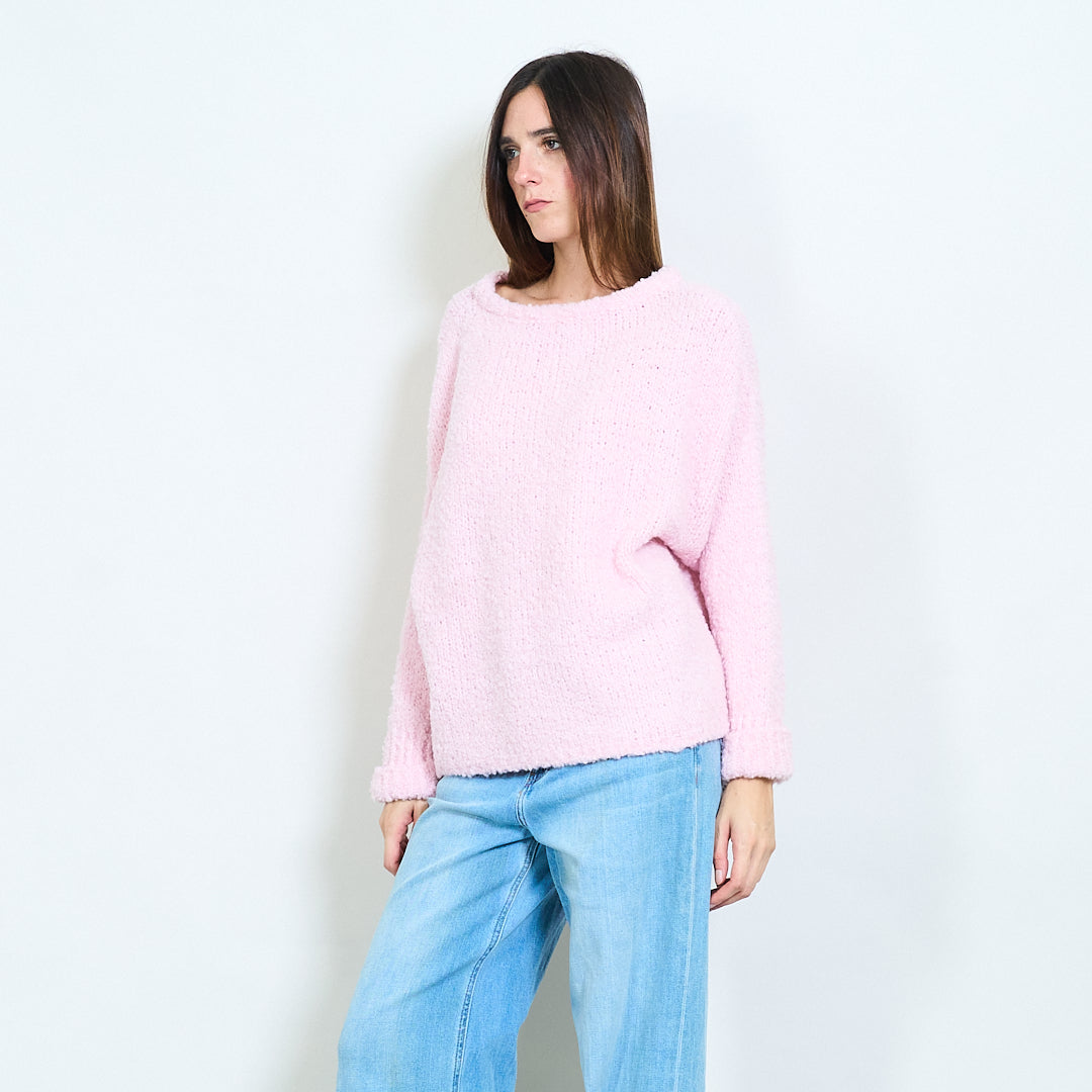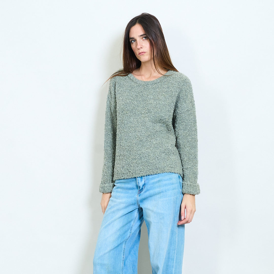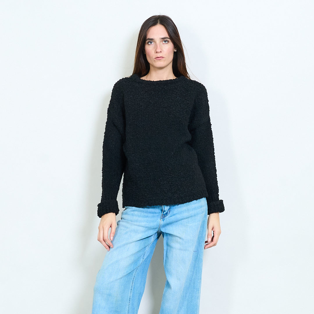 Texturerad boucle stickad tröja med avslappnad silhuett grossist